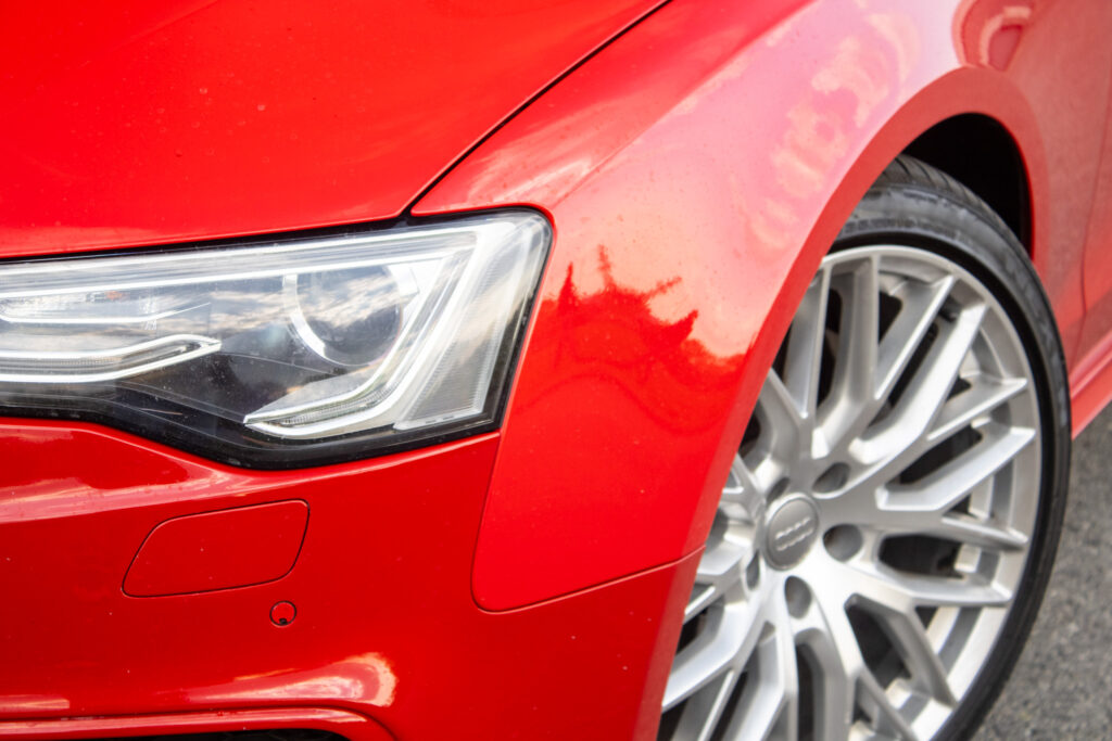 Na prednom nárazníku je mierny rozdiel v odtieni laku, pár časti na vozidle bolo lakovaných z dôvodu drobných poistných udalostí