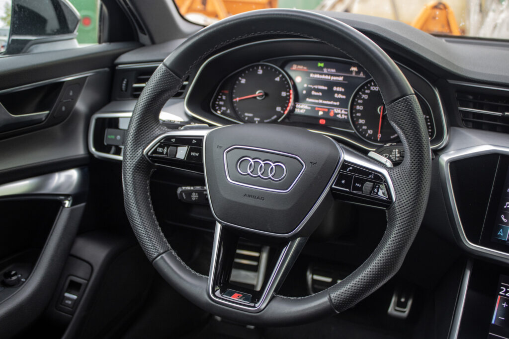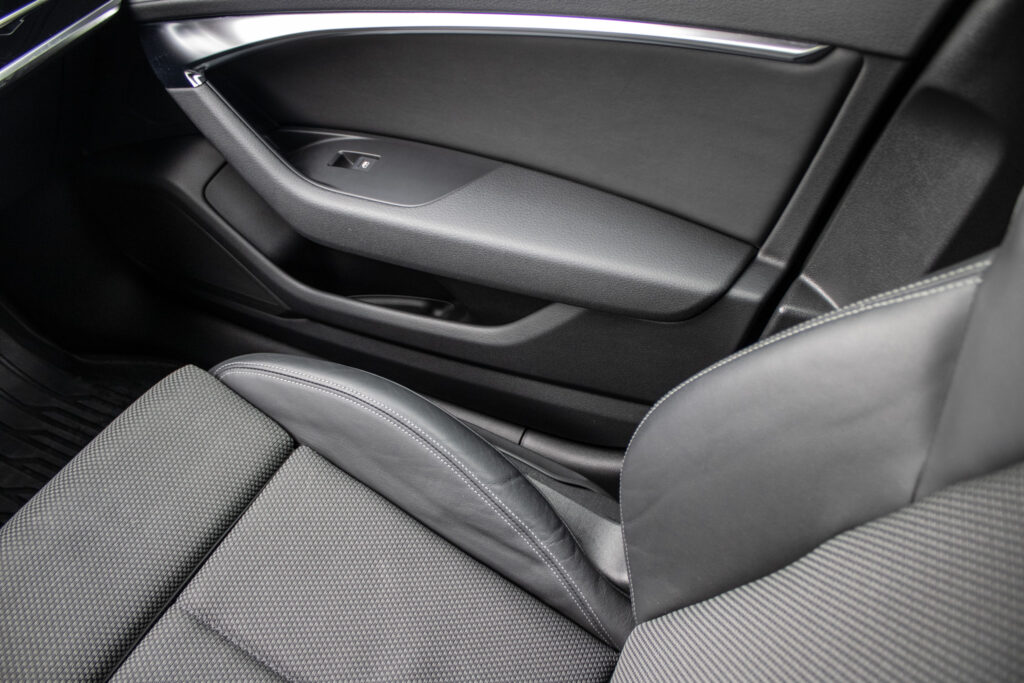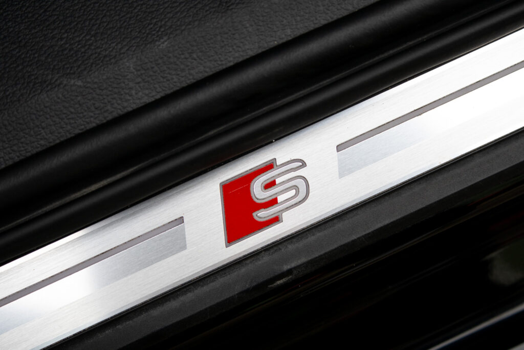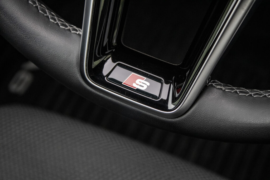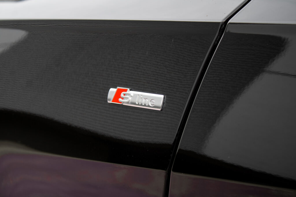 Audi hold assist - asistent rozbehu pri stúpaní, Determálne sklá, Elektricky nastaviteľné bederné opierky vpredu, Elektromechanická parkovacia brzda, Exteriérové prvky línie sport: mriežka chladiča titánovočierna matná s chrómovým lemom a chrómovými lamelami; bočné mriežky čierne matné so špecifickým hliníkovým otvorom a stredovou lištou; difúzor vzadu v titánovočiernej matnej farbe s chrómovou lištou a chrómové koncovky výfuku; ozdobná lišta vzadu prechádzajúca zadnými svetlami chrómová, Integrálny systém hlavových opierok, Kryty vonkajších spätných zrkadiel lakované vo farbe vozidla, Multifunkčný športový kožený volant 3-ramenný s funkciou radenia, Parkovací systém plus - akustický a optický parkovací systém vpredu a vzadu, Slnečné clony s osvetlenými make-up zrkadielkami na strane vodiča aj spolujazdca, Systém monitorovania jazdného pruhu - upozornením napomáha predchádzať neúmyselnému opusteniu jazdného pruhu (bez smerovky); rozpoznáva hranice jazdného pruhu; možnosť nastavenia vibrácií na volante; aktívny od 60 do 250km/h, Vnútorné spätné zrkadlo s automatickou clonou, Športové sedadlá vpredu manuálne výškovo nastaviteľné