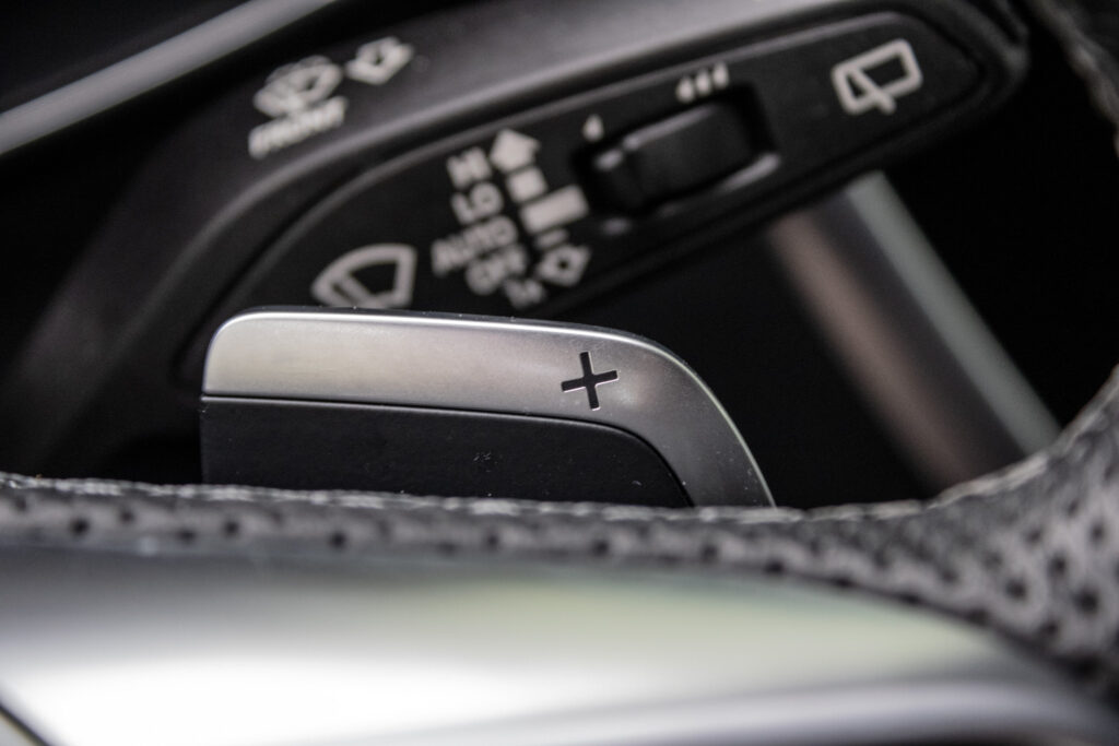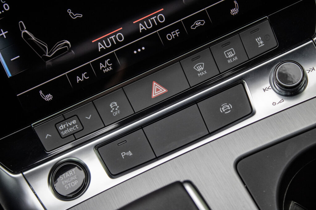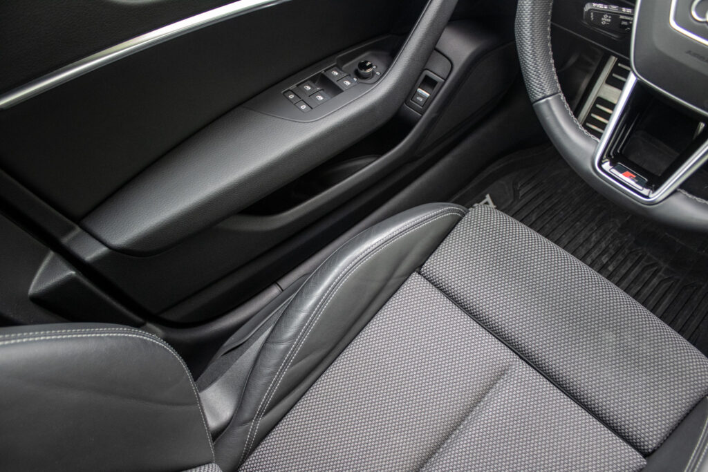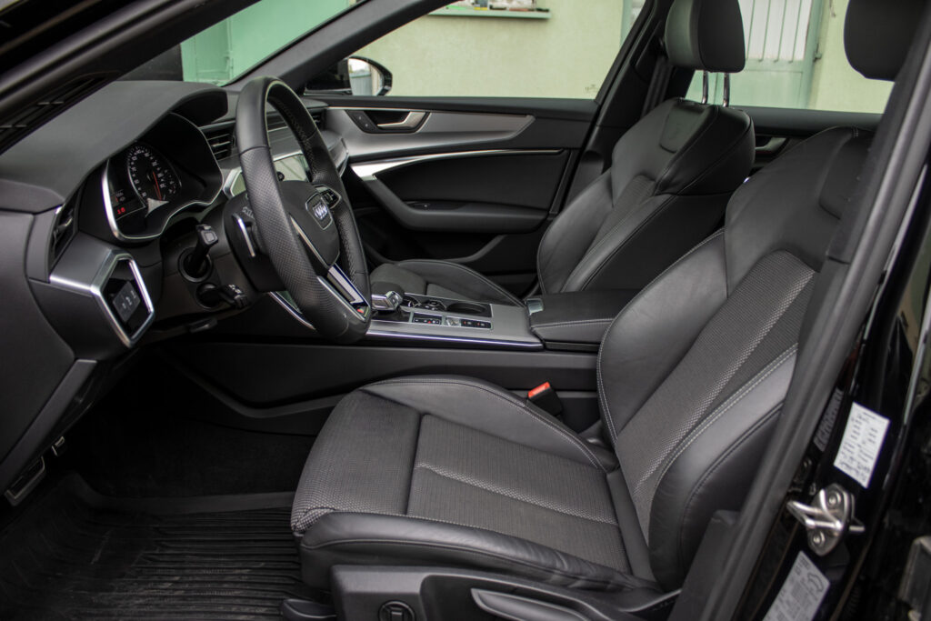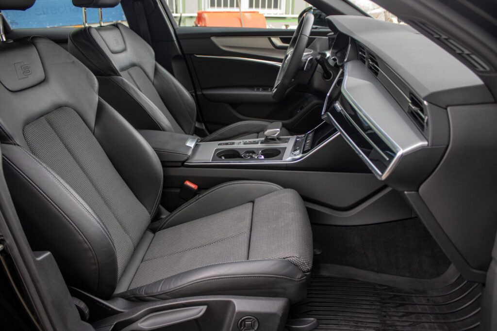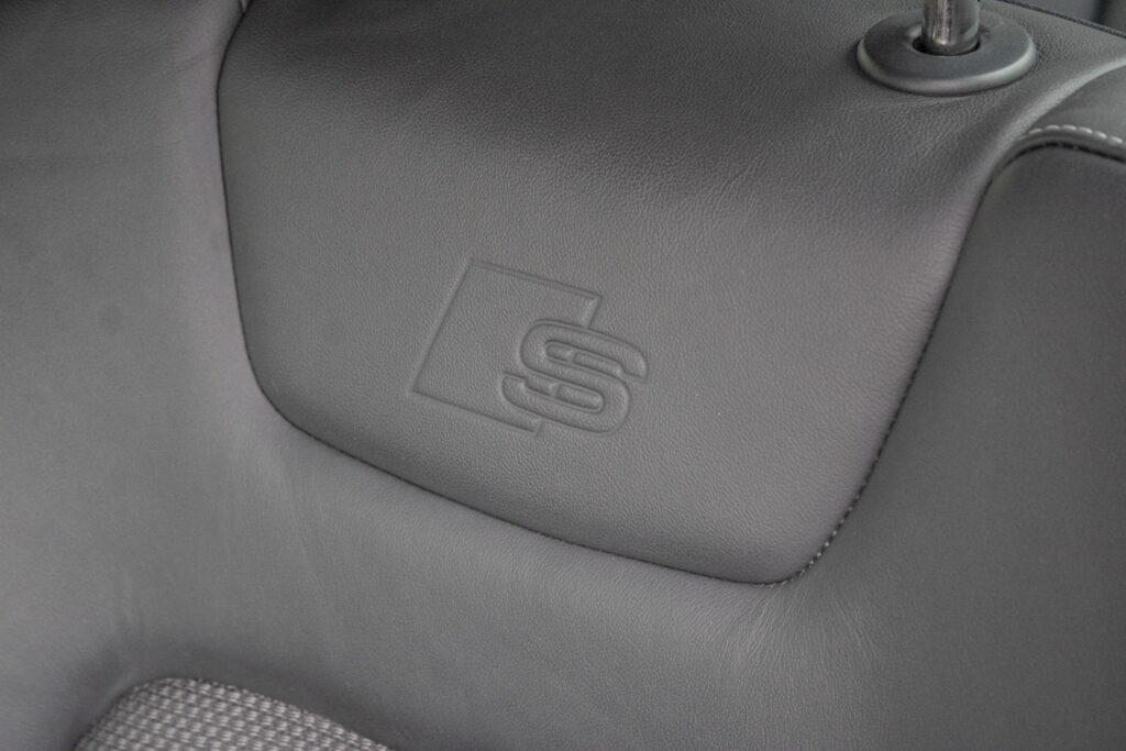 Audi hold assist - asistent rozbehu pri stúpaní, Determálne sklá, Elektricky nastaviteľné bederné opierky vpredu, Elektromechanická parkovacia brzda, Exteriérové prvky línie sport: mriežka chladiča titánovočierna matná s chrómovým lemom a chrómovými lamelami; bočné mriežky čierne matné so špecifickým hliníkovým otvorom a stredovou lištou; difúzor vzadu v titánovočiernej matnej farbe s chrómovou lištou a chrómové koncovky výfuku; ozdobná lišta vzadu prechádzajúca zadnými svetlami chrómová, Integrálny systém hlavových opierok, Kryty vonkajších spätných zrkadiel lakované vo farbe vozidla, Multifunkčný športový kožený volant 3-ramenný s funkciou radenia, Parkovací systém plus - akustický a optický parkovací systém vpredu a vzadu, Slnečné clony s osvetlenými make-up zrkadielkami na strane vodiča aj spolujazdca, Systém monitorovania jazdného pruhu - upozornením napomáha predchádzať neúmyselnému opusteniu jazdného pruhu (bez smerovky); rozpoznáva hranice jazdného pruhu; možnosť nastavenia vibrácií na volante; aktívny od 60 do 250km/h, Vnútorné spätné zrkadlo s automatickou clonou, Športové sedadlá vpredu manuálne výškovo nastaviteľné