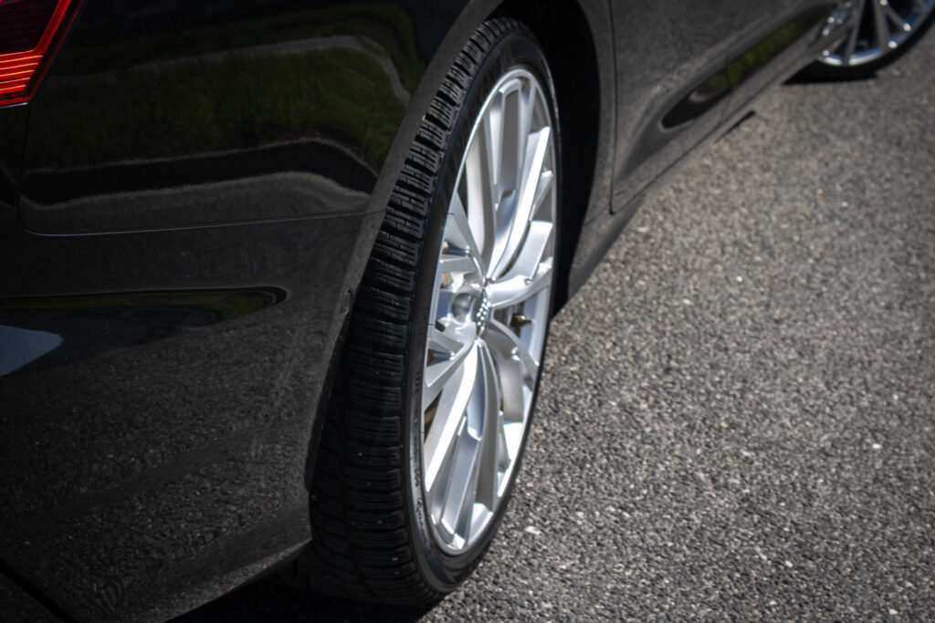 Obuté krásne 21 palcové disky na zimných pneumatikách.