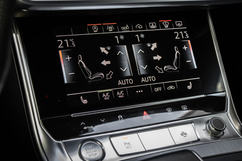 Zadná natáčacia náprava, Bang a Olufsen Sound Systém, Kožené sedadlá vyhrievané s pamäťou, 4-zónová klimatizácia.