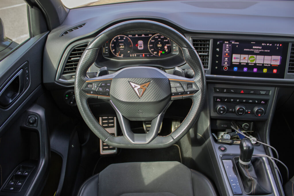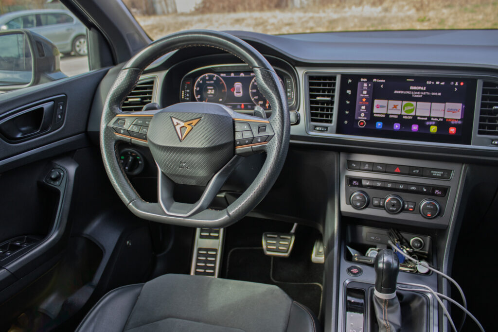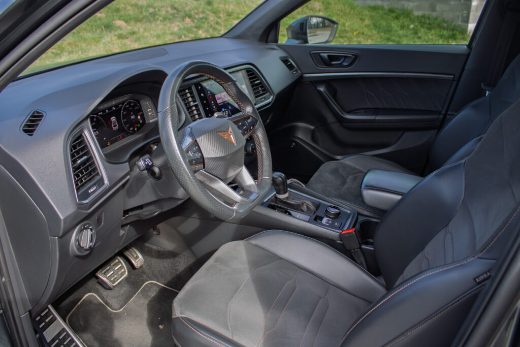 Cupra Ateca 2.0 TSI 221 kW 4Drive DSG, r. v. 2020 (model 2021) – výkonné športové vozidlo s pohonom 4x4 a 7-stupňovou automatickou prevodovkou, ktoré ponúka dynamiku aj každodennú použiteľnosť, vozidlo je v maximálne zachovalom stave, pravidelne profesionálne čistené, tepované a strojovo leštené, s aplikovanou keramickou ochranou laku pre dlhodobý perfektný vzhľad, tankované výhradne prémiové palivo, posledný servis 12/2025 (olej + filtre), auto je nikdy nebúrané, nelakované a v pôvodnom stave, všetky servisné úkony doložené faktúrami, bez nutnosti ďalších investícií a pripravené okamžite jazdiť.