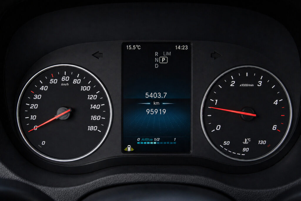 4x letné pneumatiky na elektrónoch, Asistent automat. riadenia osvetlenia vozidla/zapnutia osvetlenia, Asistent bočného vetra, Asistent udržiavania v jazdnom pruhu, Nastaviteľné sedadlo spolujazdca, Posuvné dvere vpravo, Systém núdzového volania Mercedes Benz, Tretie brzdové svetlo, Ukazovateľ vonkajšej teploty, Výstraha pri nezapnutí bezpečnostného pásu pre sedadlo spolujazdca