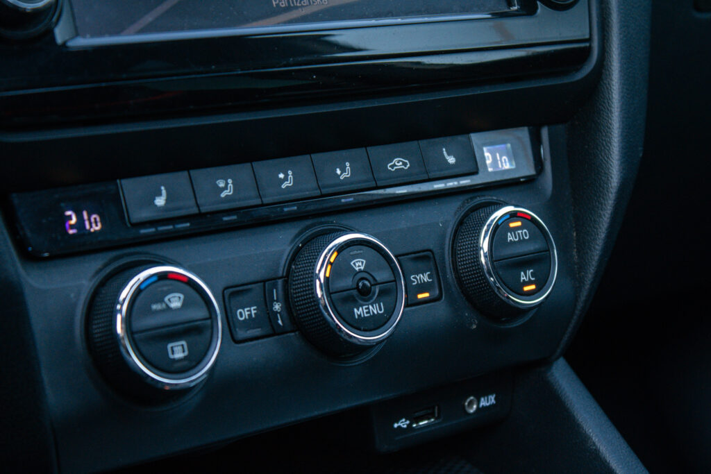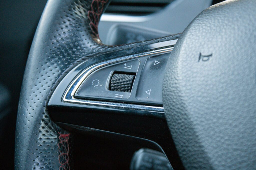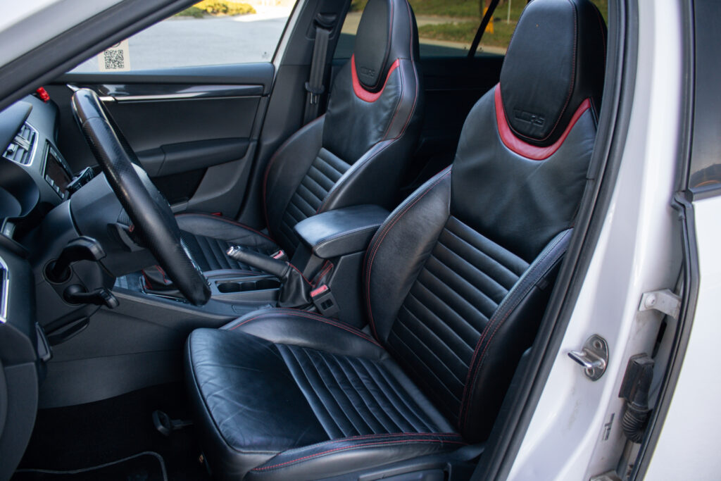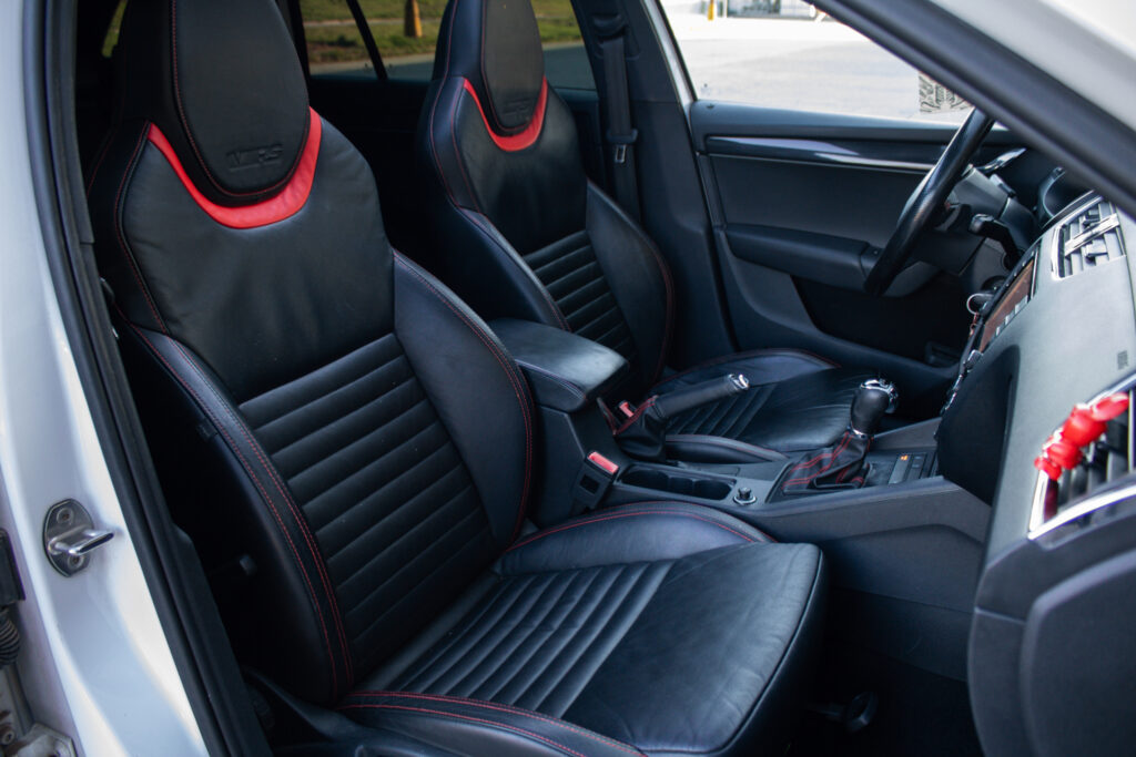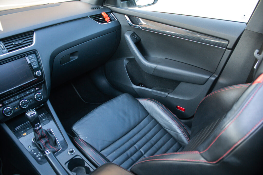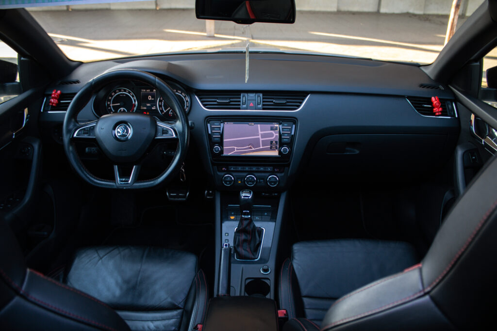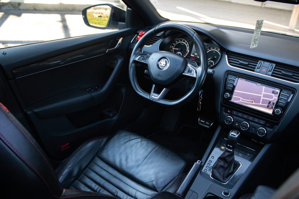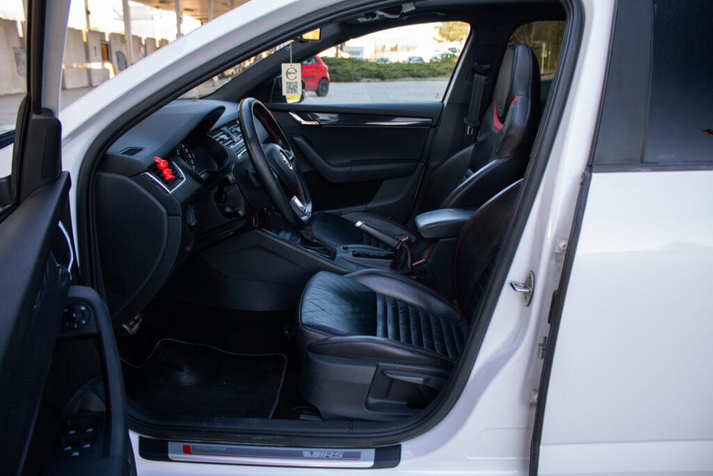 Climatronic - automaticá klimatizácia s kombinovaným filtrom a senzorom vlhkosti v držiaku vnútorného spätného zrkadla s aut. stmievaním, Maxi DOT - plnegrafický displej palubného počítača, Možnosť podvolantového radenia DSG prevodovky, Predné hmlové svetlomety - RS, Predné hmlové svetlomety s Corner funkciou, Rádio BOLERO s USB a SD slot + 8 reproduktorov, Trojramenný športový kožený multifunkčný volant pre ovládanie rádia a telefónu, Výškovo nastaviteľné predné sedadlá s bedrovými opierkami