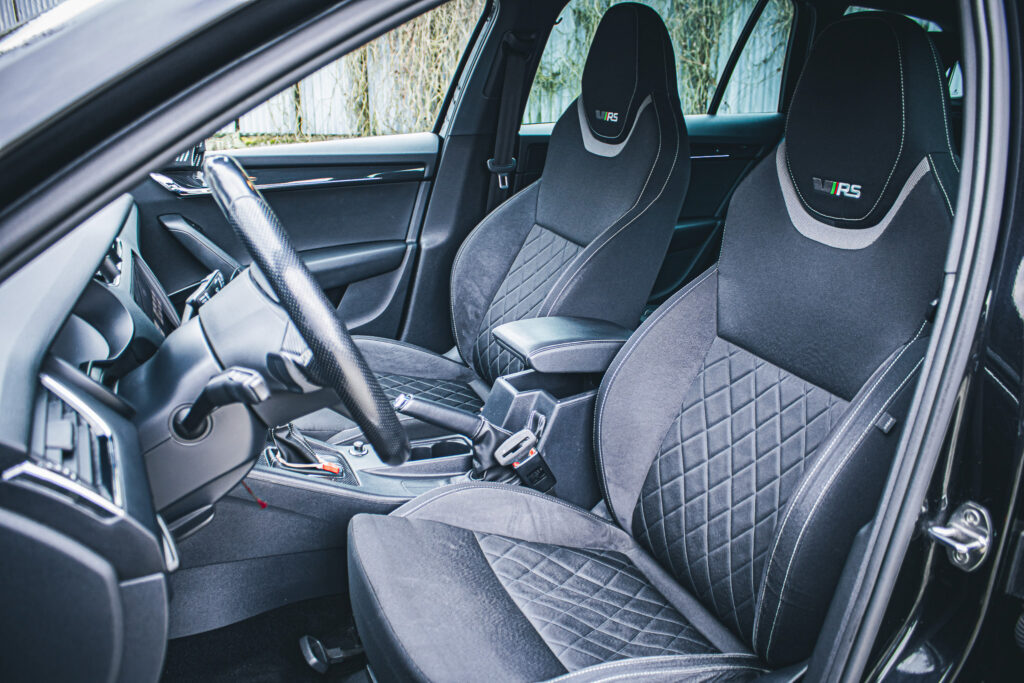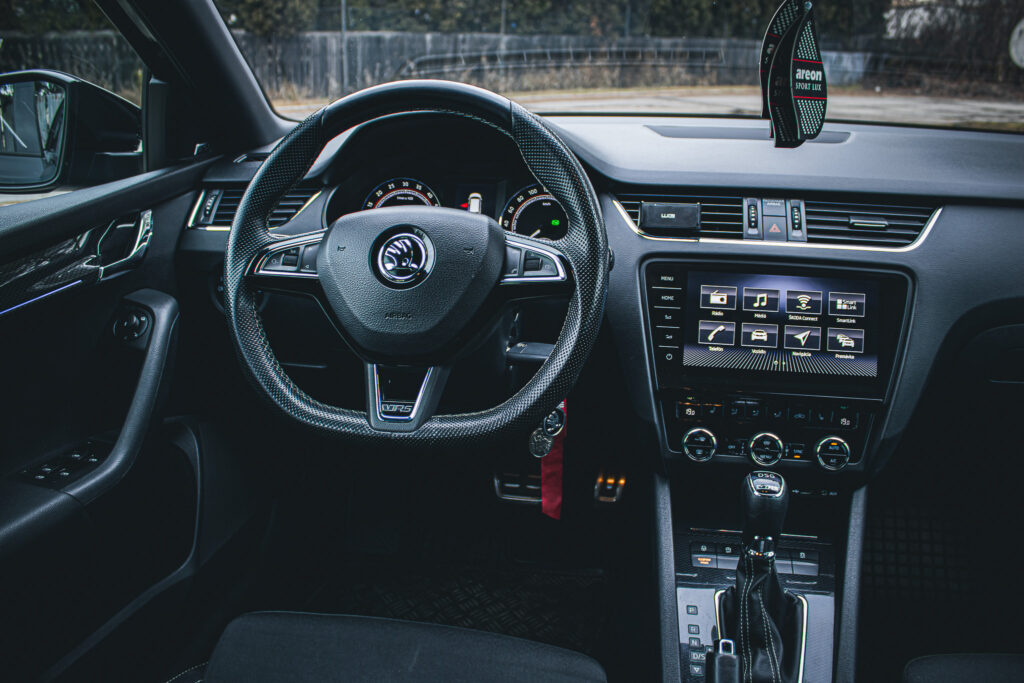 Maxi DOT - plnegrafický displej palubného počítača, Možnos podvolantového radenia DSG prevodovky, Odistenie operadiel zadných sedadiel z batožinového priestoru, Predné hmlové svetlomety - RS, Rádio BOLERO s USB a SD slot + 8 reproduktorov, Signalizácia nezpnutia bezpečnostného pásu vodiča a spolujazdca a troch miest vzadu, Trojramenný športový kožený multifunkčný volant pre ovládanie rádia a telefónu, Vnútorné spätné zrkadlo so senzorom vlhkosti a automatickým stmievaním, Výškovo nastaviteľné predné sedadlá s bedrovými opierkami, Zadný stierač Aero s ostrekovačom, Športový podvozok,