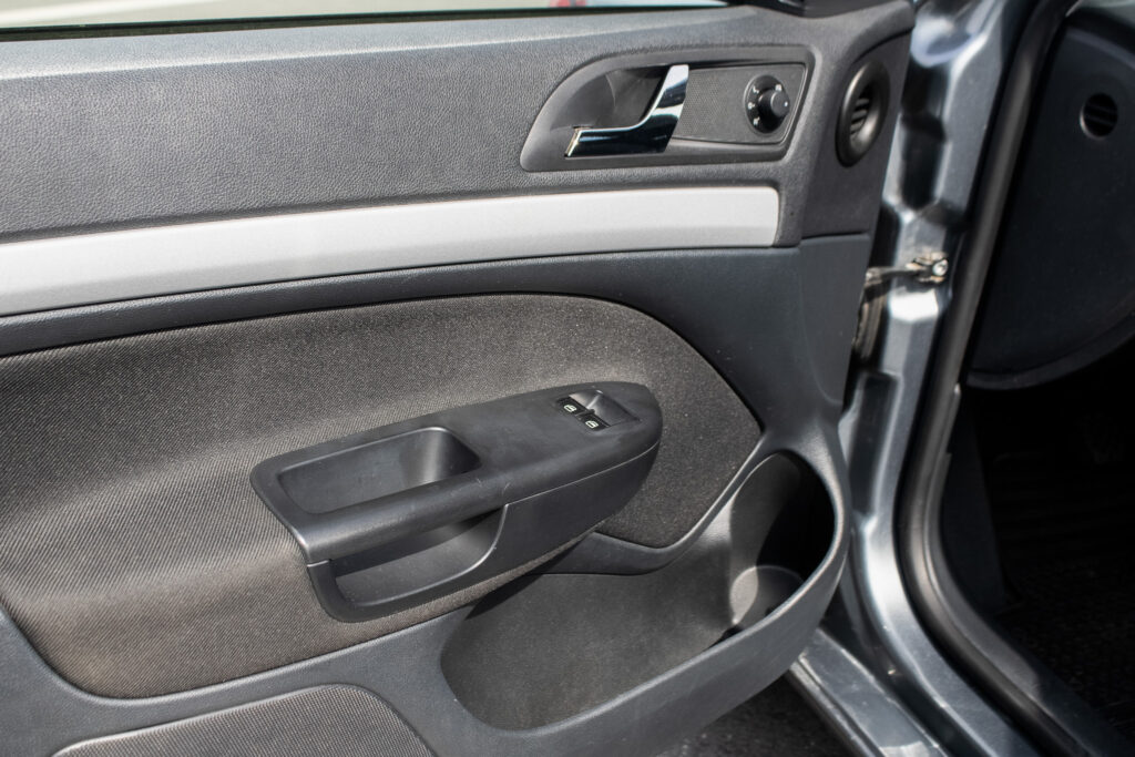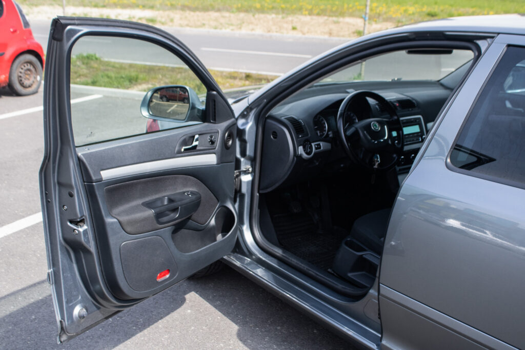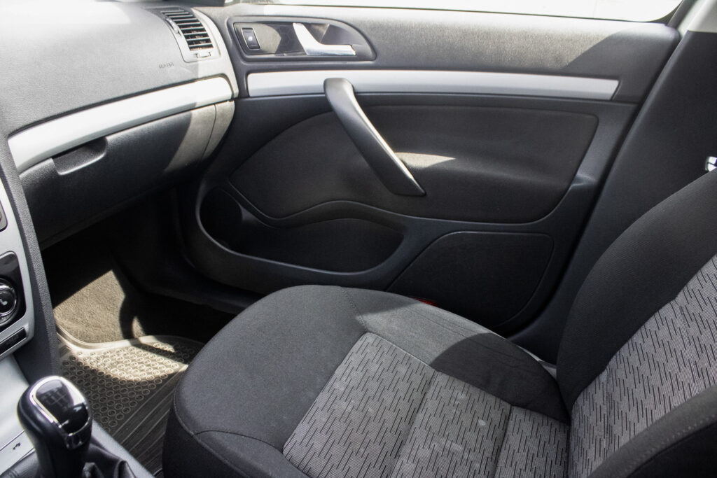 spätné zrkadlá a kľučky dverí lakované vo farbe karosérie, manuálna ručná brzda, kožený volant, vyhrievané zadné sklo, držiaky na poháre, výbava látka