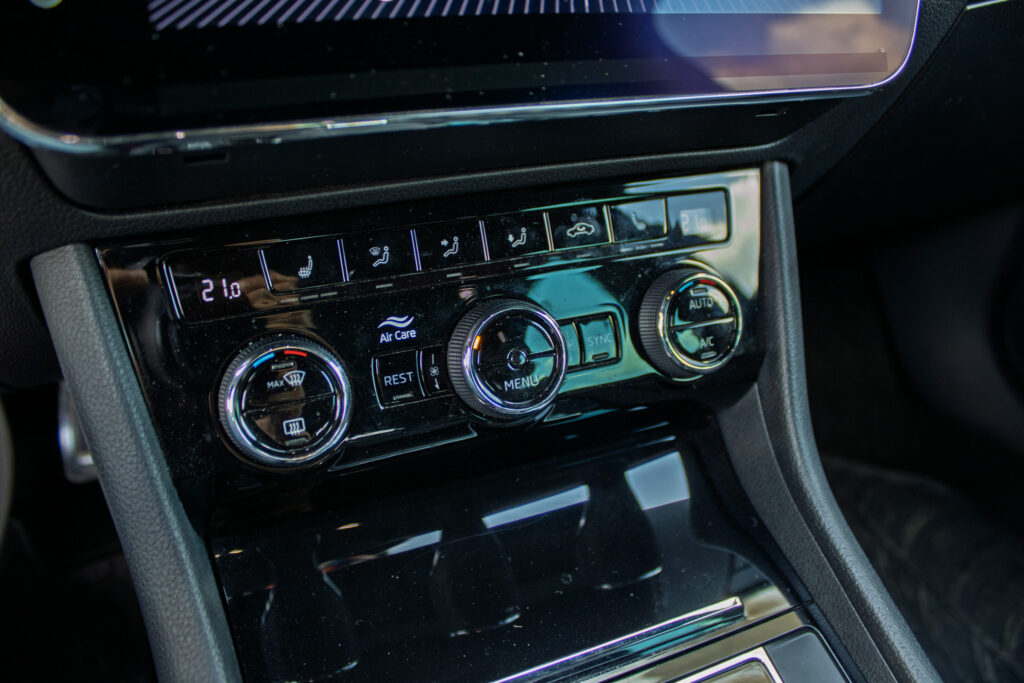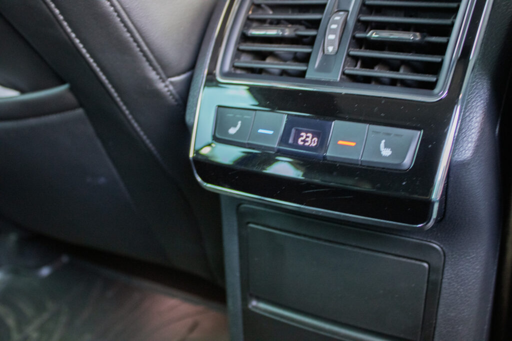 Centrálne uzamykanie, El. predné a zadné okná, El. nastaviteľné sedadlá, El. zrkadlá, Diaľkové ovládanie, Rádio, Multifunkčný volant, Lakťová opierka, Bezkľúčové štartovanie, Klimatizovaná priehradka, Ostrekovače svetlometov, Automatická trojzónová klíma, Apple CarPlay, Android Auto, Welcome light, Radenie pod volantom