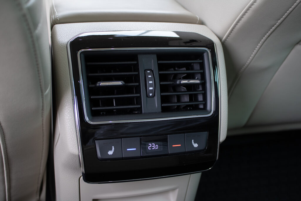 Centrálne uzamykanie, El. predné a zadné okná, El. nastaviteľné sedadlá, El. zrkadlá, Diaľkové ovládanie, Rádio, Multifunkčný volant, Lakťová opierka, Bezkľúčové štartovanie, Ostrekovače svetlometov, Automatická trojzónová klíma, Atermické čelné sklo