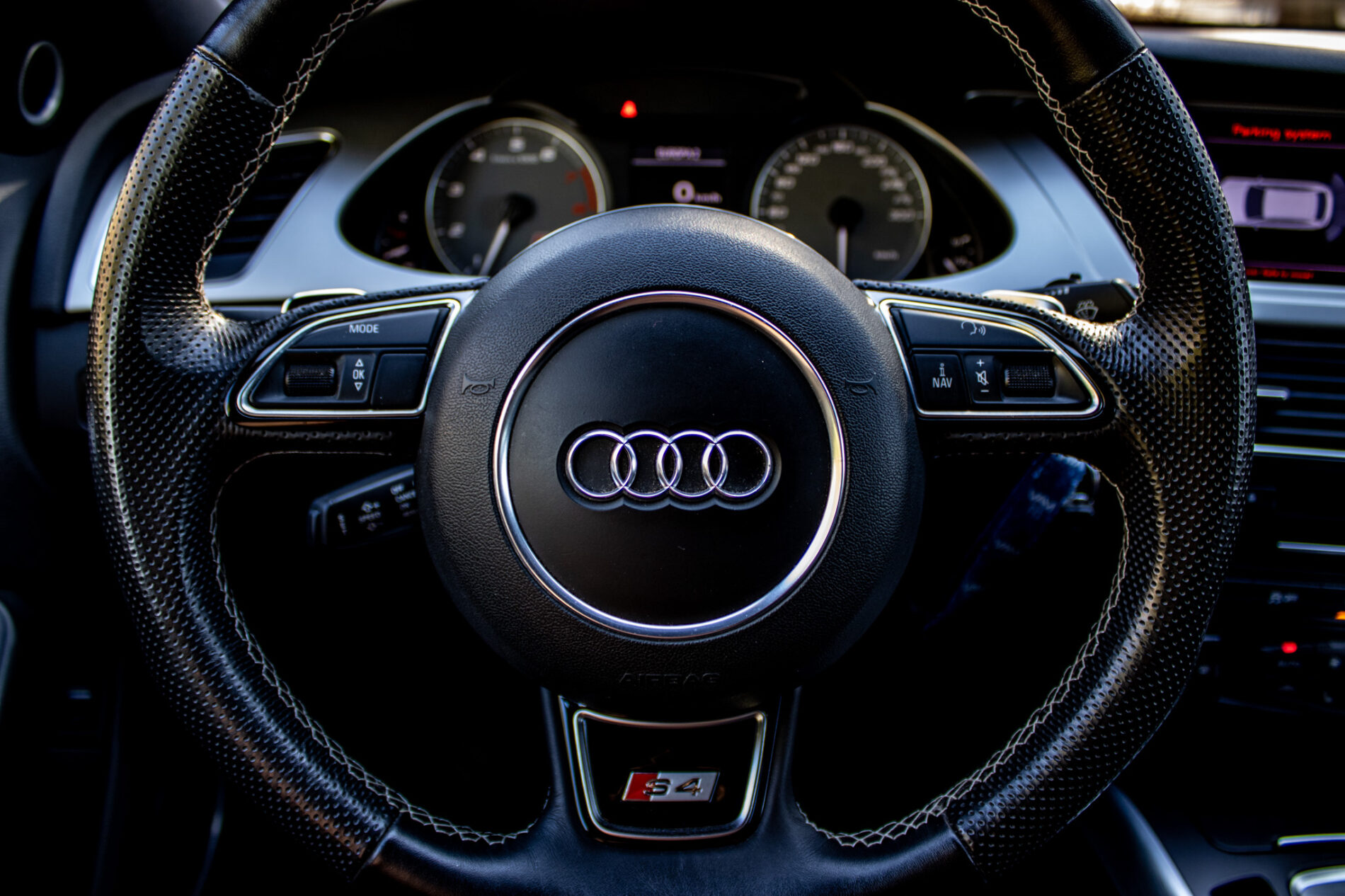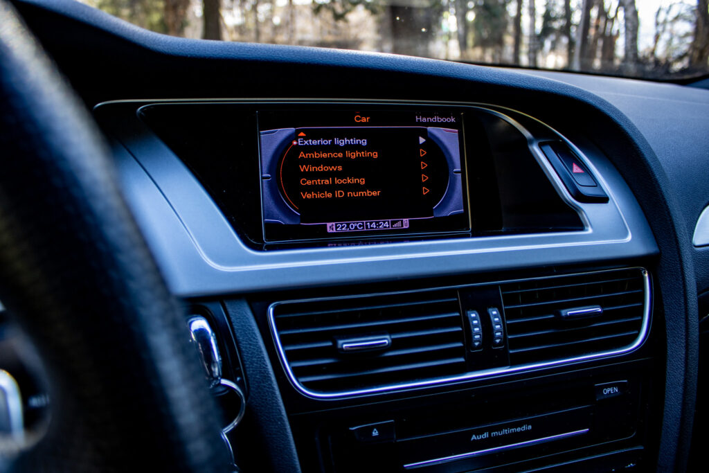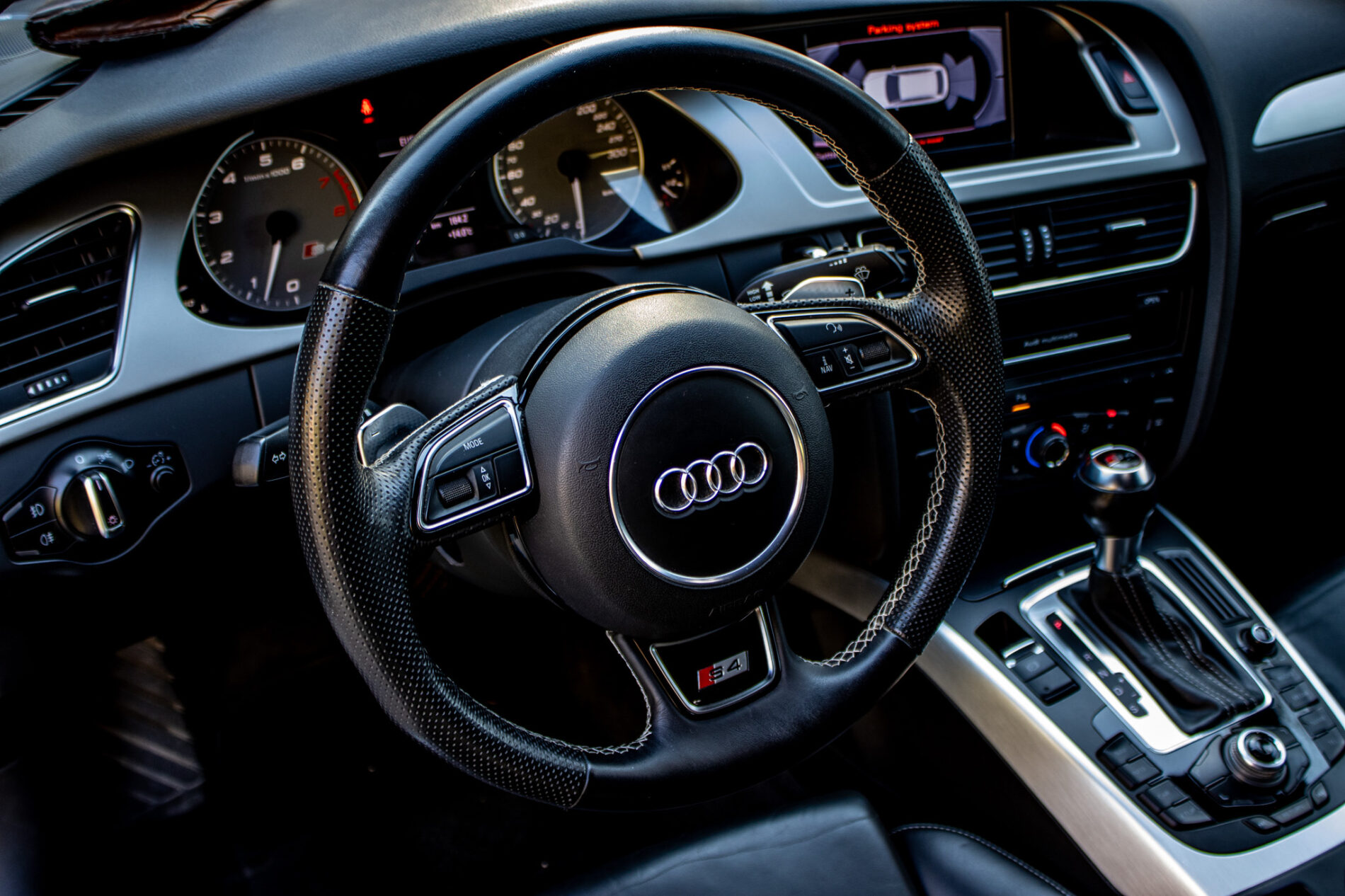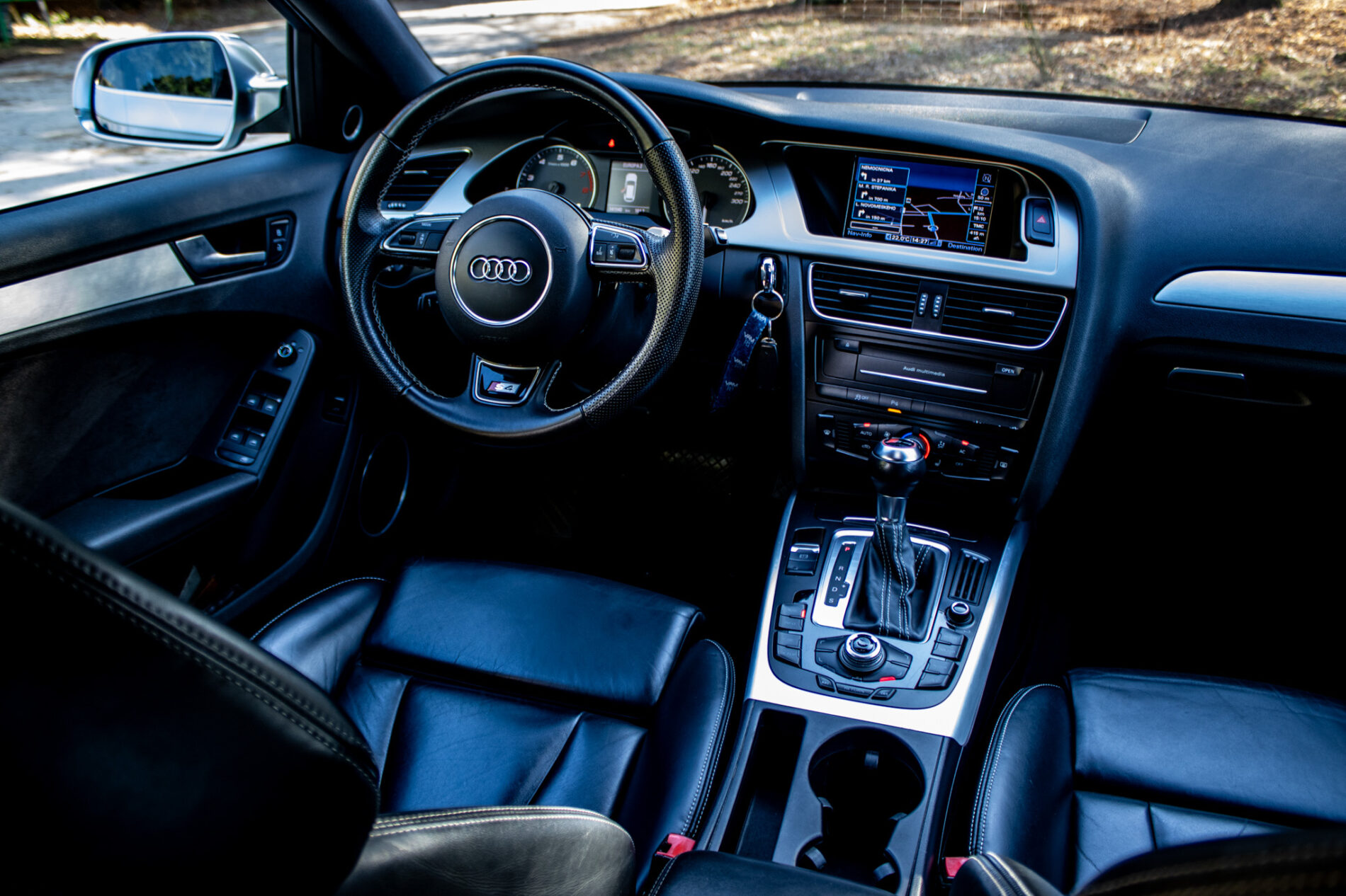 Interiér ponúka kvalitné kožené sedadlá, multifunkčný športový volant S4, navigačný systém Audi MMI a automatickú klimatizáciu.
