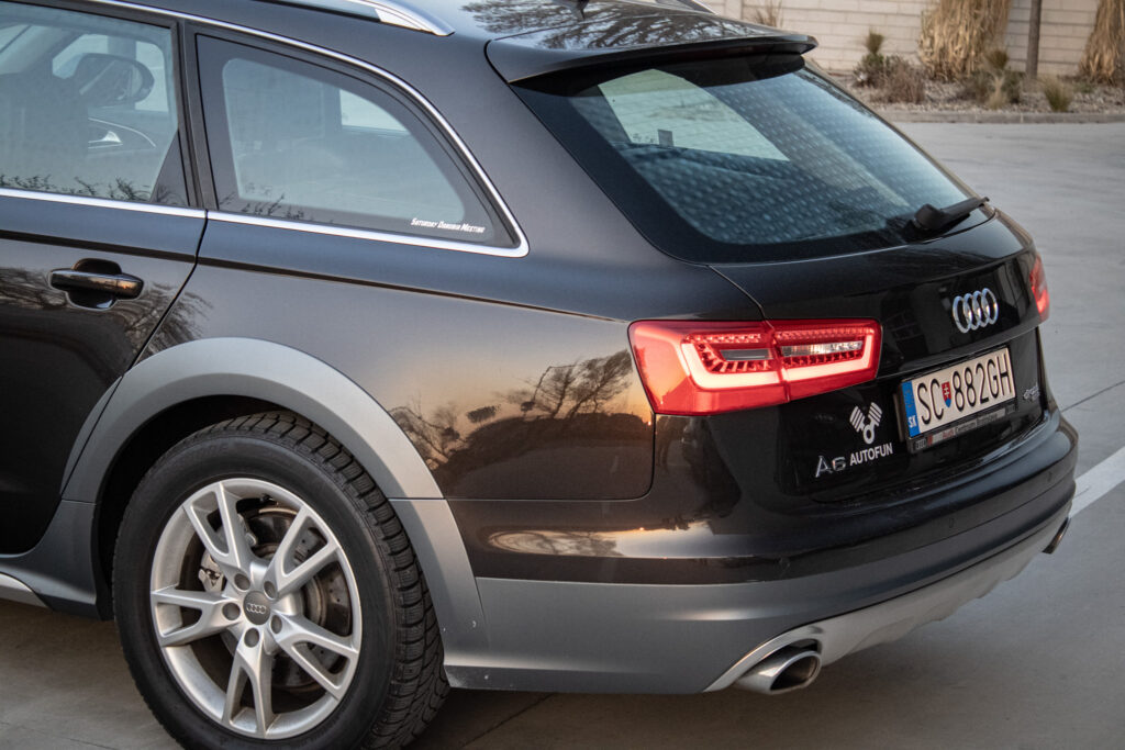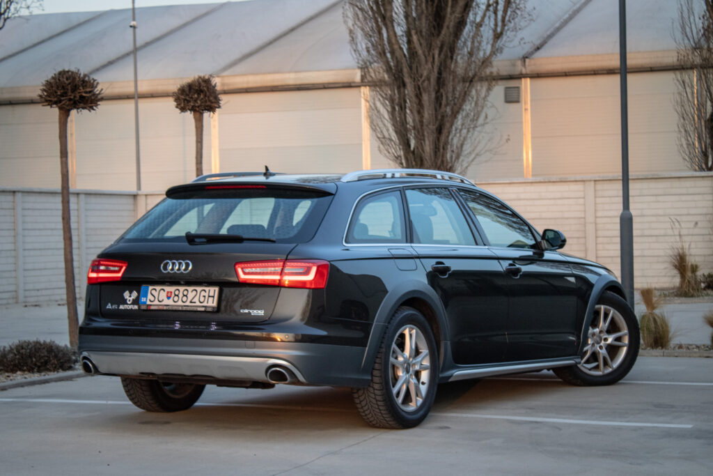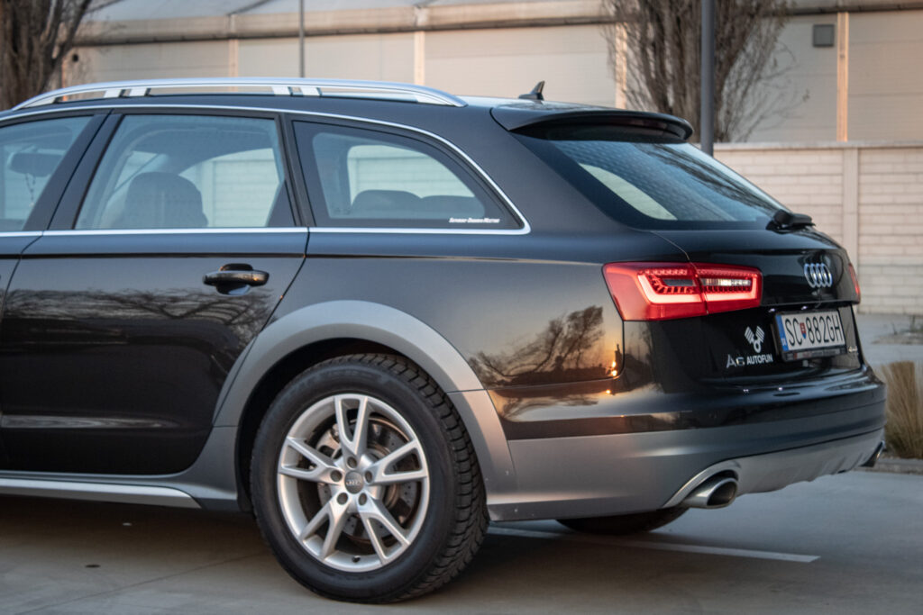 Audi A6 Allroad je jedným z najuniverzálnejších vozidiel na trhu, ktoré spája luxus manažérskeho sedanu s praktickosťou rodinného kombi a priechodnosťou ľahkého SUV. Auto je ideálnou voľbou pre niekoho, kto hľadá "jedno auto na všetko". Je to reprezentatívne vozidlo, ktoré vás v maximálnom pohodlí odvezie stovky kilometrov po diaľnici, ale nezľakne sa ani zasneženej cesty k horskej chate. V aute nájdete prvotriedne materiály (koža, hliník, pravé drevo), ktoré odolávajú opotrebovaniu. Podvozok skvele filtruje nerovnosti slovenských ciest, pričom auto zostáva stabilné aj v zákrutách. Motor s výkonom 180kW a 580Nm poskytuje autu vynikajúcu dynamiku pri zachovaní rozumnej spotreby.