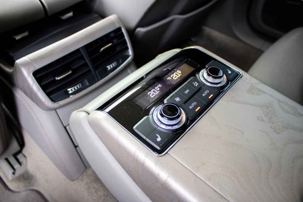 Centrálne uzamykanie, El. predné a zadné okná, El. nastaviteľné sedadlá, El. zrkadlá, Diaľkové ovládanie, Automatická štvorzónová klimatizácia, Rádio, Nezávislé kúrenie, Multifunkčný volant, Lakťová opierka, Bezkľúčové štartovanie, Vzduchové odpruženie, Klimatizovaná priehradka, Ostrekovače svetlometov, Radenie pod volantom