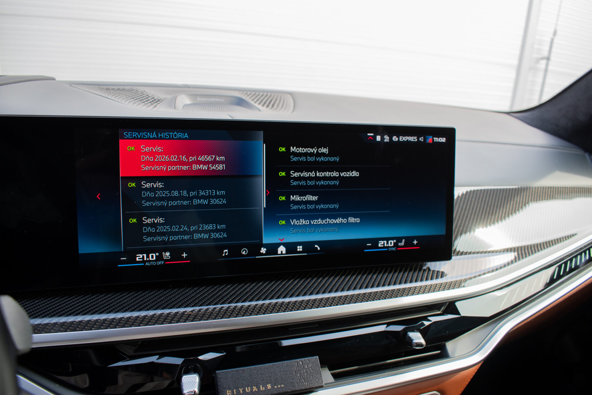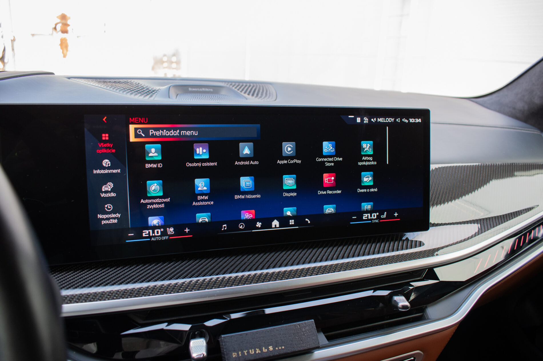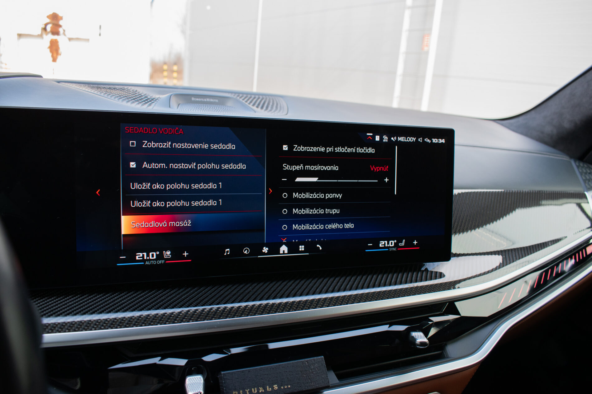 Bowers & Wilkins audiosystém, ovládanie gestami, akustické sklá, panoramatická strecha Sky Lounge s integrovaným LED osvetlením, 2 - vrstvová metalíza - BMW Individual Lackerung, Adaptívny M podvozok, Asistent diaľkových svetiel, Asistent parkovania, Asistent pozornosti, Bedrová opierka pre vodiča a spolujazdca, Dynamické brzdové svetlá, Senzor nárazu, Sieť na oddelenie batožinového priestoru, Stmavené sklá vzadu, Vyhrievané dýzy ostrekovača, Športové predné sedadlá, M športový paket Pro, Nezávislá ventilácia