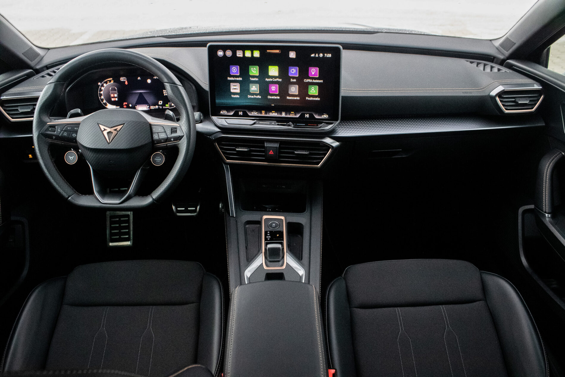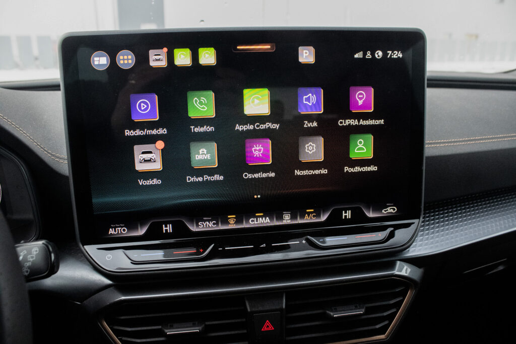 Centrálne uzamykanie, El. predné a zadné okná, El. zrkadlá, Diaľkové ovládanie, Rádio, Multifunkčný volant, Lakťová opierka, Bezkľúčové štartovanie, Vonkajší teplomer, Automatická trojzónová klíma, Apple CarPlay, Android Auto, Welcome light, Virtuálny kokpit, Radenie pod volantom, Bezdrôtové nabíjanie pre smartphony