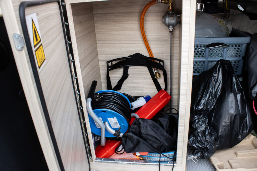 Vozidlo je vybavené elektrinou a dieselovým kúrením - má bufik, ktoré zabezpečuje komfortné vykurovanie interiéru. V interiéri sa nachádza sprcha a WC, ako aj príprava na plyn. Kuchynská príprava je nepoužitá (nová). Vozidlo má taktiež prípravu na solárny panel.