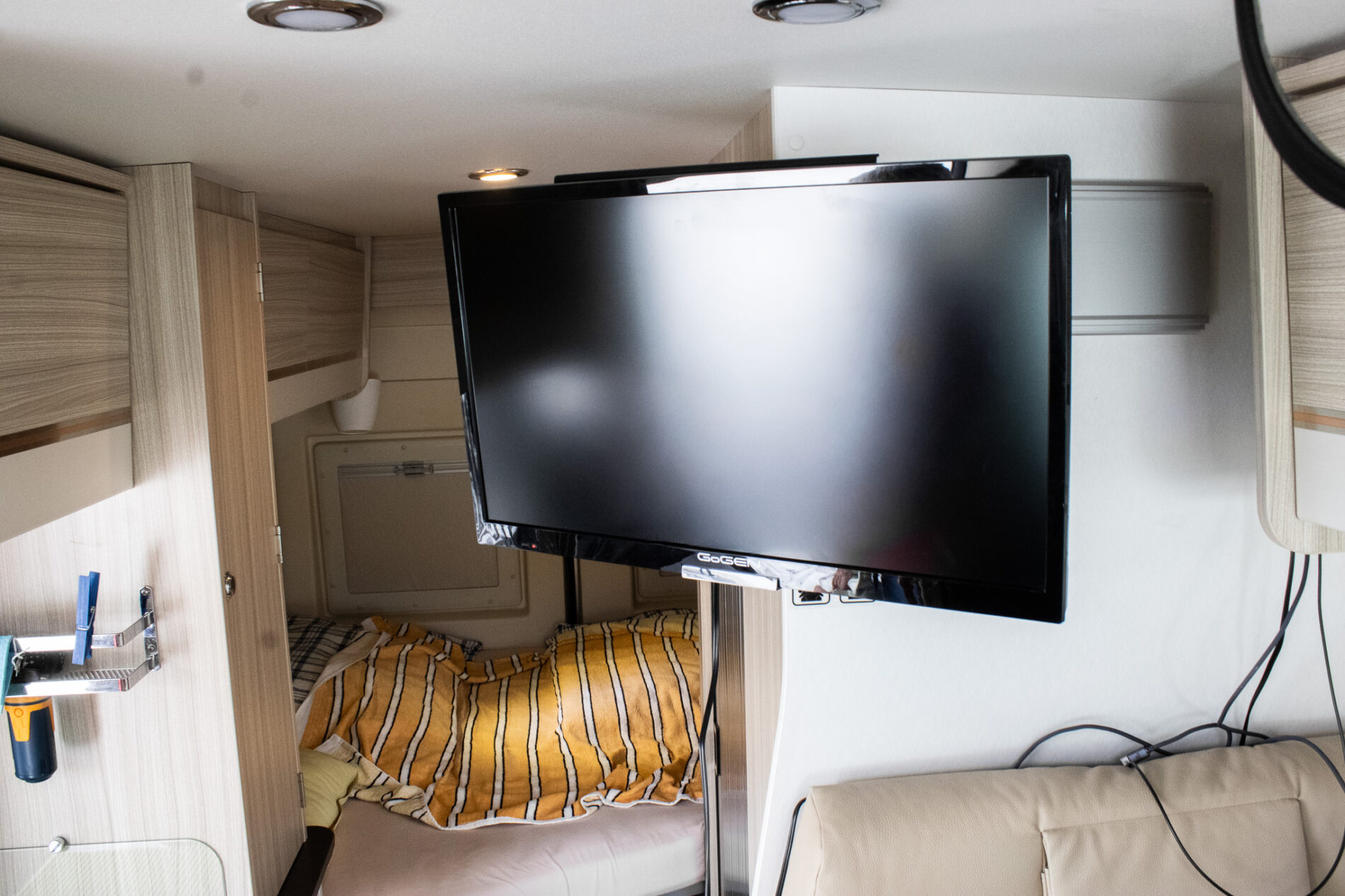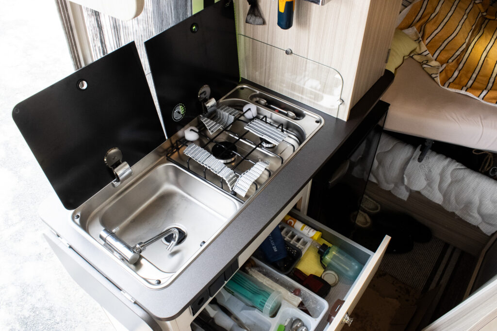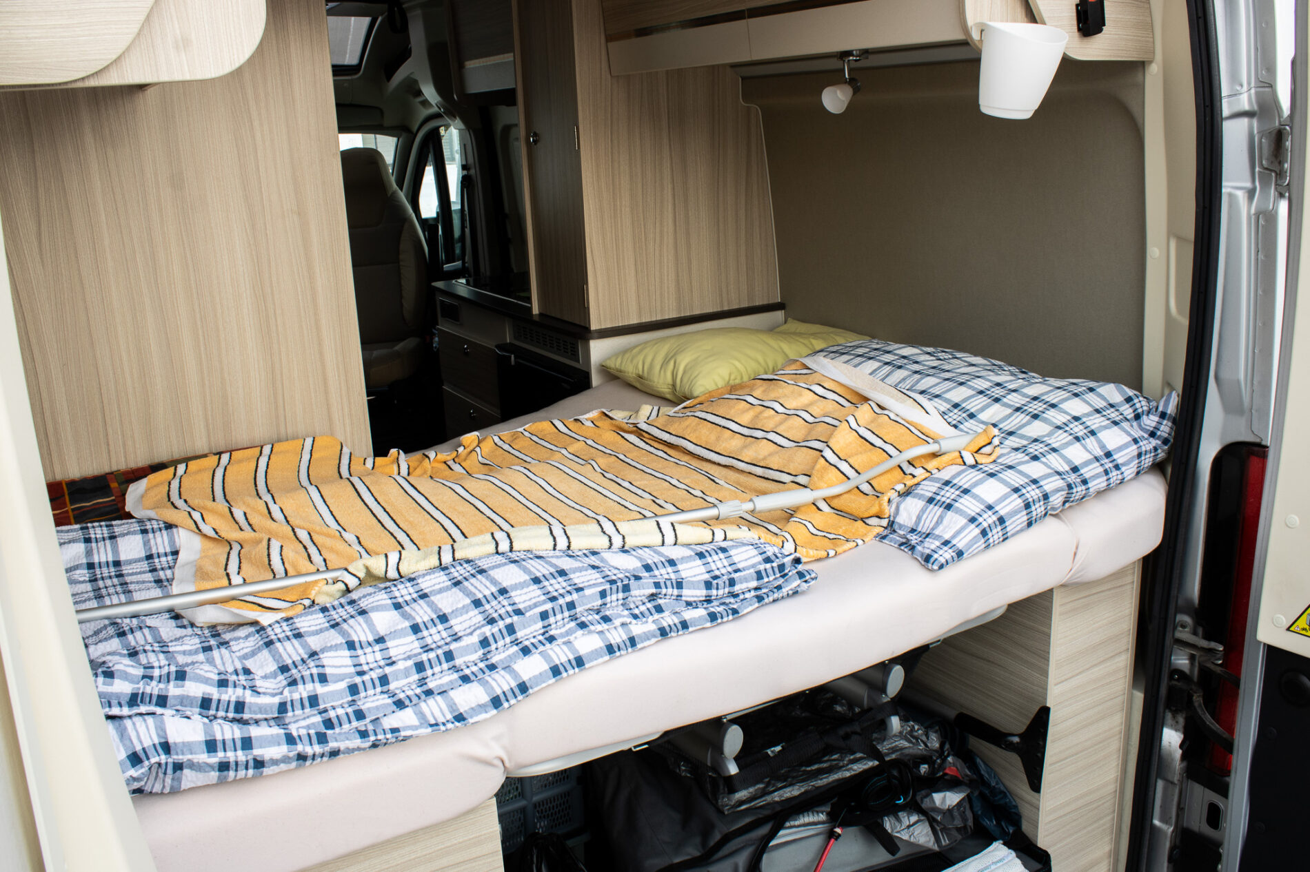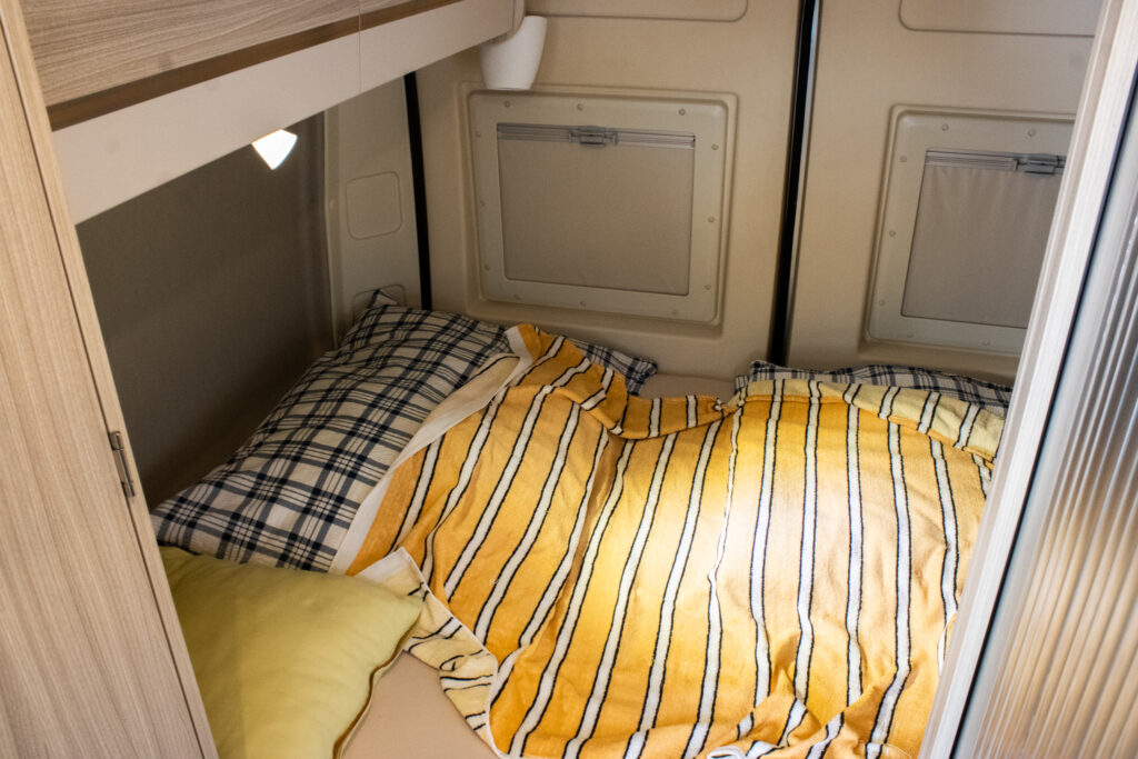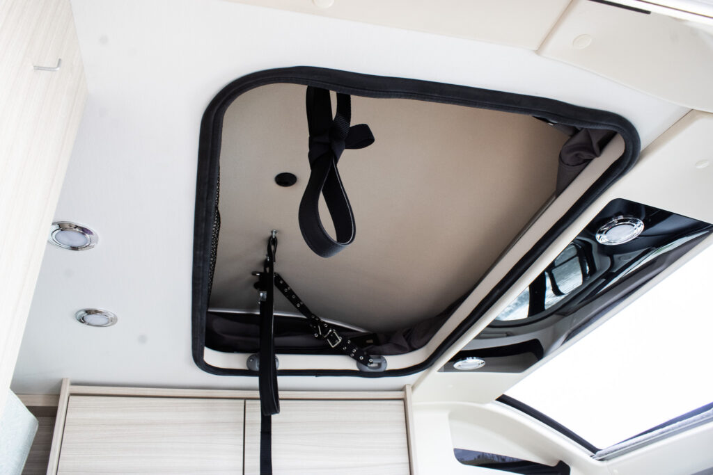 Spanie je riešené pre štyri osoby – dve miesta na spanie v spodnej časti a ďalšie dve miesta v strešnom lôžku.