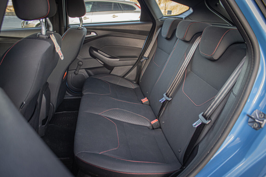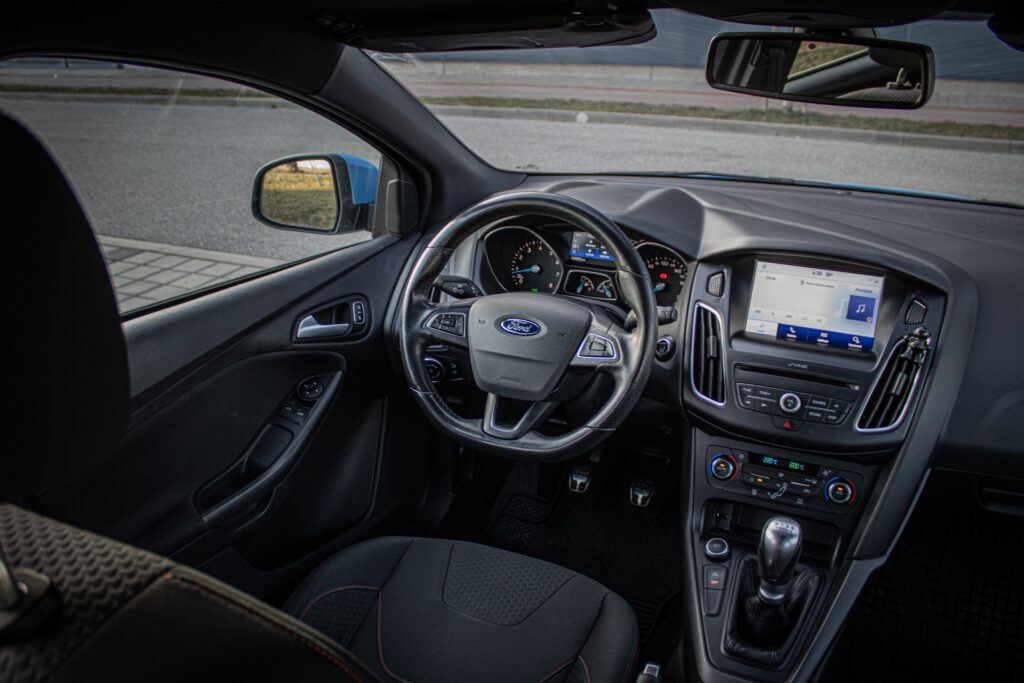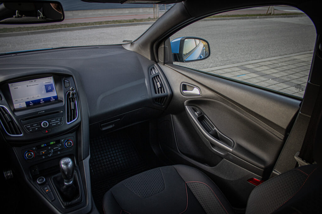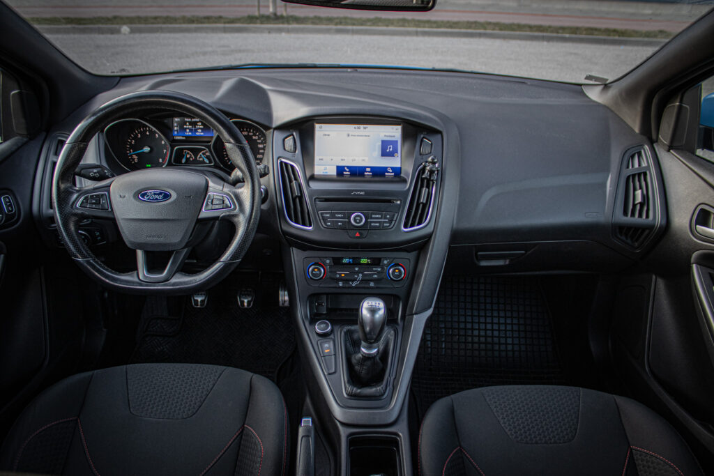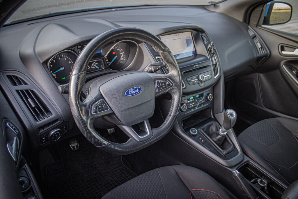Bezkľúčové štartovanie tlačidlom FordPower 2 x pasívny kľúč s DO centrálneho zamykania, DEATC - automatická klimatizácia s nastavovaním teploty v 2 zónach + peľový filter, DRL - predné svetlá s funkciou denného svietenia, Kryt batožinového priestoru, Ozdobné kryty prahov predných dverí s logom ST Line, Predná lakťová opierka s integrovanou odkladacou schránkou a zásuvkou 12V, Predné LED svetlá denného svietenia (DRL) + zadné koncové LED svetlá, Sklopné operadlo zad. sedadiel - delené v pomere 60:40, TCS - kontrola trakcie, TVC - systém stranového presmerovania krútiaceho momentu, Uzáver palivovej nádrže EasyFuel zabraňujúci natankovaniu nesprávneho paliva, Výškovo a pozdĺžne nastaviteľný kožený volant, Zadný spojler vo farbe karoséria, Športové odpruženie, Športové predné sedadlá v prevedení ST Line, Športový volant a radiaca páka v prevedení ST Line