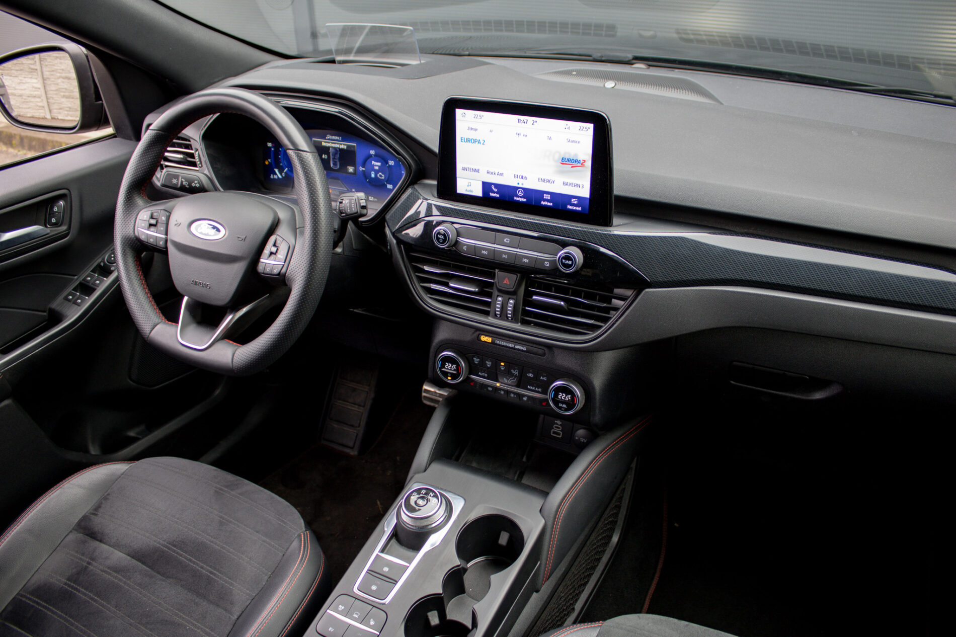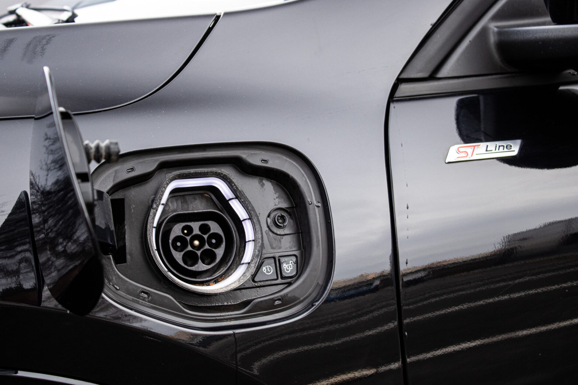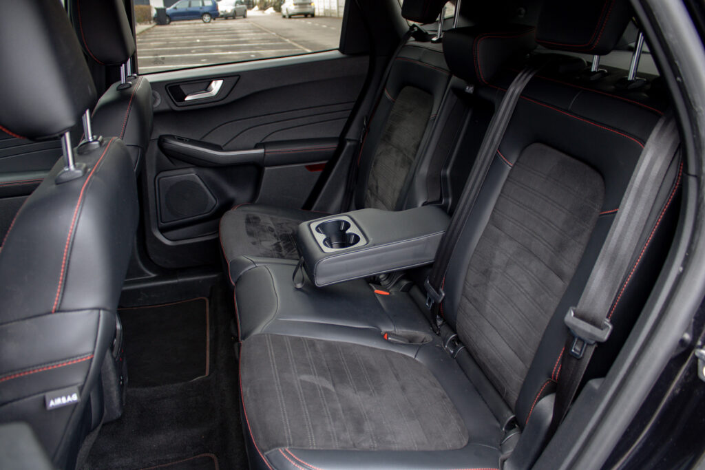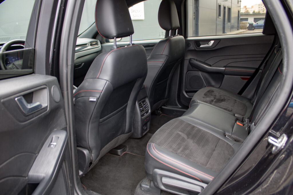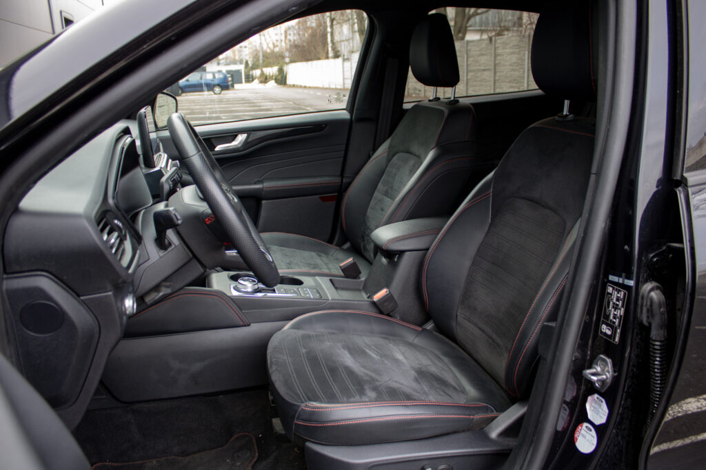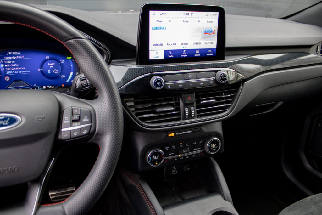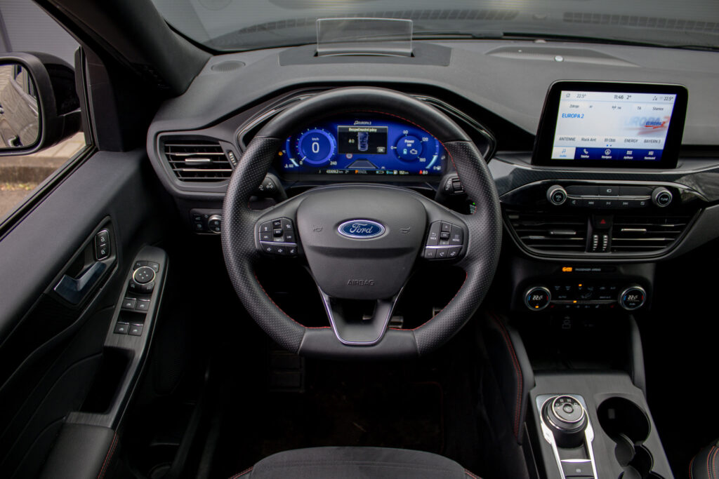 Ambientné LED osvetlenie interiéru, Audio systém B&O s 10 reproduktormi vrátane subwooferu, Automatická aktivácia bŕzd po náraze, Automatické stmievanie vnútorného spätného zrkadla + dažďový senzor, Bedrové opierky predných sedadiel, Elektricky nastaviteľné sedadlo vodiča 8-mi smermi vrátane bedrovej opierky, Elektricky ovládané predné a zadné okná, FordPass Connect - vzdialene ovládanie vozidla pomocou aplikácie v mobilnom telefóne - eCall - tlačidlo SOS pre automatické a vyžiadané núdzové volanie, Hliníkové športové pedále, LDW + LKA LDW - varovanie pred nemyselným opustením jazdného pruhu LKA - systém pre automatické navracanie do jazdného pruhu, LED hmlové svetlomety, LED zadné svetlá, Nabíjacie káble pre PHEV pre domáce nabíjanie 230 V - pre nábíjanie z wallboxov a vo verejných nabíjacích staniciach, Parkovacie senzory vpredu a vzadu, Signalizácia nezapnutého bezpečnostného pásu na všetkých sedadlách, TVC - systém stranového presmerovania krútiaceho momentu, Uzáver palivovej nádrže EasyFuel zabraňujúci natankovaniu nesprávneho paliva, Zadná lakťová opierka, Športové odpruženie, Športový predný nárazník ST-Line, Športový volant (pre AP s podvolantovým radením), Športový volant s červeným prešívaním