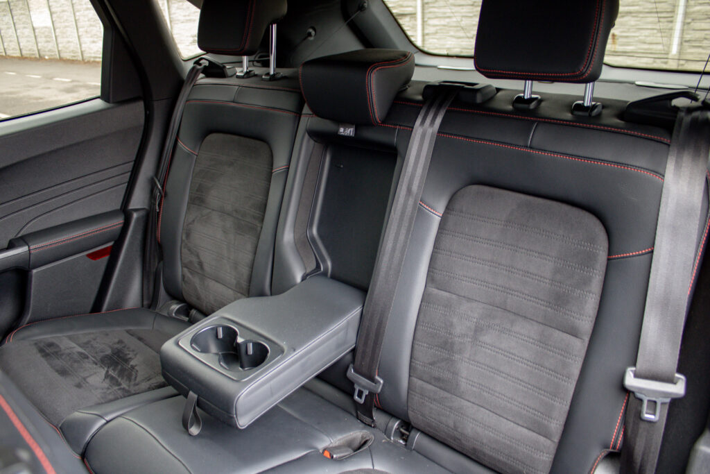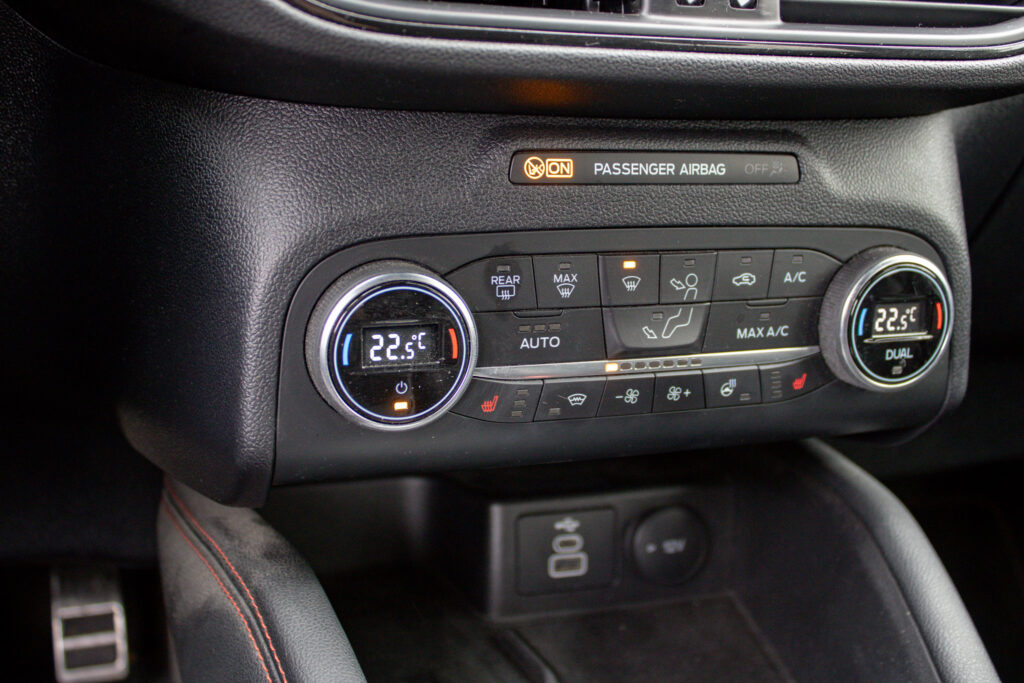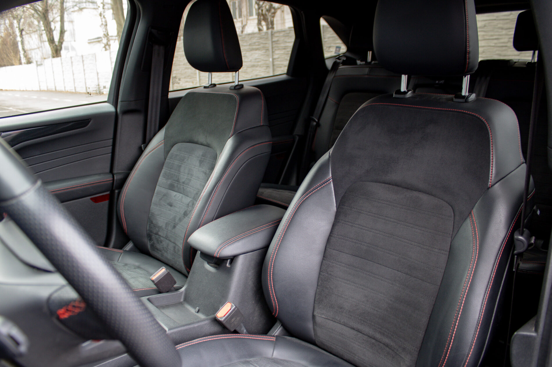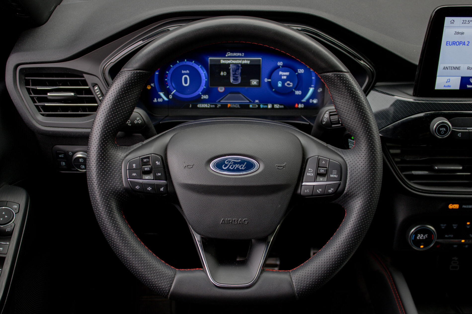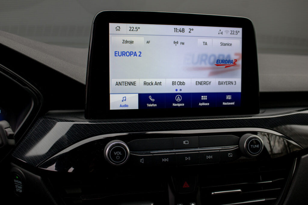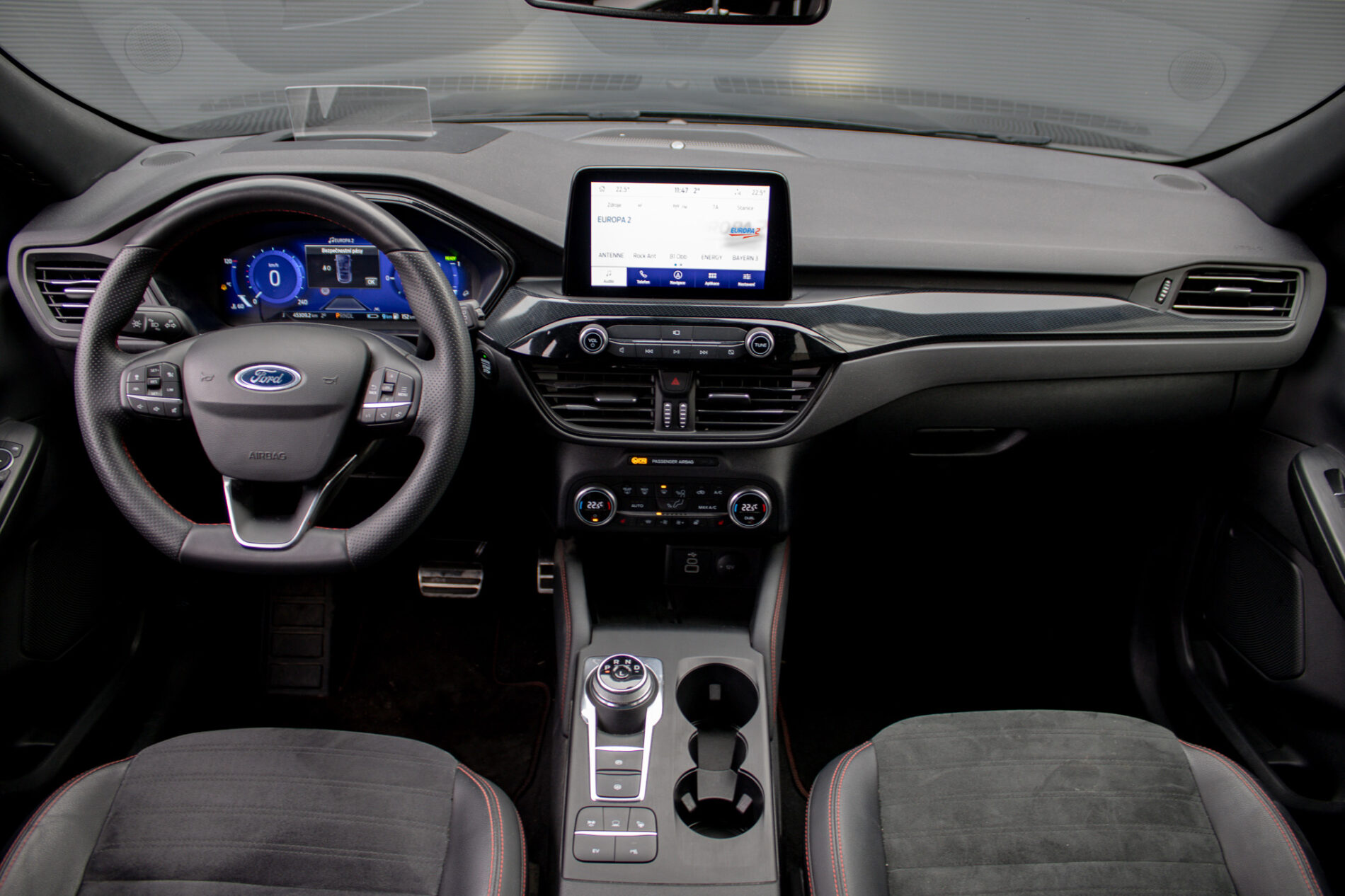 Ambientné LED osvetlenie interiéru, Audio systém B&O s 10 reproduktormi vrátane subwooferu, Automatická aktivácia bŕzd po náraze, Automatické stmievanie vnútorného spätného zrkadla + dažďový senzor, Bedrové opierky predných sedadiel, Elektricky nastaviteľné sedadlo vodiča 8-mi smermi vrátane bedrovej opierky, Elektricky ovládané predné a zadné okná, FordPass Connect - vzdialene ovládanie vozidla pomocou aplikácie v mobilnom telefóne - eCall - tlačidlo SOS pre automatické a vyžiadané núdzové volanie, Hliníkové športové pedále, LDW + LKA LDW - varovanie pred nemyselným opustením jazdného pruhu LKA - systém pre automatické navracanie do jazdného pruhu, LED hmlové svetlomety, LED zadné svetlá, Nabíjacie káble pre PHEV pre domáce nabíjanie 230 V - pre nábíjanie z wallboxov a vo verejných nabíjacích staniciach, Parkovacie senzory vpredu a vzadu, Signalizácia nezapnutého bezpečnostného pásu na všetkých sedadlách, TVC - systém stranového presmerovania krútiaceho momentu, Uzáver palivovej nádrže EasyFuel zabraňujúci natankovaniu nesprávneho paliva, Zadná lakťová opierka, Športové odpruženie, Športový predný nárazník ST-Line, Športový volant (pre AP s podvolantovým radením), Športový volant s červeným prešívaním