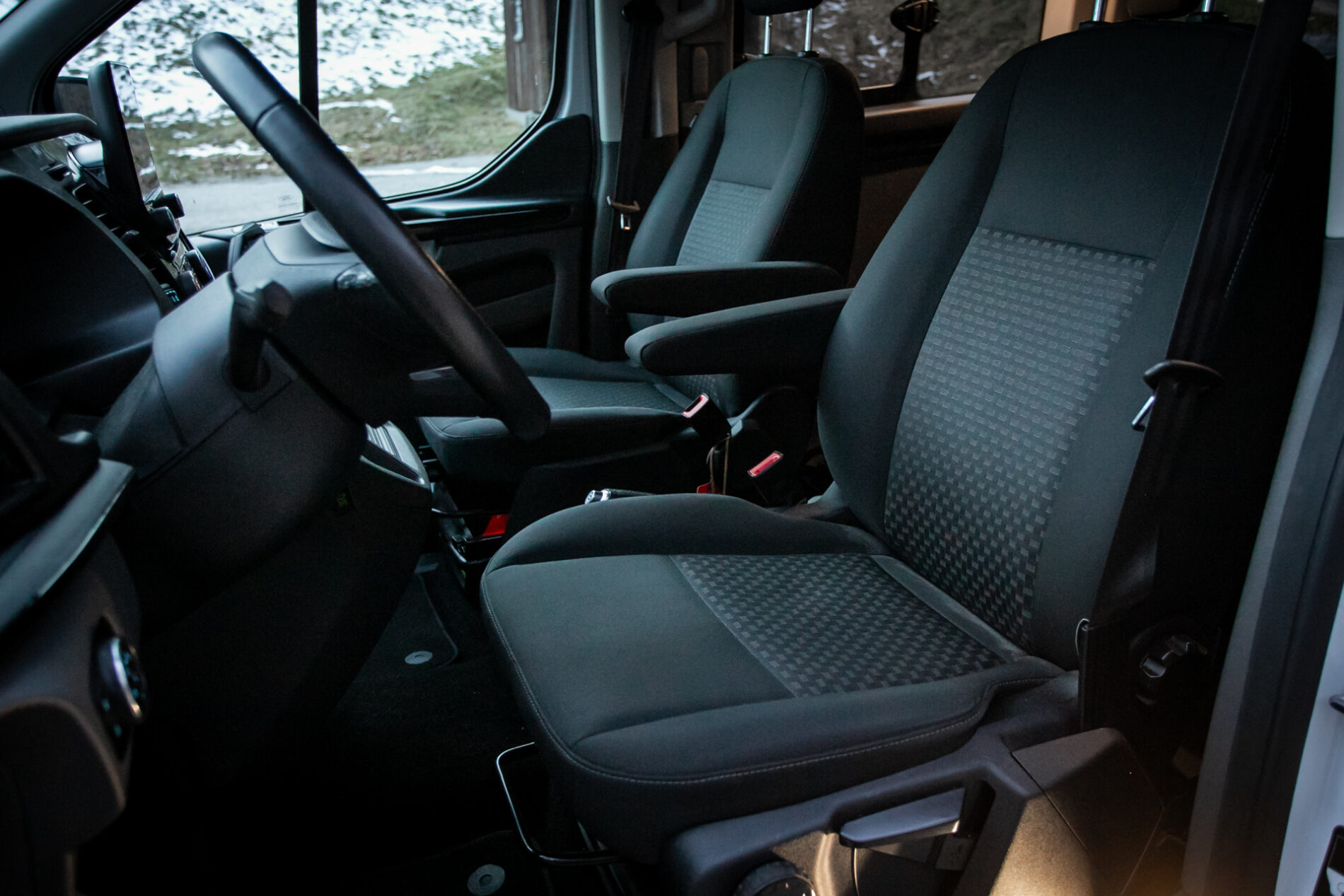 Bezpečnostné 3-bodové pásy na všetkých sedadlách zvuková signalizácia nezapnutého bezpečnostného pásu pre sedadlo vodiča, Bočné posuvné dvere nákladového priestoru na ľavej strane, Integrované tretie brzdové svetlo v zadných dverách nákladového priestoru, Osvetlenie nástupných schodíkov v kabíne vodiča