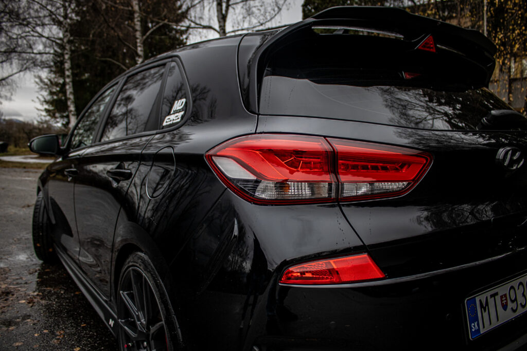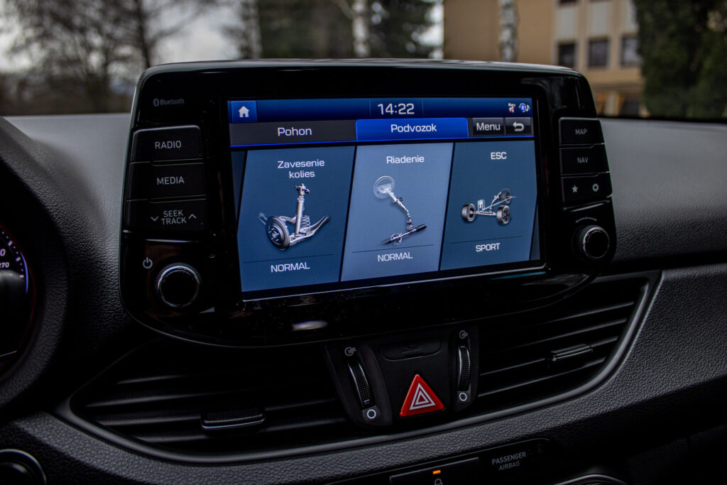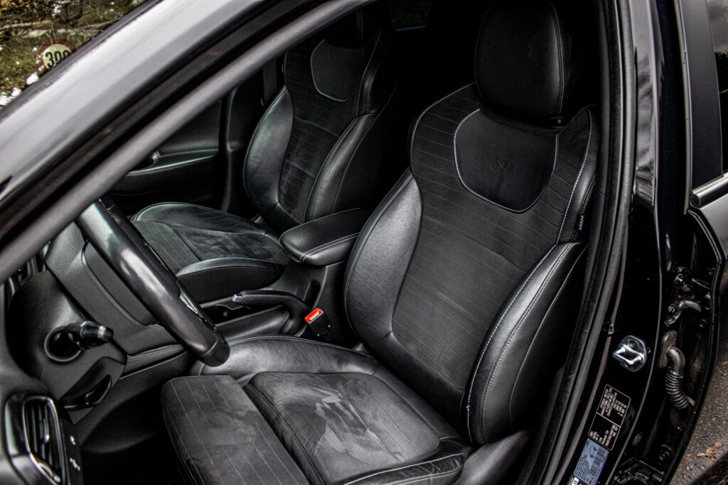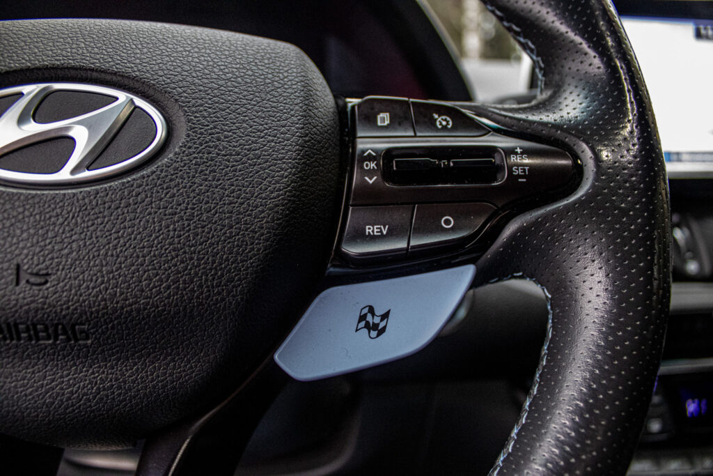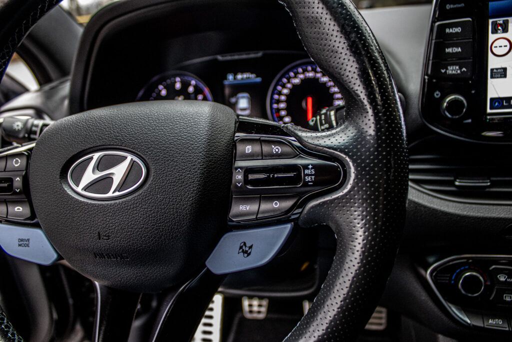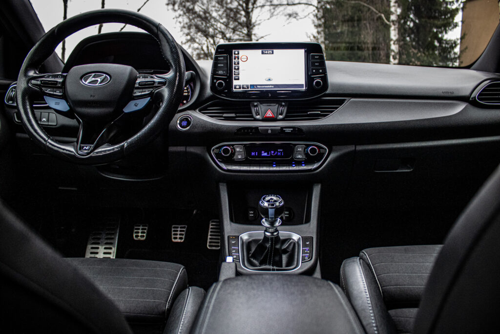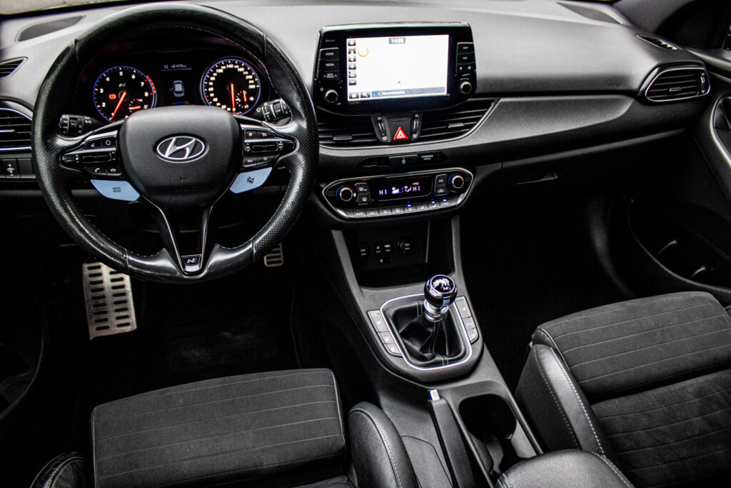 Asistent rozjazdu 'LAUNCH CONTROL', Automatické prepínanie diaľkových svetiel, Elektrický posilňovač riadenia R-MDPS, Kovové pedále a N hlavica radiacej páky prevodovky, N Palubný počítač s rozšírenými funkciami nastavenia motora a podvozku, N body kit - predná N maska s logom - predné svetlomety N dizajn - predný a zadný športový nárazník s červenou linkou - prahové nástavce lakované v čiernej farbe s logom N - zadné hmlové svetlo N dizajn - integrovaný športový spojler lakovaný v čiernej farbe - dvojitá koncovka výfuku po stranách, N športový volant čalúnený perforovanou kožou s ovládačmi režimu jazdy (Drive Mode/N Mode), Podvozok s adaptívnymi tlmičmi ECS, Výškovo a pozdĺžne nastaviteľný volant, Výškovo nastaviteľné sedadlo vodiča/spolujazdca/el. nastaviteľná bedrová opierka vodiča, Zadné sedadlá delené v pomere 3:2