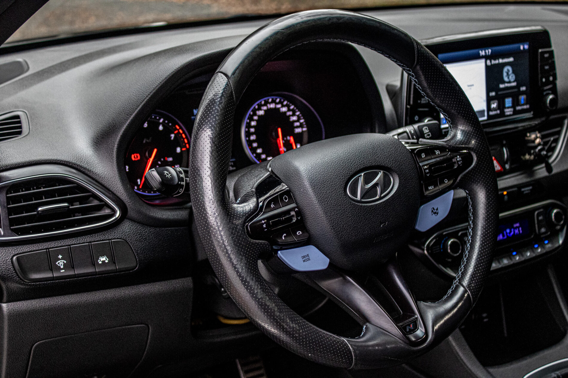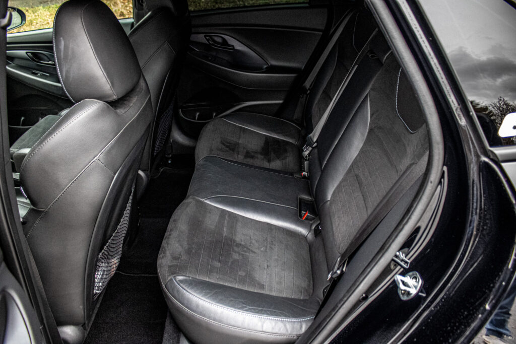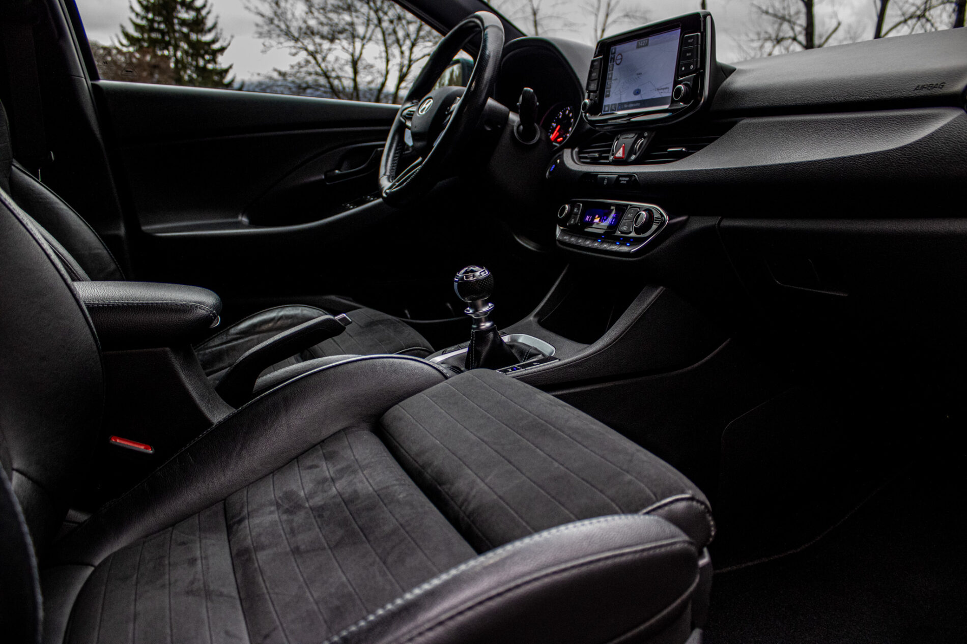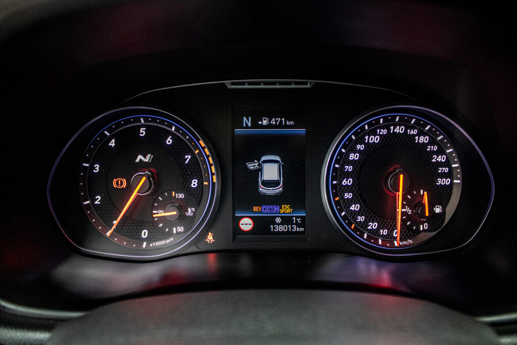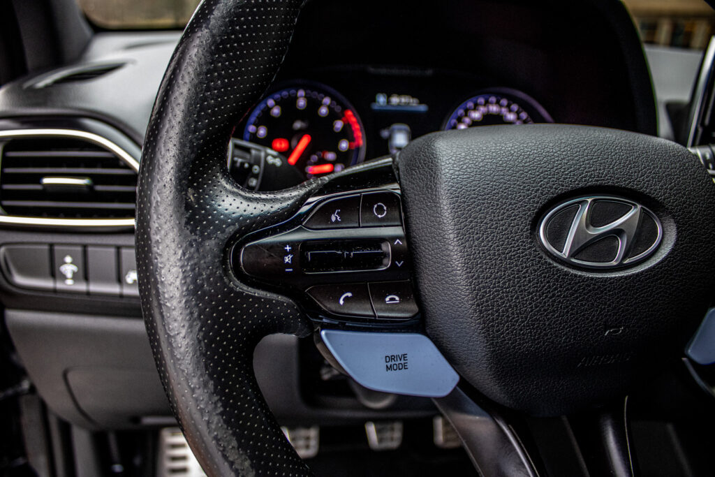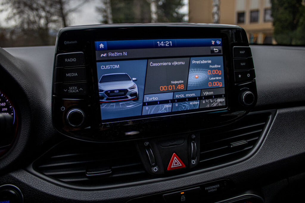 Asistent rozjazdu 'LAUNCH CONTROL', Automatické prepínanie diaľkových svetiel, Elektrický posilňovač riadenia R-MDPS, Kovové pedále a N hlavica radiacej páky prevodovky, N Palubný počítač s rozšírenými funkciami nastavenia motora a podvozku, N body kit - predná N maska s logom - predné svetlomety N dizajn - predný a zadný športový nárazník s červenou linkou - prahové nástavce lakované v čiernej farbe s logom N - zadné hmlové svetlo N dizajn - integrovaný športový spojler lakovaný v čiernej farbe - dvojitá koncovka výfuku po stranách, N športový volant čalúnený perforovanou kožou s ovládačmi režimu jazdy (Drive Mode/N Mode), Podvozok s adaptívnymi tlmičmi ECS, Výškovo a pozdĺžne nastaviteľný volant, Výškovo nastaviteľné sedadlo vodiča/spolujazdca/el. nastaviteľná bedrová opierka vodiča, Zadné sedadlá delené v pomere 3:2