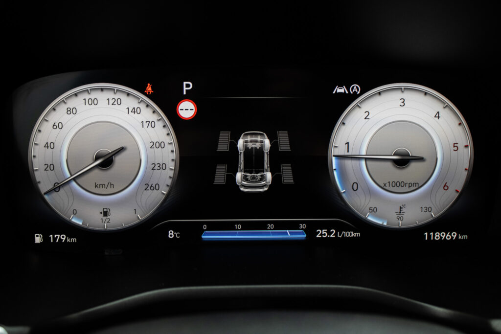 Alarm, EBD/EBV, Posilňovač riad., ABS, ESP(VDC), Brzdový asistent(BAS), Isofix, Deaktivácia airbagov, Natáčacie svetlomety, Systém kontroly tlaku v pneumatikách (TPMS), Asistent rozpoznávania dopravných značiek (ISLW/ISLA), Varovanie o vzdialenosti (BAS Plus), Systém rozpoznania únavy vodiča (DAW), Systém tiesňového volania (e-Call), Upozornenie premávky za vozidlom (RCTA), 360° kamera, Asistent diaľkových svetiel (HBA)