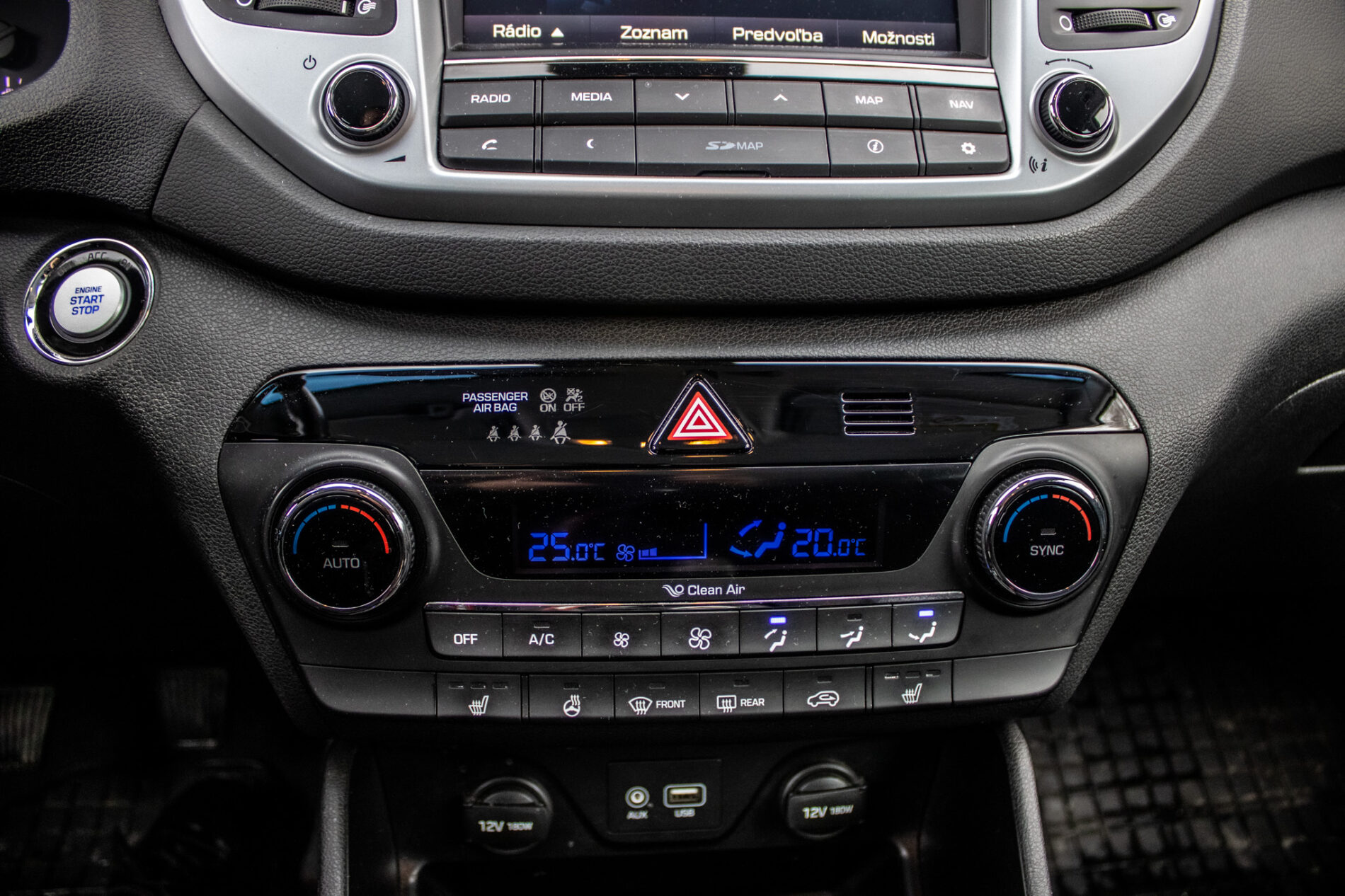 Centrálne uzamykanie, El. predné a zadné okná, El. zrkadlá, Automatická dvojzónová klimatizácia, Rádio, Vyhrievané predné sklo, Multifunkčný volant, Lakťová opierka, Bezkľúčové štartovanie, Klimatizovaná priehradka
