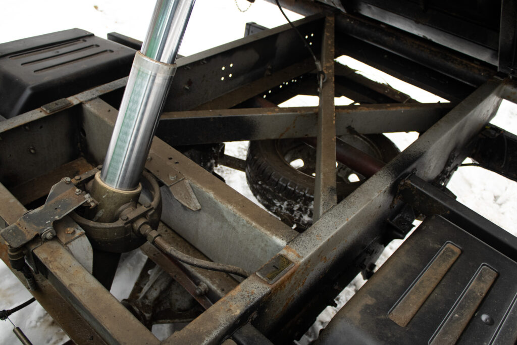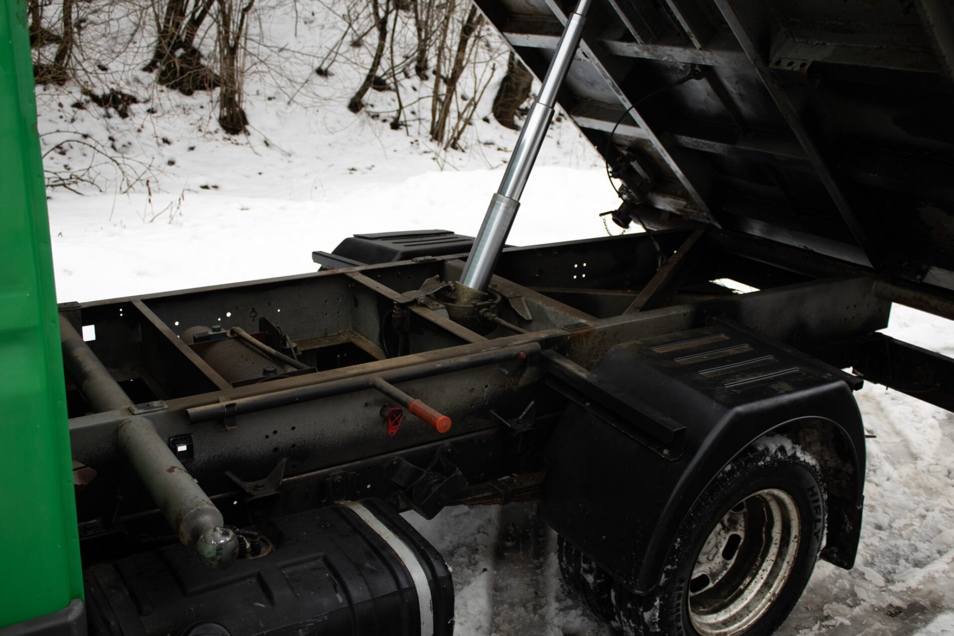 Motor je suchý, bez akýchkoľvek únikov kvapalín, má kultivovaný chod. Podvozok je pevný, nosné časti zdravé. Na korbe sa nachádza len minimálna korózia primeraná veku, nič čo by ovplyvňovalo funkčnosť alebo životnosť vozidla. Veľkým plusom je originálna trojstranná sklápačková nadstavba Scattolini priamo z výroby, nejde o žiadnu dodatočnú prerábku.