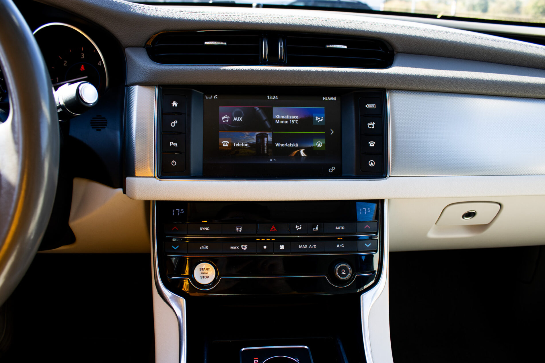 Sport mode, 8-stupňová automatická prevodovka so sekvenčným radením Jaguar Sequential Shift, Analógové združené prístroje s centrálnym TFT displejom, Elektrická parkovacia brzda, Jaguar Smart Key System - Keyless Start, Mriežka chladiča Grained Black s obložením Satin Chrome Pri objednaní H41F dodané ako G12U, Ostrekovače svetlometov Viazané s xenónovými svetlometmi, Predné svetlomety - Xenónové s LED lištou denného svietenia v tvare 'J' Vrátane automatického nastavenia dosahu Len s D17C, Volant v prevedení Softgrain koža - R-Sport Vrátane pádielok radenia na volante v prevedení Satin Chrome pre automat