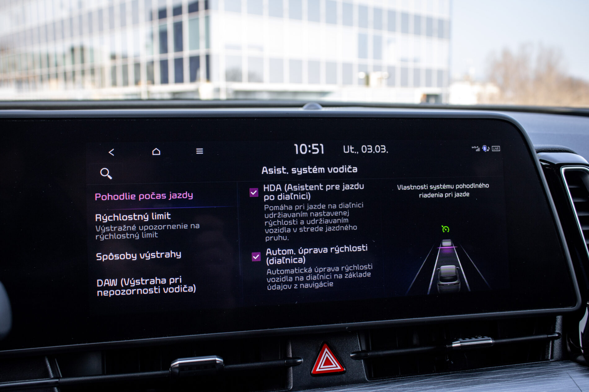Odo-pass, Asistent jazdných pruhov, Asistent rozjazdu do kopca