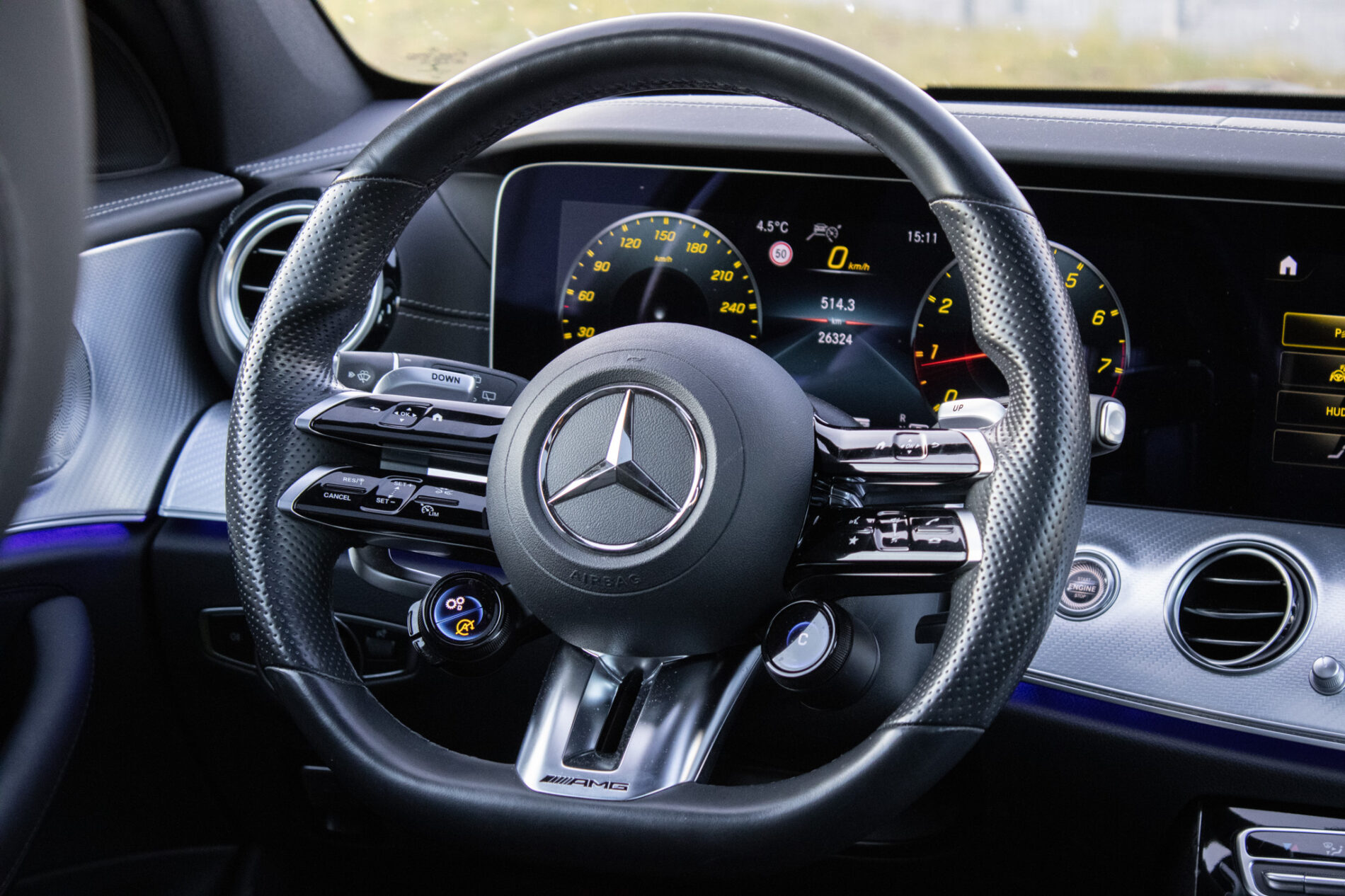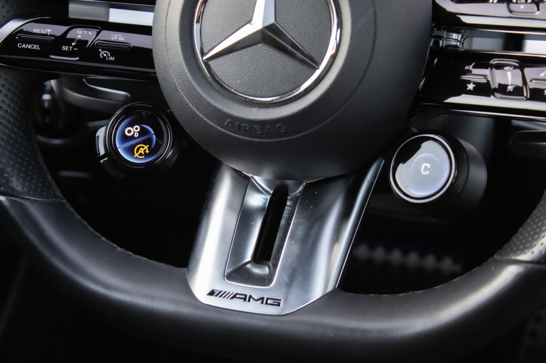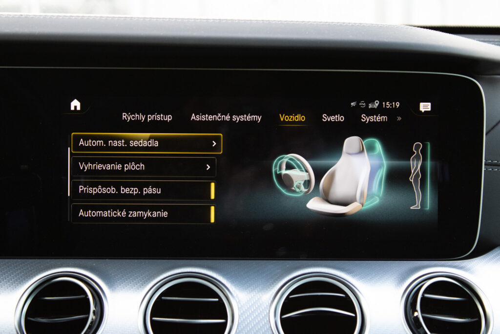 prémiový sound system BURMESTER, AMG DYNAMIC SELECT, Aktívny asistent brzdenia výstraha pred kolíziou vrátane situačnej podpory brzdenia a autonómneho brzdenia na zmiernenie alebo zabránenie kolízii, Volant AMG Performance v koži napa, Športový podvozok AMG RIDE CONTROL+