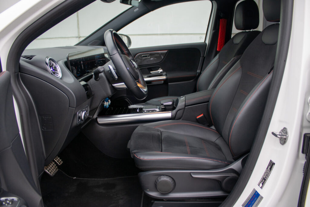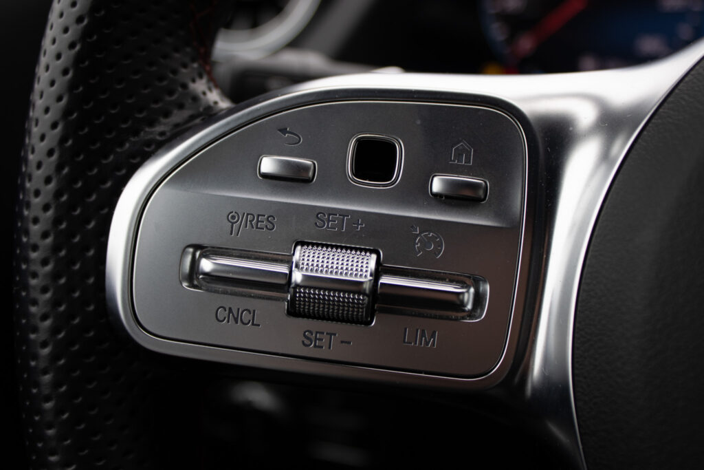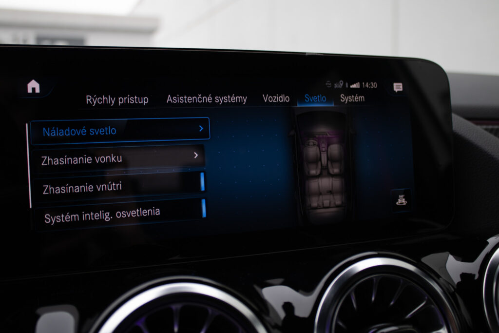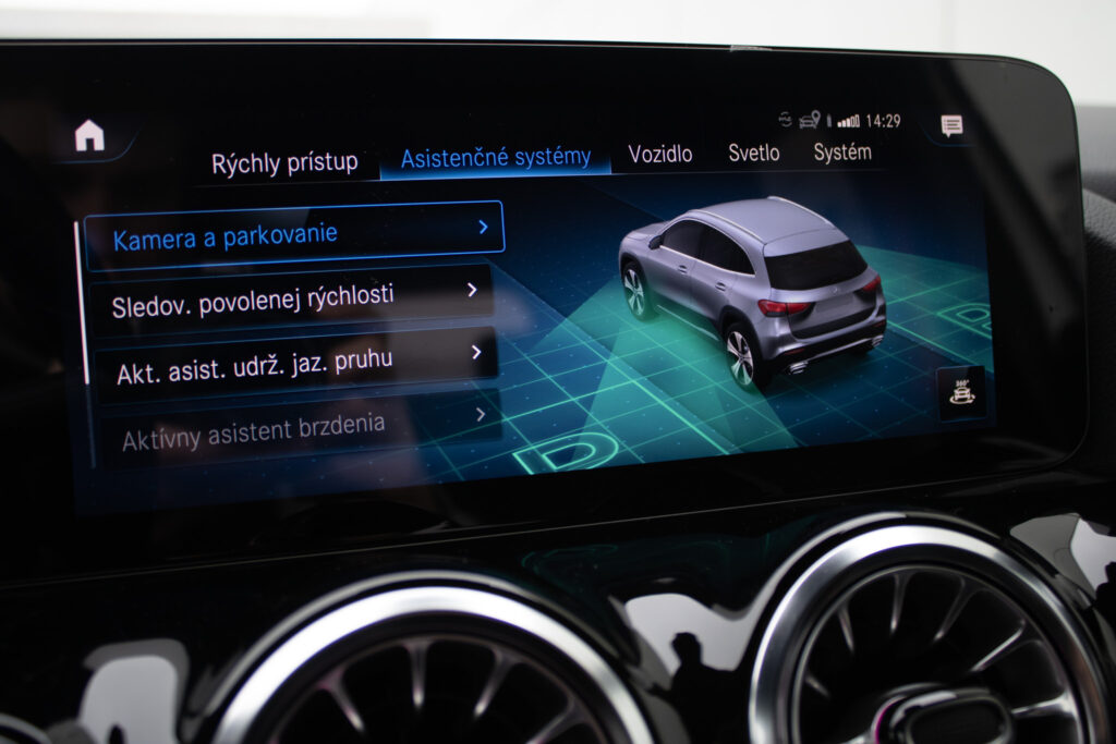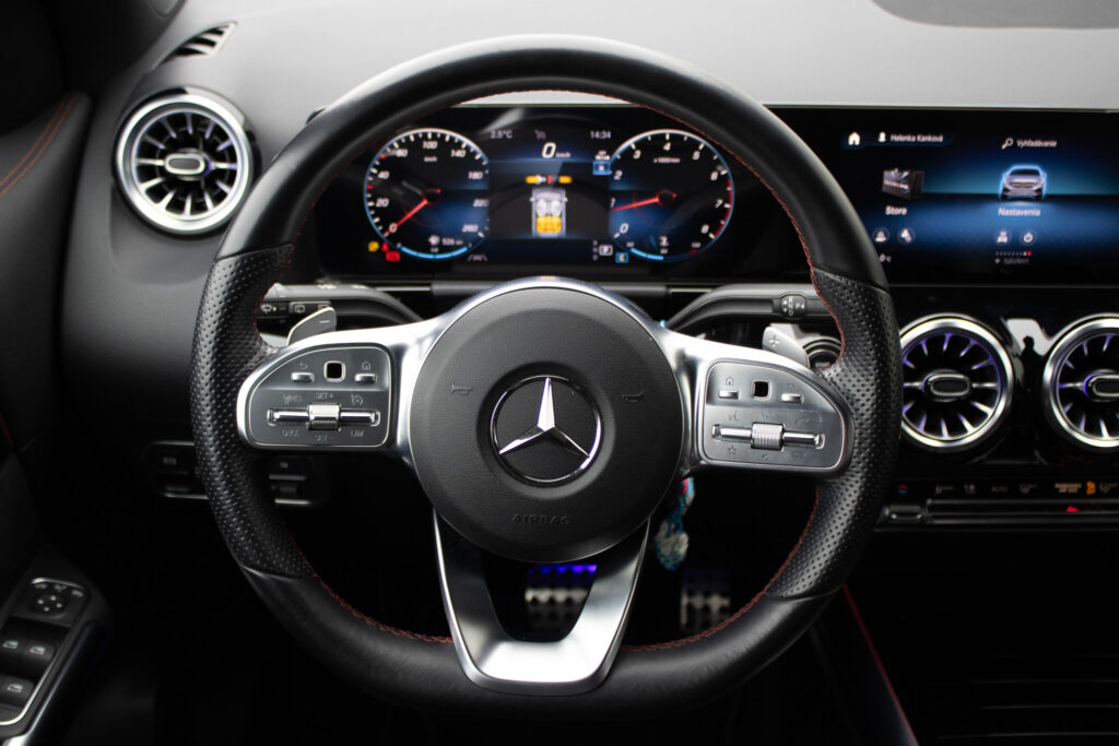 Adaptívny asistent diaľkového svetla plus, Aktívny asistent brzdenia, Aktívny asistent riadenia, Aktívny asistent sledovania povolenej rýchlosti, Aktívny asistent udržiavania jazdného pruhu, Aktívny asistent udržiavania odstupu DISTRONIC, Asistent sledovania povolenej rýchlosti, DYNAMIC SELECT, Halogénové svetlomety vrátane integrovaného denného osvetlenia s LED, Komfortné sedadlá, Lakťová opierka vzadu sklopná vrátane možnosti nakladania skrz a držiaka pohára. Lakťová opierka vzadu sa dá ľahko sklopiť a má držiak pohárov. Vyklopenie opierky navyše umožňuje nakladanie skrz v ložnom priestore, Multifunkčný športový volant v koži, Multifunkčný športový volant v koži napa, Predné sedadlá mechanicky nastaviteľné, Stierače čelného skla s dažďovým senzorom, Sériová výbava interiéru predné sedadlá mechanicky nastaviteľné (7U1) s čalúnením imitácia kože ARTICO/látka Tandel čierna; multifunkčný športový volant v koži (L3E) vrátane tlačidiel dotykového ovládania vľavo a vpravo; ozdobné prvky so vzhľadom uhlíkových vlákien (H59); čalúnenie stropu látka krištáľová sivá; ventilačné dýzy v čiernej; lakťová opierka v stredovej konzole pre vodiča a spolujazdca s integrovaným odkladacím priečinkom; lakťová opierka vzadu (400) s dvoma držiakmi pohárov; automatická deaktivácia air, Vonkajšie zrkadlá elektricky sklopné