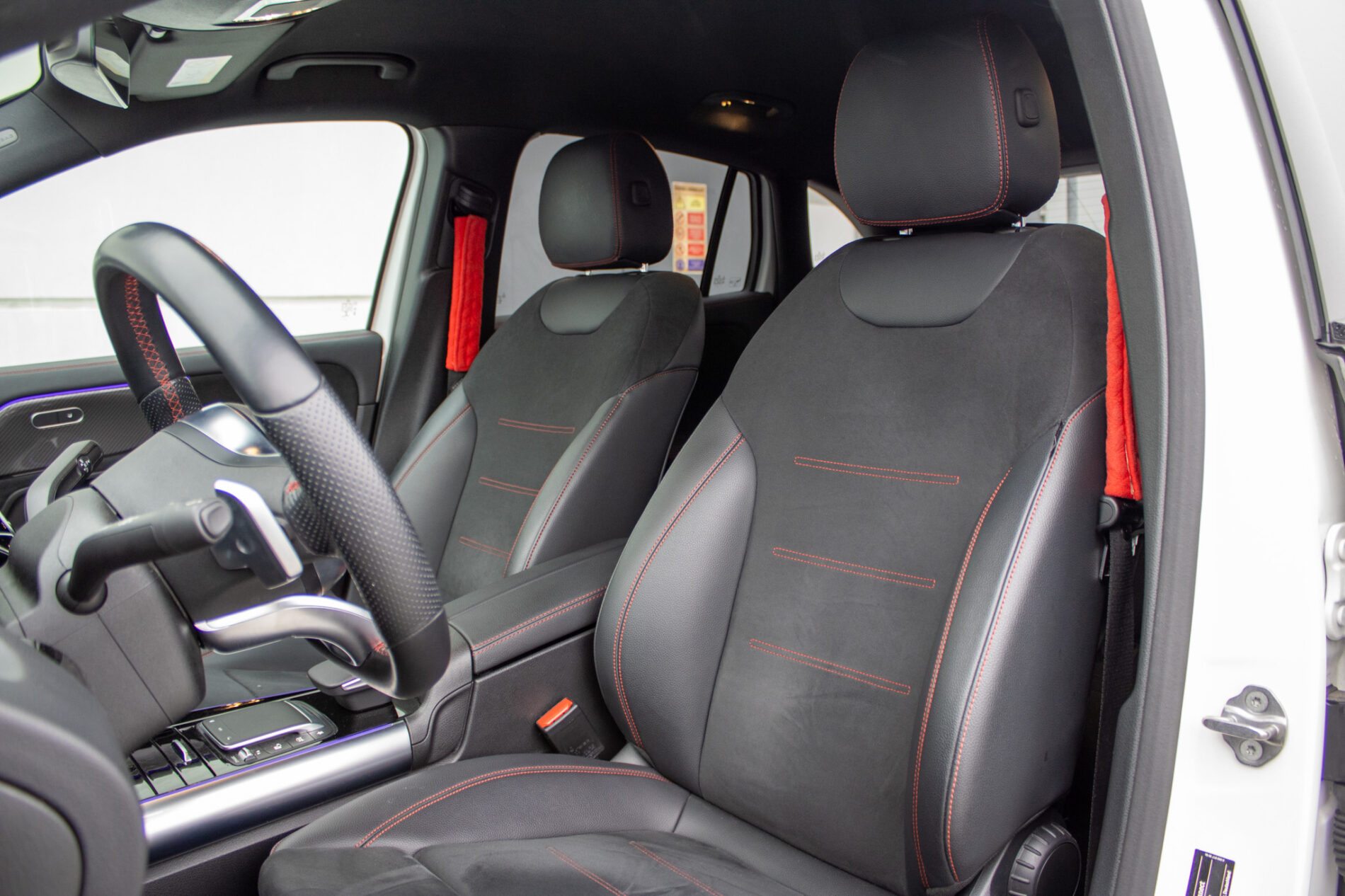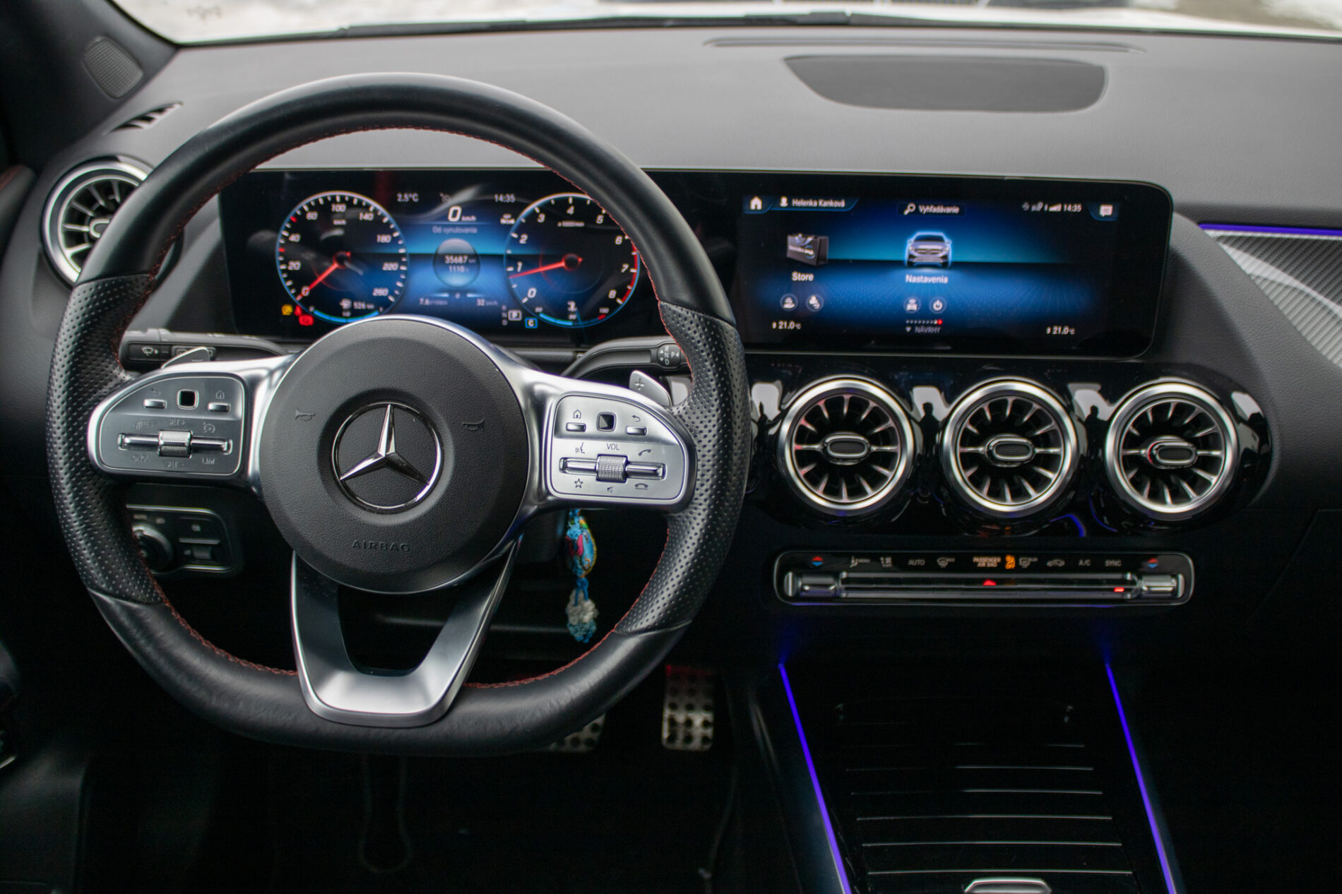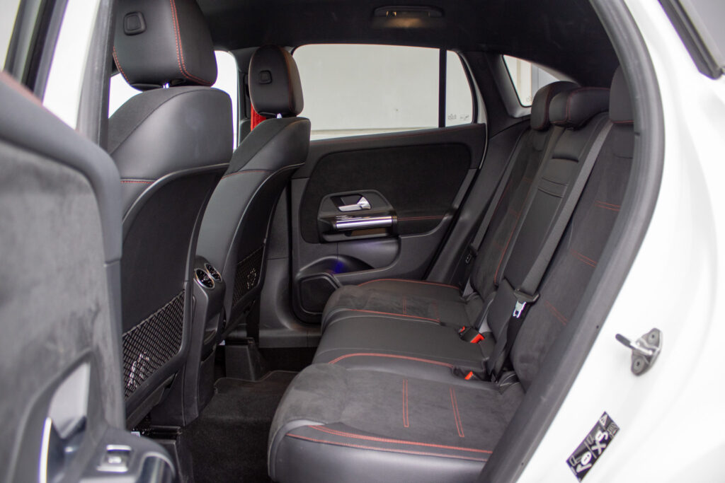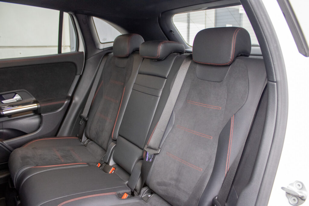 Adaptívny asistent diaľkového svetla plus, Aktívny asistent brzdenia, Aktívny asistent riadenia, Aktívny asistent sledovania povolenej rýchlosti, Aktívny asistent udržiavania jazdného pruhu, Aktívny asistent udržiavania odstupu DISTRONIC, Asistent sledovania povolenej rýchlosti, DYNAMIC SELECT, Halogénové svetlomety vrátane integrovaného denného osvetlenia s LED, Komfortné sedadlá, Lakťová opierka vzadu sklopná vrátane možnosti nakladania skrz a držiaka pohára. Lakťová opierka vzadu sa dá ľahko sklopiť a má držiak pohárov. Vyklopenie opierky navyše umožňuje nakladanie skrz v ložnom priestore, Multifunkčný športový volant v koži, Multifunkčný športový volant v koži napa, Predné sedadlá mechanicky nastaviteľné, Stierače čelného skla s dažďovým senzorom, Sériová výbava interiéru predné sedadlá mechanicky nastaviteľné (7U1) s čalúnením imitácia kože ARTICO/látka Tandel čierna; multifunkčný športový volant v koži (L3E) vrátane tlačidiel dotykového ovládania vľavo a vpravo; ozdobné prvky so vzhľadom uhlíkových vlákien (H59); čalúnenie stropu látka krištáľová sivá; ventilačné dýzy v čiernej; lakťová opierka v stredovej konzole pre vodiča a spolujazdca s integrovaným odkladacím priečinkom; lakťová opierka vzadu (400) s dvoma držiakmi pohárov; automatická deaktivácia air, Vonkajšie zrkadlá elektricky sklopné