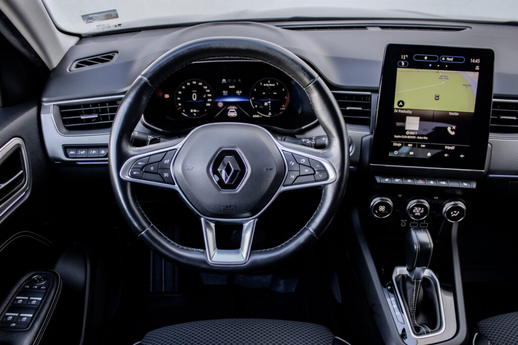 Renault Arkana 1.33 TCe 103 kW s rokom výroby 2023, vo verzii bez hybridného pohonu. Vozidlo je od 1. majiteľa, kúpené na Slovensku a je nebúrané. Arkana zaujme svojím moderným dizajnom a elegantnou čiernou farbou, ktorá dokonale ladí s čiernym polokoženým interiérom.