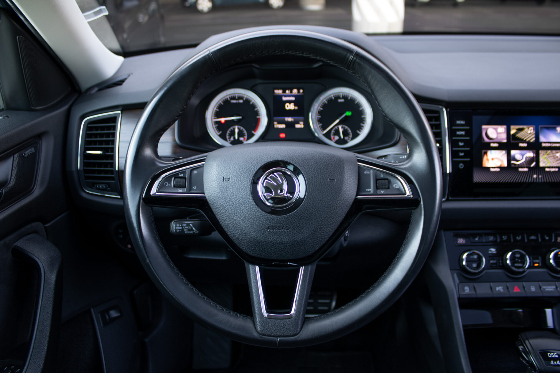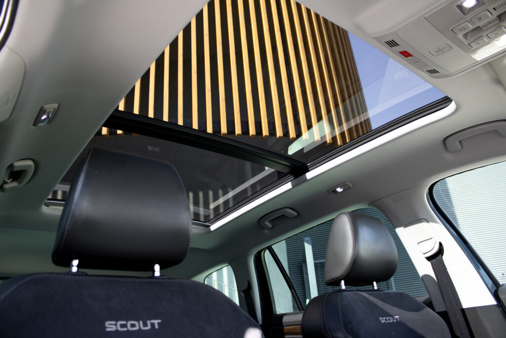 AUTO LIGHT ASSISTANT, Elektronická parkovacia brzda, FRONT ASSIST - výstraha pred kolíziou a podpora núdzového brzdenia PEDESTRIAN MONITOR (ochrana chodcov), FULL LED zadné svetlá, Farebný Maxi DOT - plnegrafický displej palubného počítača, Kryty pedálov z ušľachtilej ocele, LED zadné svetlomety - TOP variant, Lakťová opierka vpredu, Vnútorné spätné zrkadlo s automatickým stmievaním, Vonkajšie spätné zrkadlá s pamäťou a automatickým stmavovaním v striebornej farbe, Vyhrievané trysky ostrekovačov čelného skla, Špecifický dizajn nárazníkov SCOUT