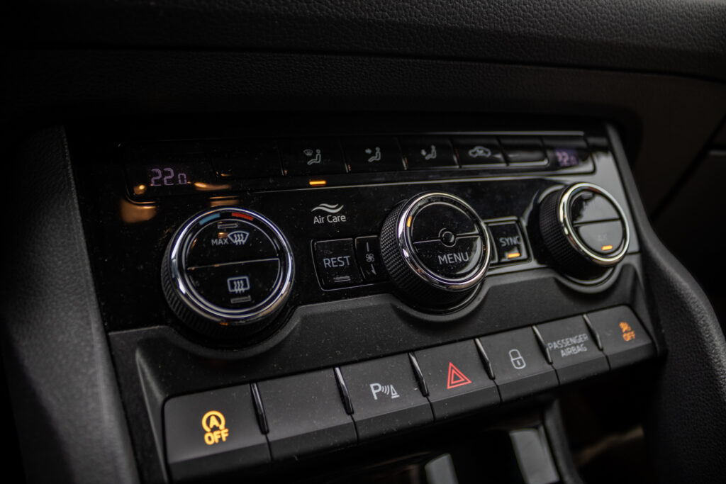Manuálna klimatizácia, Centrálne uzamykanie, El. predné a zadné okná, El. zrkadlá, Diaľkové ovládanie, Rádio, Vyhrievané predné sklo, Multifunkčný volant, Bezkľúčové štartovanie, Klimatizovaná priehradka, Apple CarPlay, Android Auto, Bezdrôtové nabíjanie pre smartphony