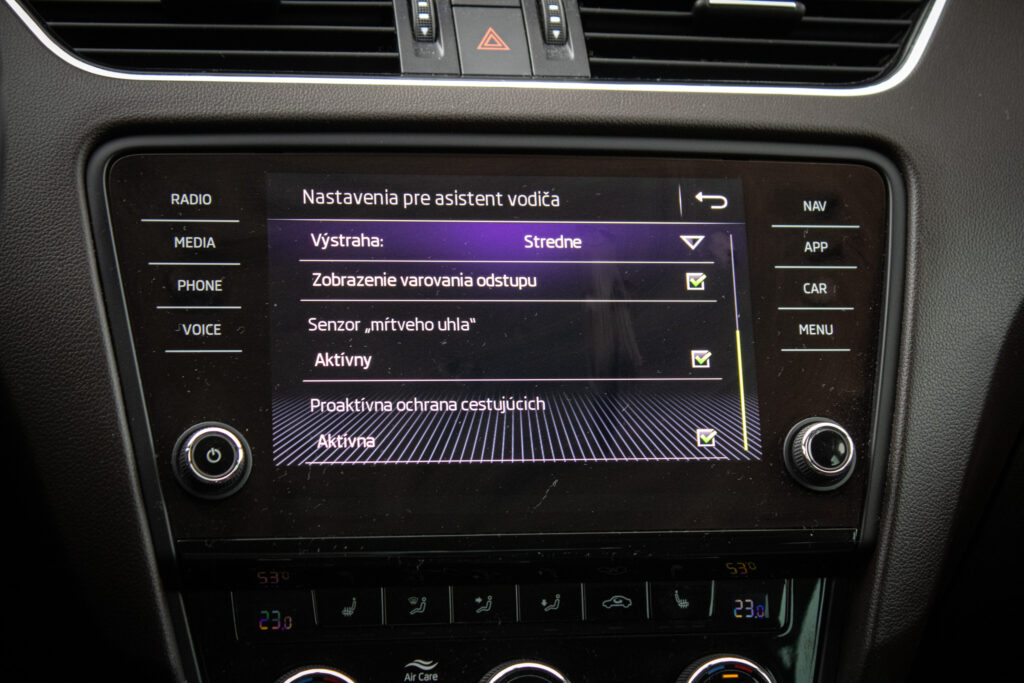 Alarm, EBD/EBV, ABS, ESP(VDC), ASR(TC,EDS), Isofix, Deaktivácia airbagov, Systém kontroly tlaku v pneumatikách (TPMS), Varovanie o vzdialenosti (BAS Plus), Systém rozpoznania únavy vodiča (DAW)