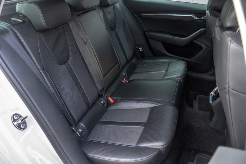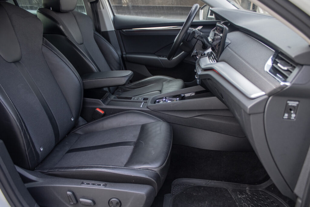 12 V zásuvka v batožinovom priestore, 2-ramenný vyhrievaný kožený multifunkčný volant s ovládaním na rádio a telefón ovládaním DSG prevodovky, 2x USB-C pre nabíjanie vzadu a 1x USB-C v držiaku spätného zrkadla, Bezdrôtový SMARTLINK+, Bi-LED Matrix predné svetlomety s AFS funkciou prisvecovania do zákrut a uvítacím efektom, Chrómovaná mriežka chladiča, Dáždnik vo dverách na strane vodiča, Elektricky nastaviteľné a vyhrievané a sklopné vonkajšie spätné zrkadlá s automatickým stmavovaním, Elektricky sklopné vonkajšie spätné zrkadlá s automatickým stmievaním na strane vodiča LIGHT AND RAIN ASSIST - dažďový a svetelný senzor a vnútorné spätné zrkadlo s automatickým stmievaním, Elektromechanická parkovacia brzda, LED predné hmlové svetlomety, LED zadné svetlomety - TOP variant s dynamickými ukazovateľmi smeru a uvítacím efektom, Lakťová opierka s odkladacou schránkou JUMBO BOX s výduchmi ventilácie pre cestujúcich vzadu, MAXIDOT - plnegrafický displej palubného počítača, Odkladacie schránky s Cargo elementmi v batožinovom priestore, Osvetlenie batožinového priestoru, Schránka pre okuliare, Signalizácia nezapnutého bezpečnostného pásu vodiča a spolujazdca, Vyhrievané dýzy ostrekovača čelného skla, Výškovo nastaviteľné sedadlo vodiča, Zadná lakťová opierka s otvorom na prepravu dlhých predmetov, Zadný stierač, Škrabka na ľad vo veku palivovej nádrže