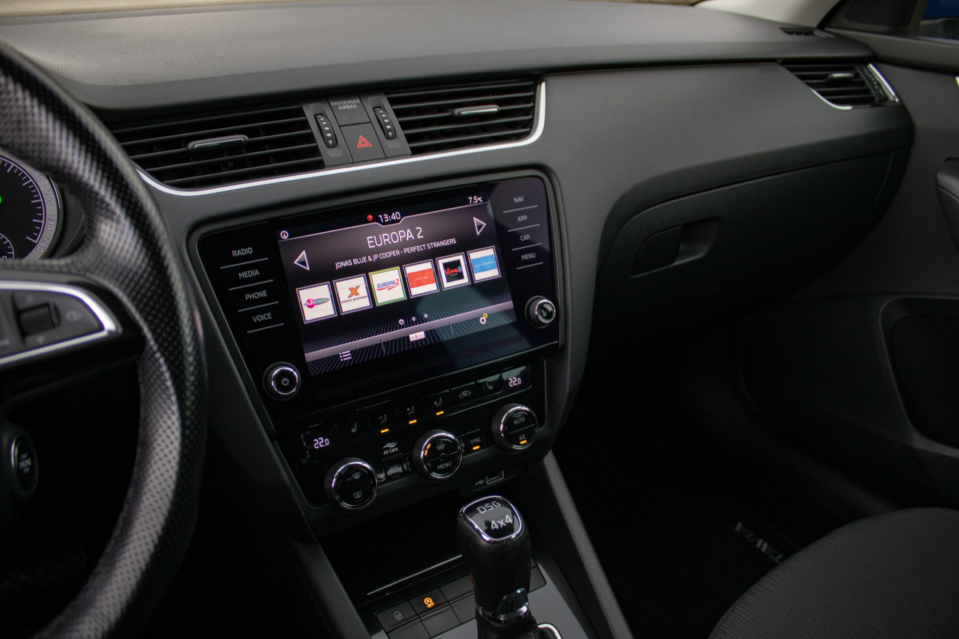 Audiosystém Amundsen, Cargo element v batožinovom priestore, Chrómová lišta v prednom nárazníku, FRONT ASSIST výstraha pred kolíziou a podpora núdzového brzdenia, JUMBO BOX s nastaviteľnou lak ovou opierkou vpredu, LED lampa v batožinovom priestore, Mreža chladiča čierna lesklá, Odistenie operadiel zadných sedadiel z batožinového priestoru, Schránka na okuliare, Signalizácia nezpnutia bezpečnostného pásu vodiča a spolujazdca a troch miest vzadu, TOP LED zadné svetlá, Trojramenný športový kožený multifunkčný volant pre ovládanie rádia a telefónu, Vnútorné spätné zrkadlo s automatickým stmavovaním, Vnútorné spätné zrkadlo so senzorom vlhkosti, Vonkajšie spätné zrkadlá a kľučky dverí lakované vo farbe karosérie, Vyhrievané trysky ostrekovačouv predného skla, Výškovo nastaviteľné predné sedadlá s bedrovými opierkami, Výškovo nastaviteľné sedadlo vodiča, Zásuvka na 230 V a 2 USB vzadu, Športový multifunkčný kožený volant