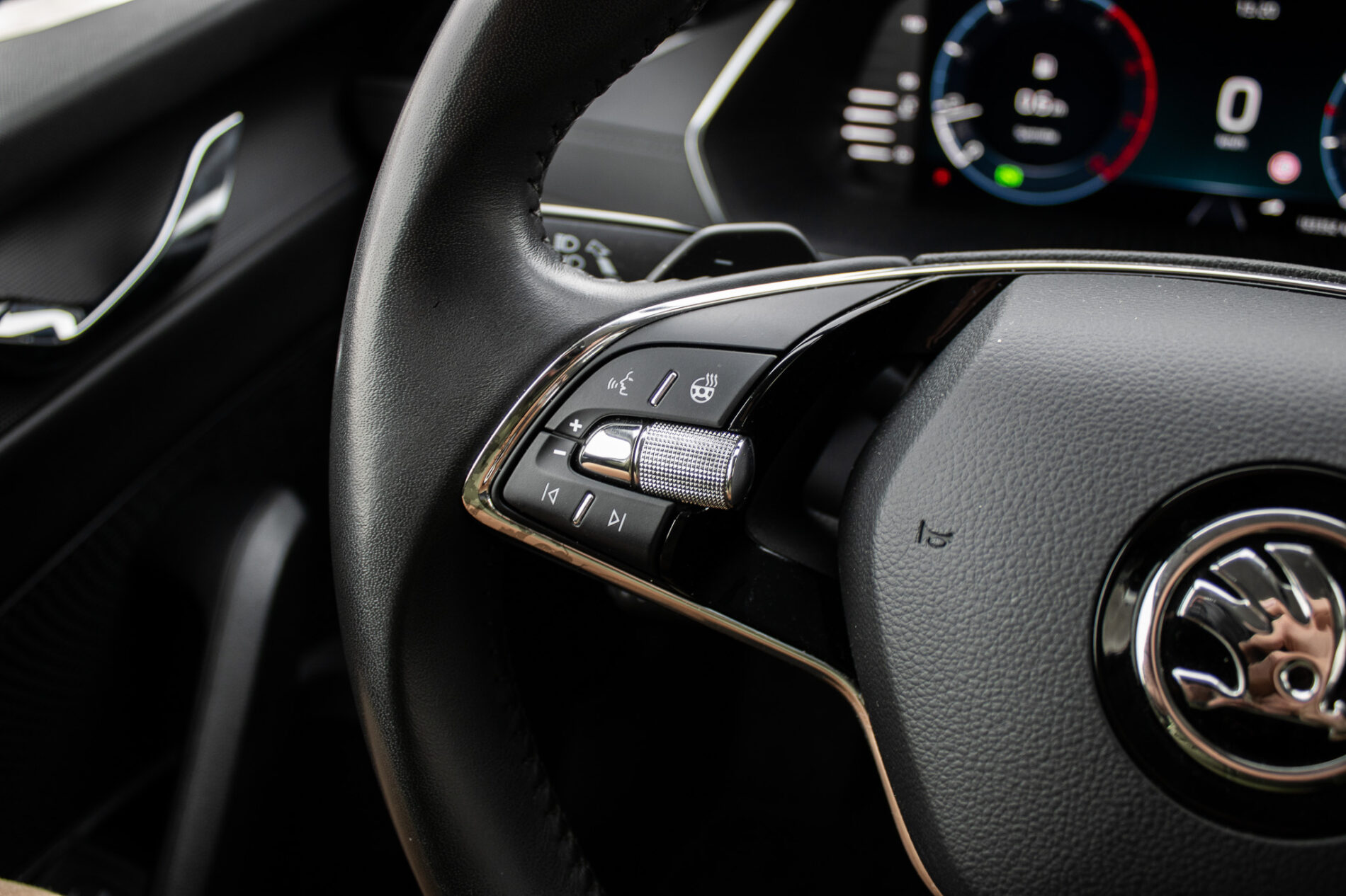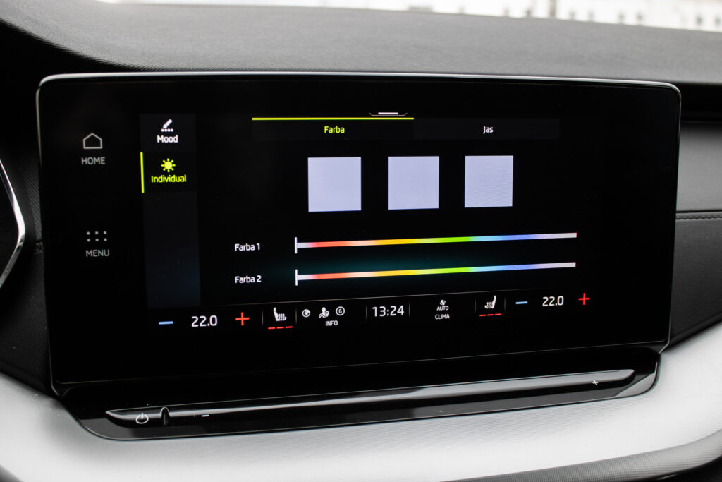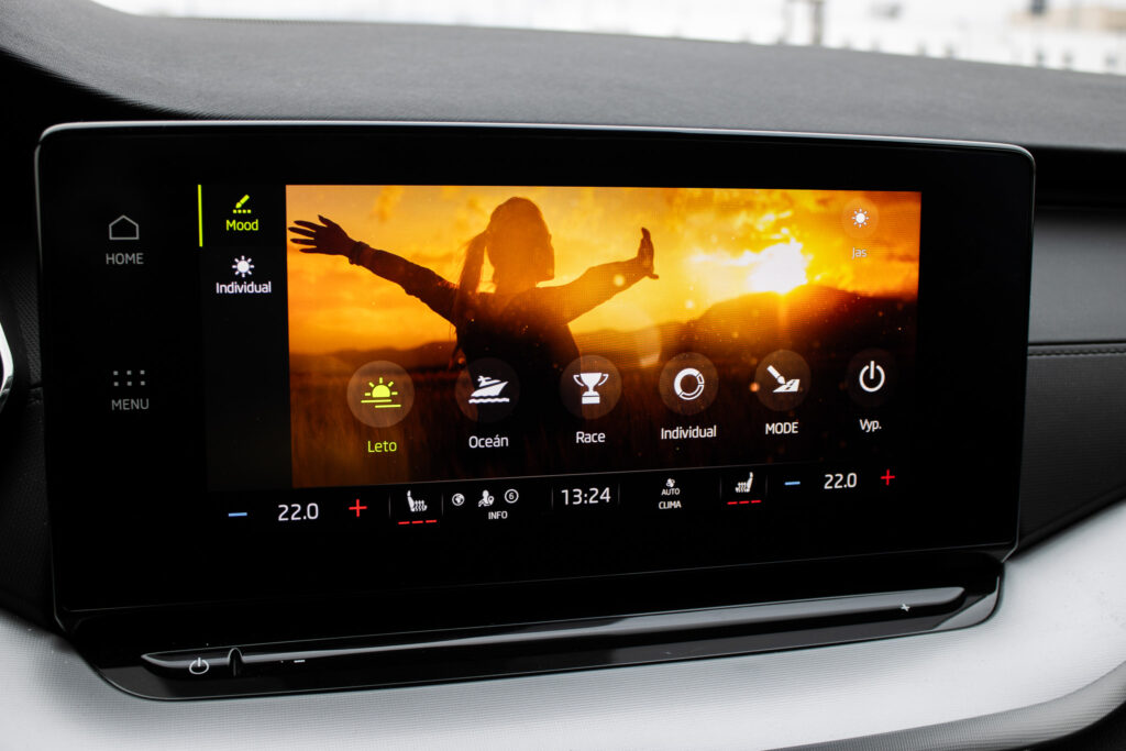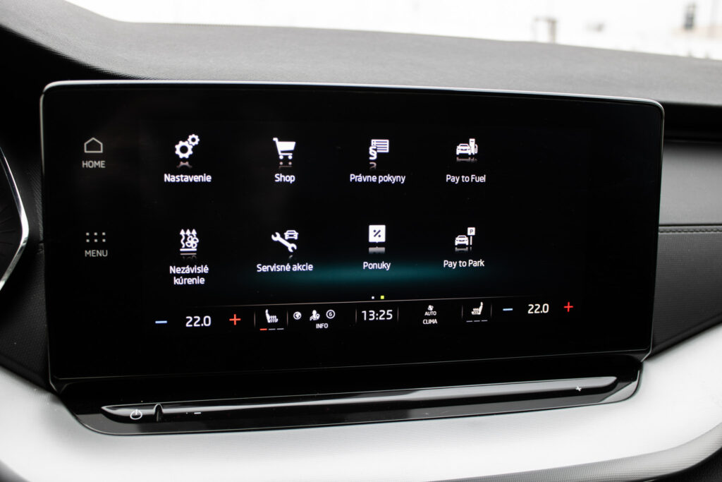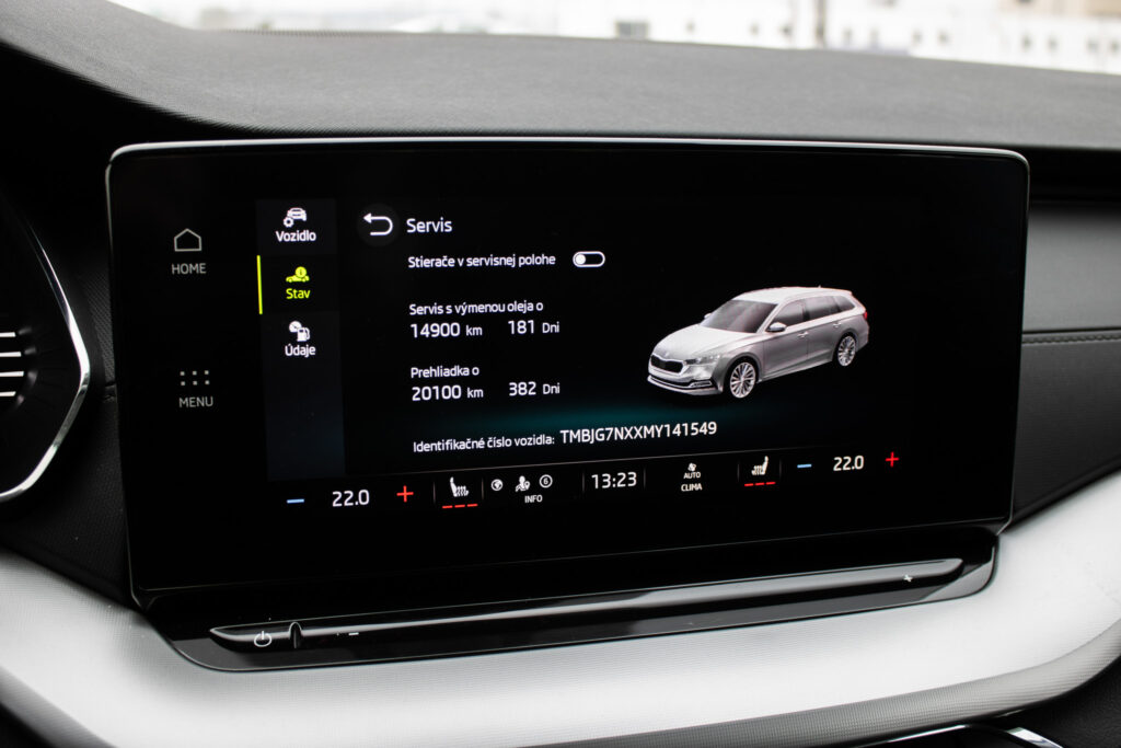 anténa v tvare žraločej plutvy, spätné zrkadlá a kľučky dverí lakované vo farbe karosérie, ostrekovače svetlometov, zadný spojler, full LED svetlomety, voľba jazdných režimov (Eco, Normal, Sport, Individual), elektricky nastaviteľné, sklopné a vyhrievané spätné zrkadlá, vyhrievané zadné sklo, kožený volant, držiaky na poháre, elektronická parkovacia brzda s funkciou auto-hold, masážne predné sedadlá, nezávislé kúrenie, virtuálny kokpit, farebné ambientné osvetlenie, parkovací asistent, výškovo nastaviteľné sedadlo vodiča a spolujazdca, keyless advanced, Rádio/Navigácia - Columbus, SIMPLY CLEVER Paket