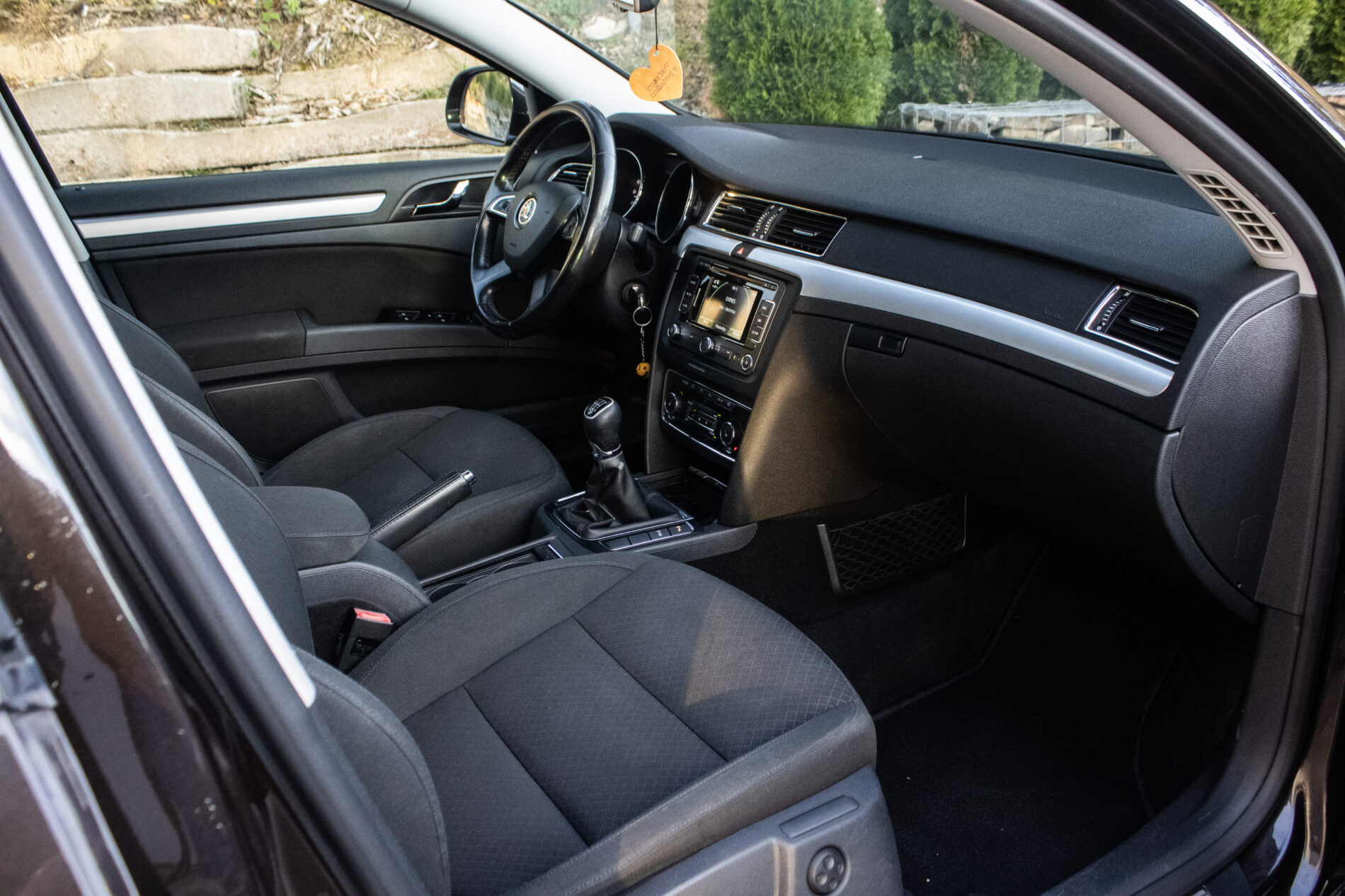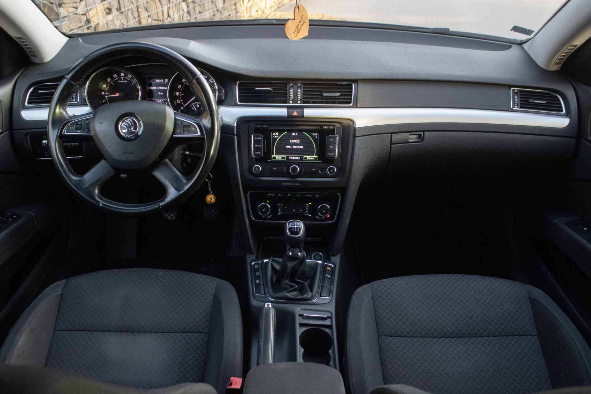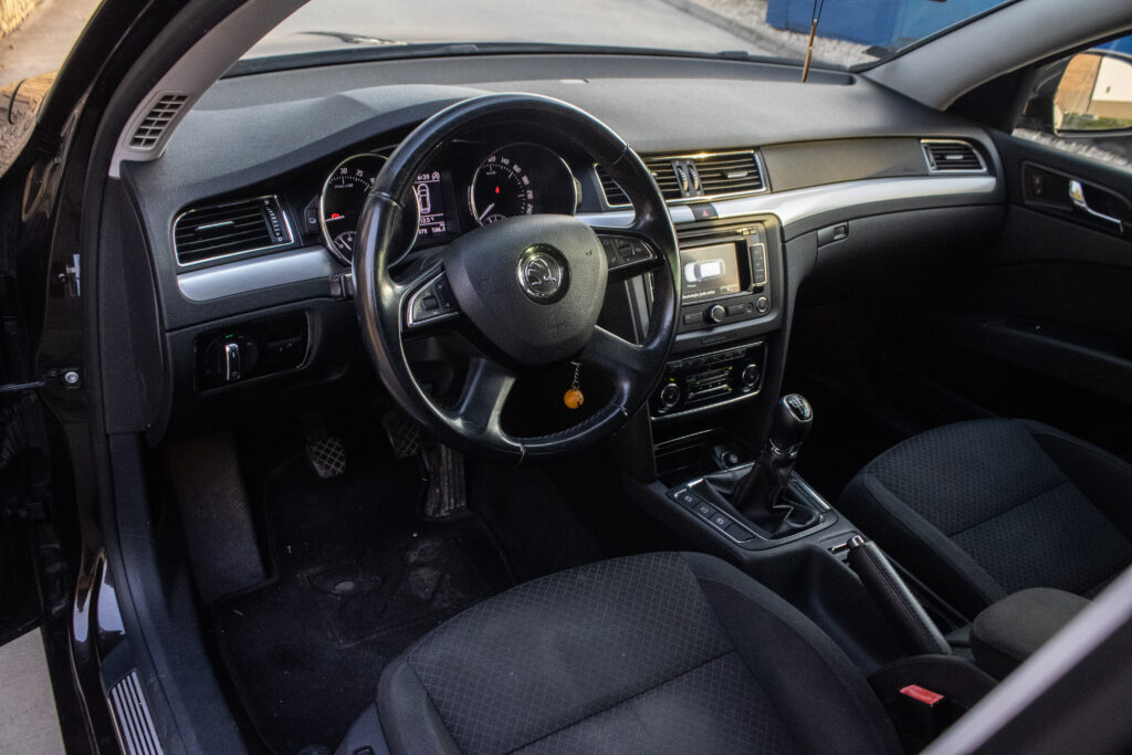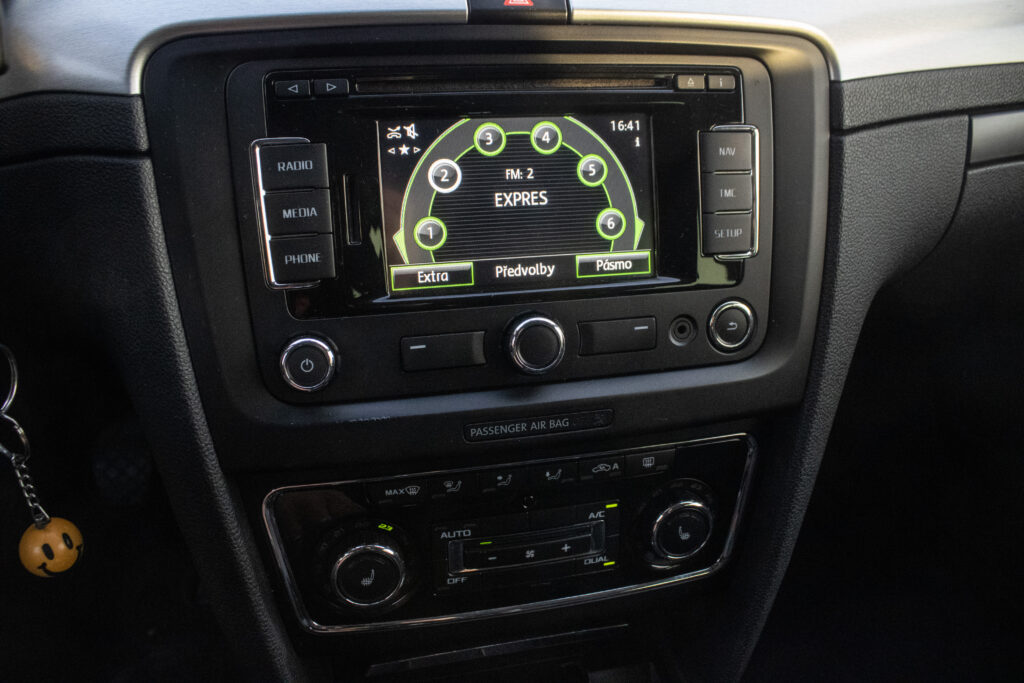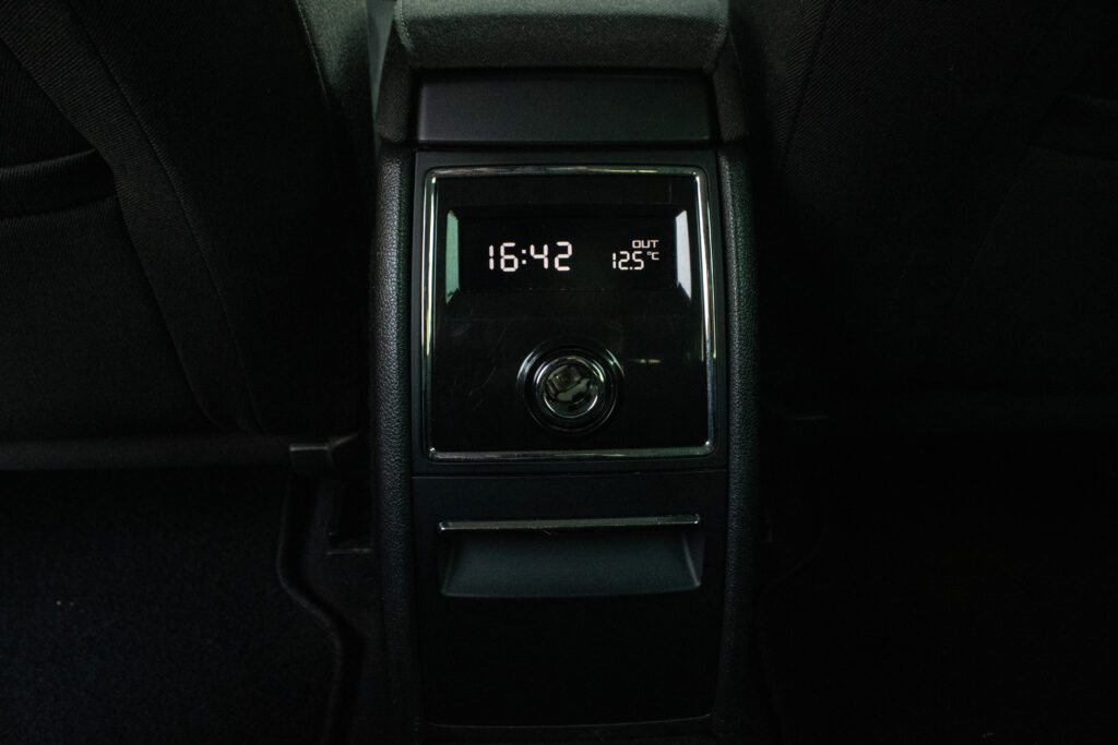 manuálna ručná brzda, držiaky na poháre, vyhrievané zadné sklo, jumbo-box s lakťovou opierkou, vrátane ukazovateľa času a vonkajšej teploty vzadu, kožený volant