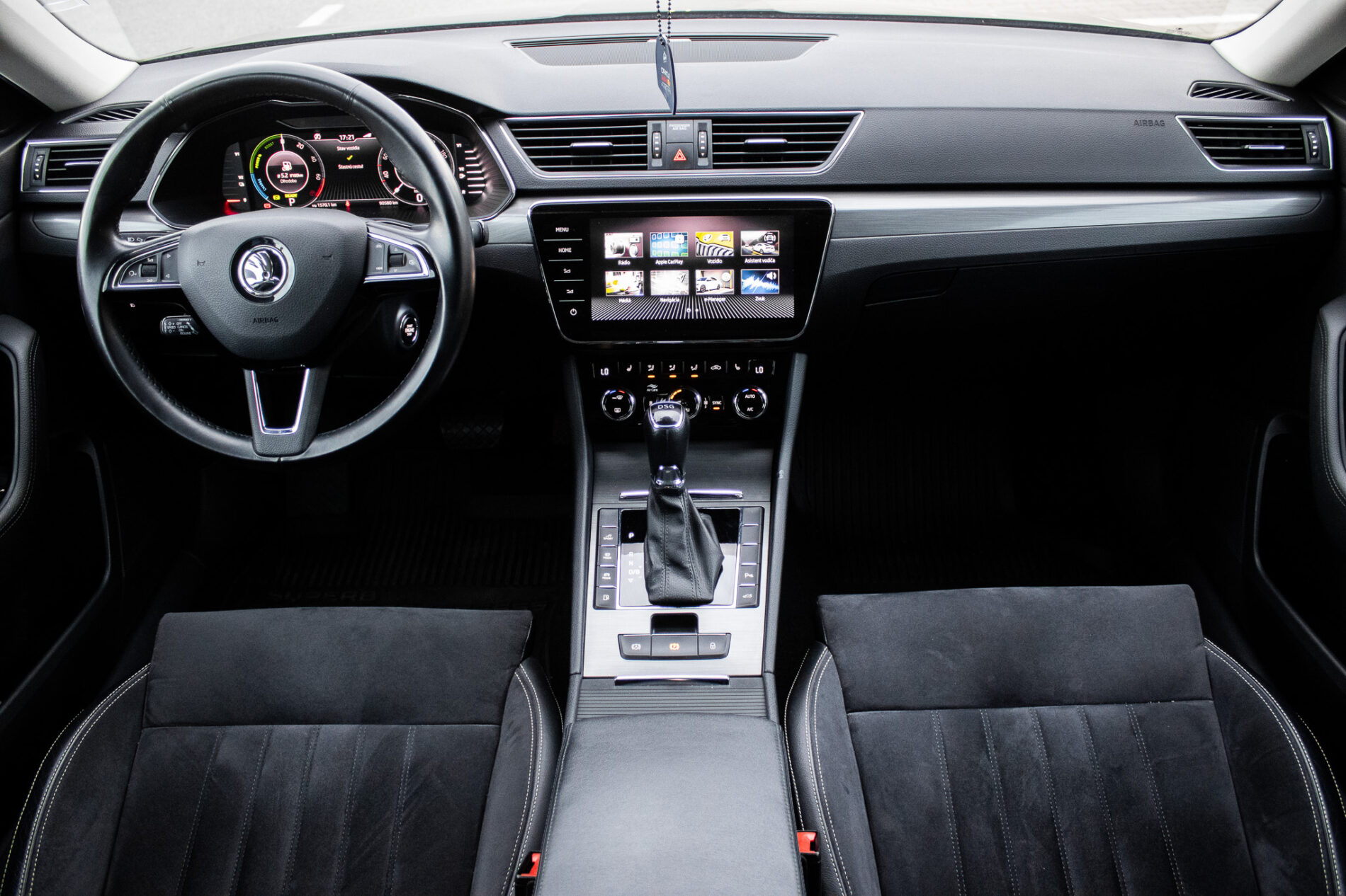 Centrálne uzamykanie, El. predné a zadné okná, El. nastaviteľné sedadlá, El. zrkadlá, Diaľkové ovládanie, Rádio, Nezávislé kúrenie, Multifunkčný volant, Lakťová opierka, Bezkľúčové štartovanie, Vonkajší teplomer, Klimatizovaná priehradka, Ostrekovače svetlometov, Automatická trojzónová klíma, Apple CarPlay, Android Auto, Welcome light, Virtuálny kokpit, Radenie pod volantom