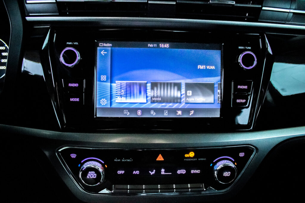 Automatická klimatizácia, Centrálne uzamykanie, El. predné a zadné okná, Rádio, Vyhrievané predné sklo, Multifunkčný volant, Lakťová opierka, Klimatizovaná priehradka, Apple CarPlay, Android Auto, Welcome light