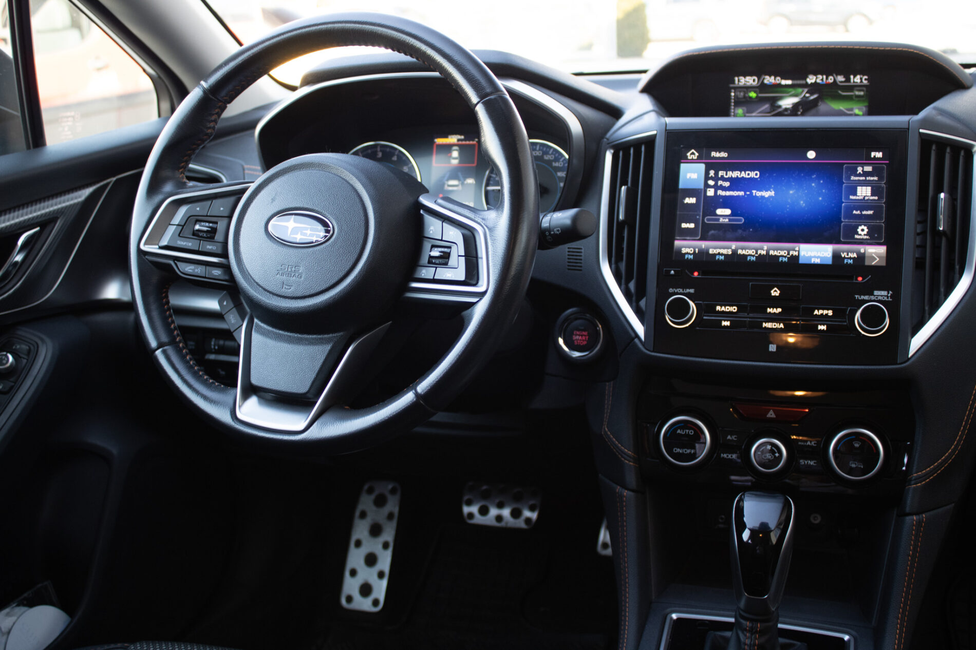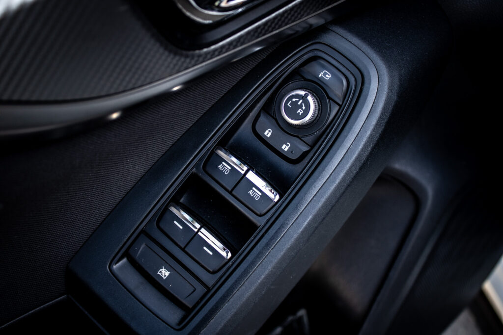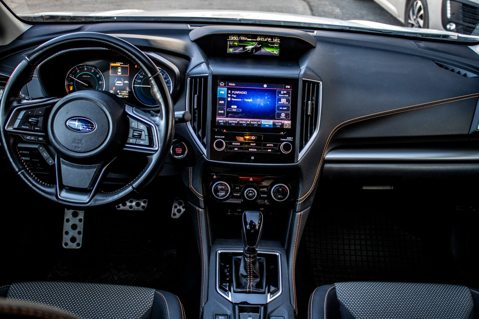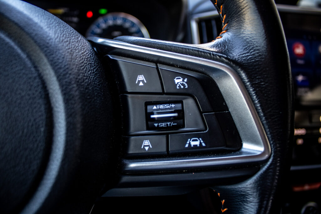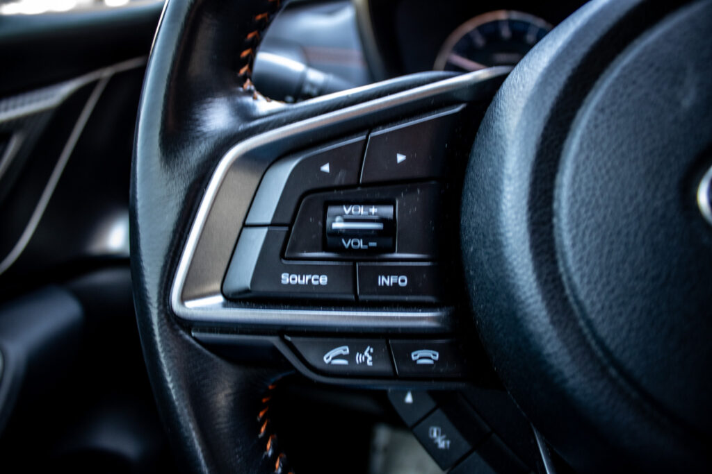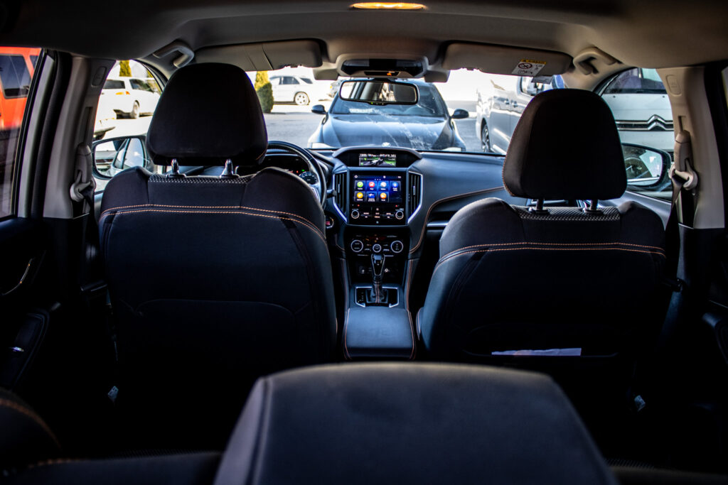 Asistent riadenia jazdy z kopca, Asistenčný systém pre vodiča EyeSight, Automatické stierače čelného skla s dažďovým senzorom, Držiaky nápojov v stredovej konzole, Držiaky nápojov vo všetkých dverách kabíny, Full-Kožený volant a hlavica radiacej páky s kontrastným oranžovým prešívaním, Ovládanie audiosystému na volante, Sklopné operadlá zadných sedadiel delené v pomere 60 : 40, Ukotvenie detských sedačiek ISOFIX (s upevňovacími popruhmi), Vonkajšie spätné zrkadlá elektricky sklápateľné, Vyhrievanie zadného skla s časovým spínačom, Výškovo aj pozdĺžne nastaviteľný stĺpik volantu