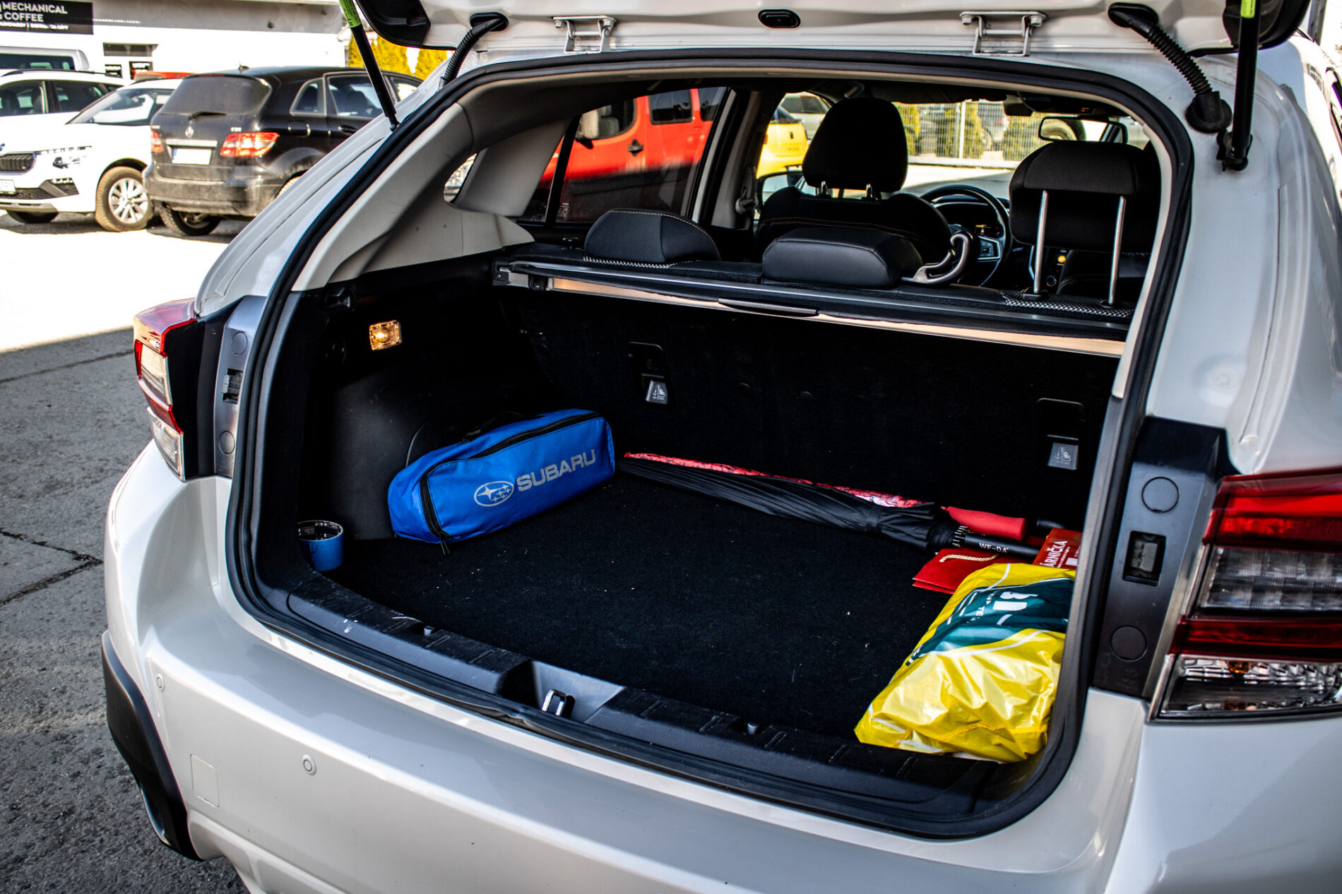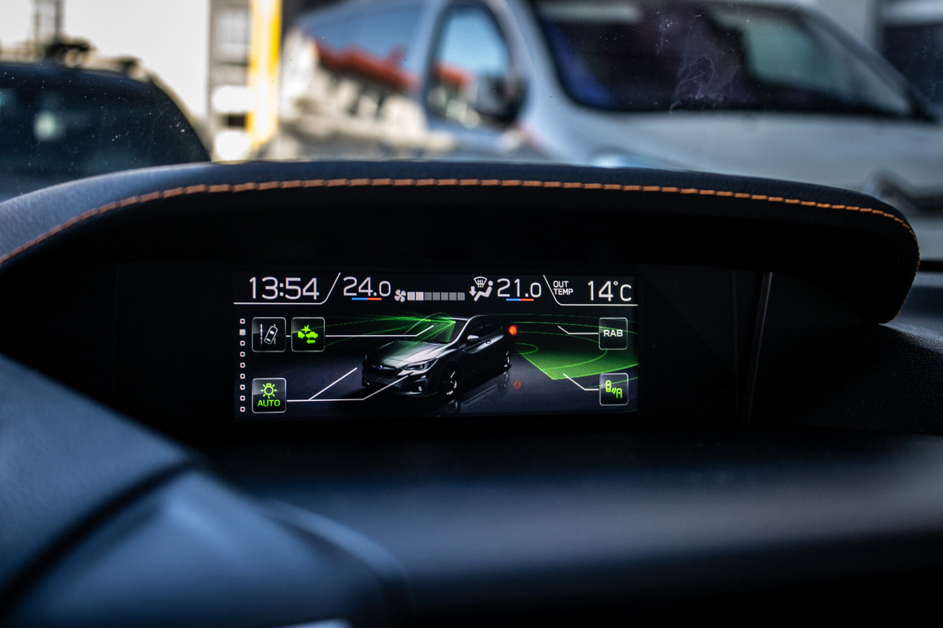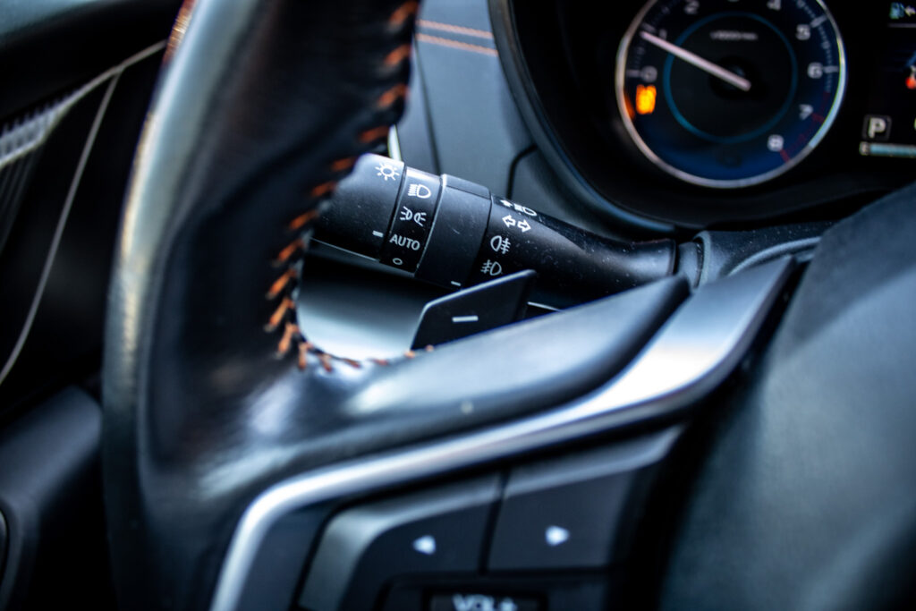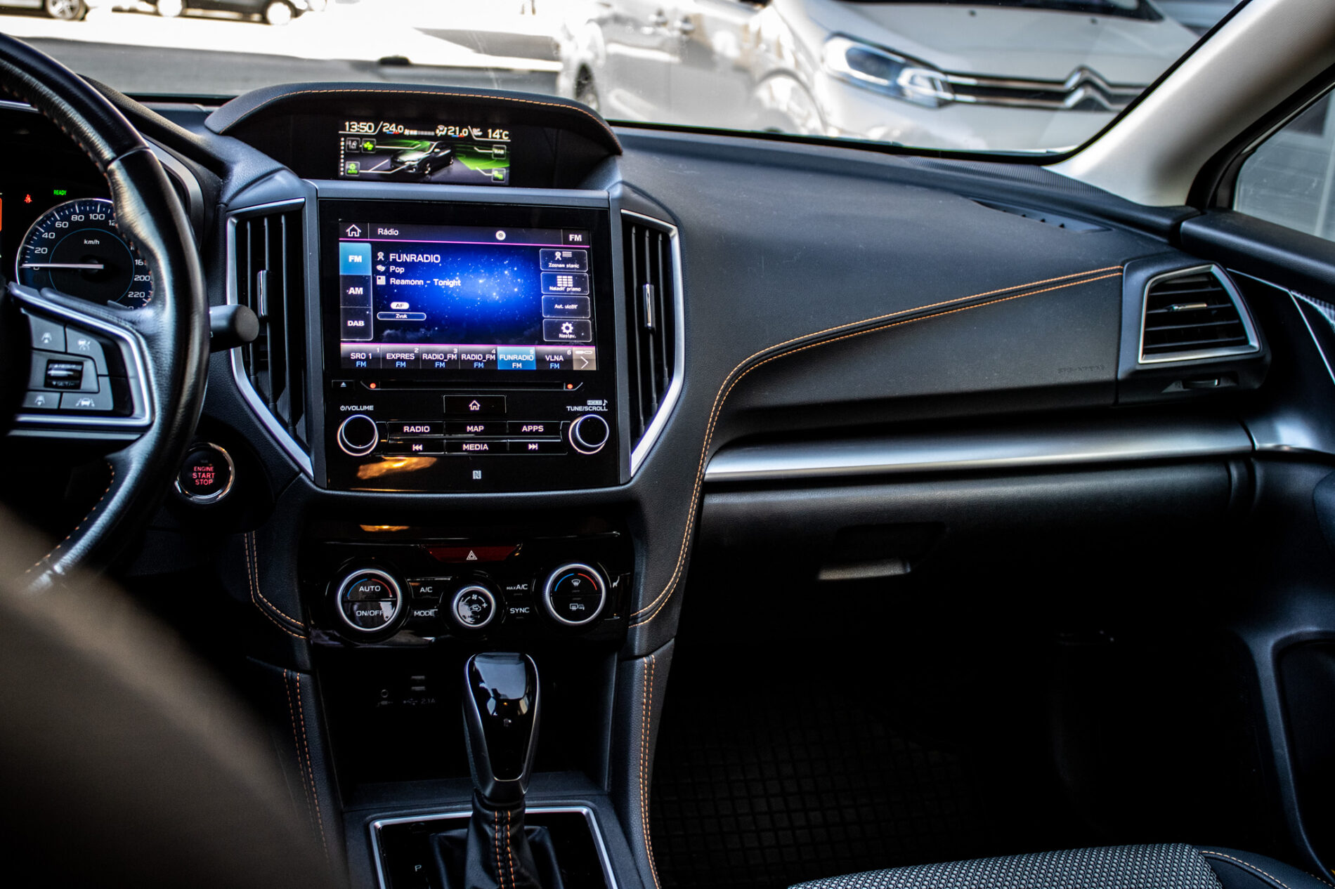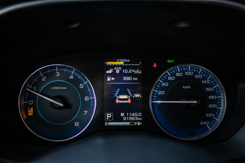 Asistent riadenia jazdy z kopca, Asistenčný systém pre vodiča EyeSight, Automatické stierače čelného skla s dažďovým senzorom, Držiaky nápojov v stredovej konzole, Držiaky nápojov vo všetkých dverách kabíny, Full-Kožený volant a hlavica radiacej páky s kontrastným oranžovým prešívaním, Ovládanie audiosystému na volante, Sklopné operadlá zadných sedadiel delené v pomere 60 : 40, Ukotvenie detských sedačiek ISOFIX (s upevňovacími popruhmi), Vonkajšie spätné zrkadlá elektricky sklápateľné, Vyhrievanie zadného skla s časovým spínačom, Výškovo aj pozdĺžne nastaviteľný stĺpik volantu