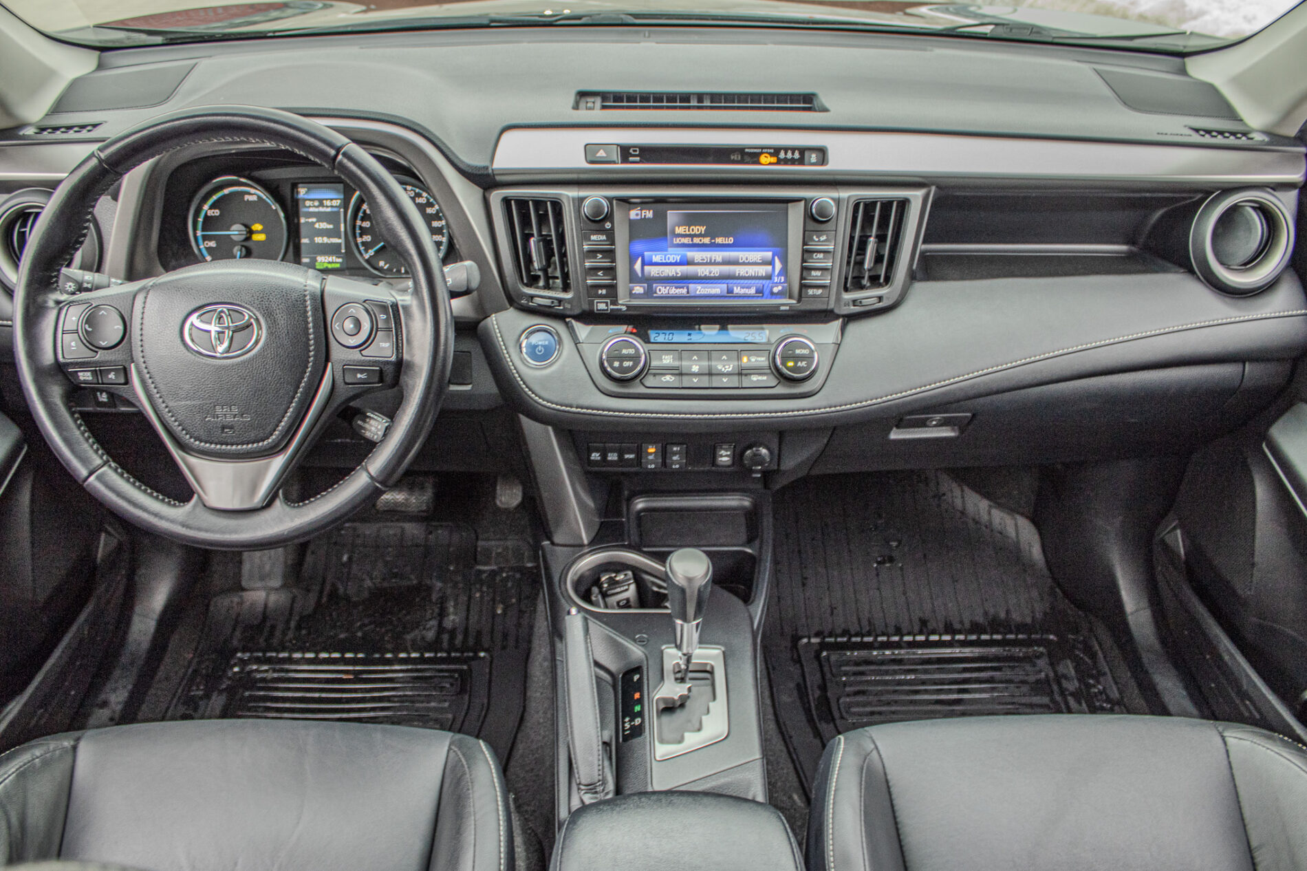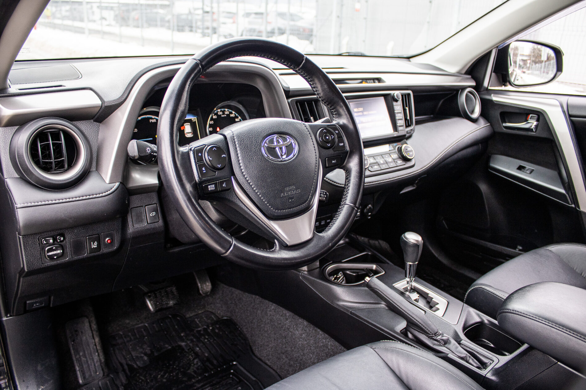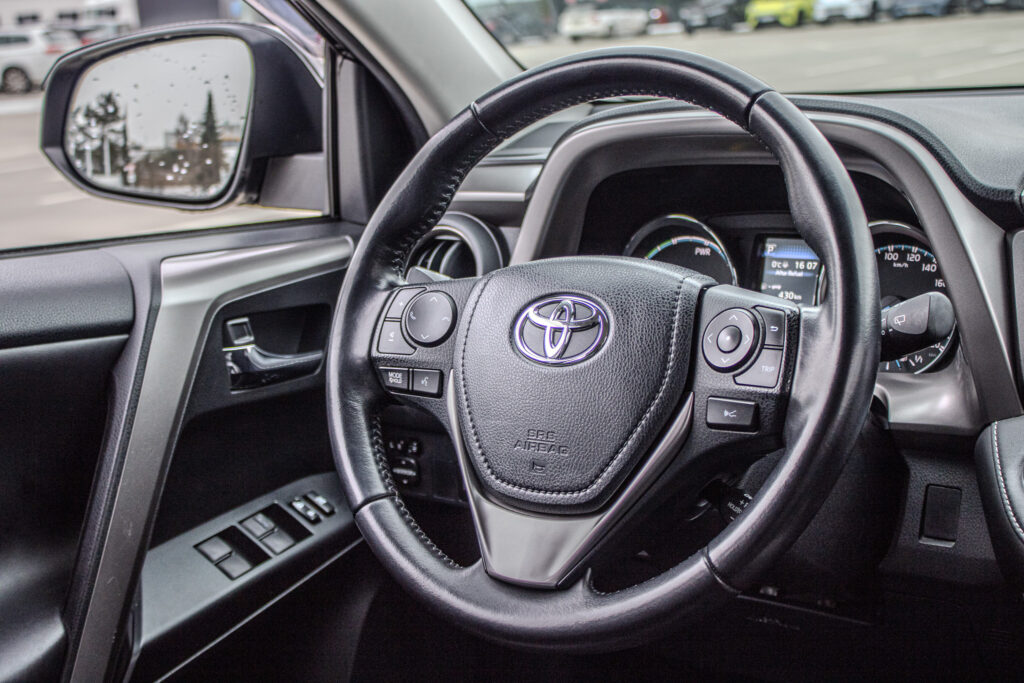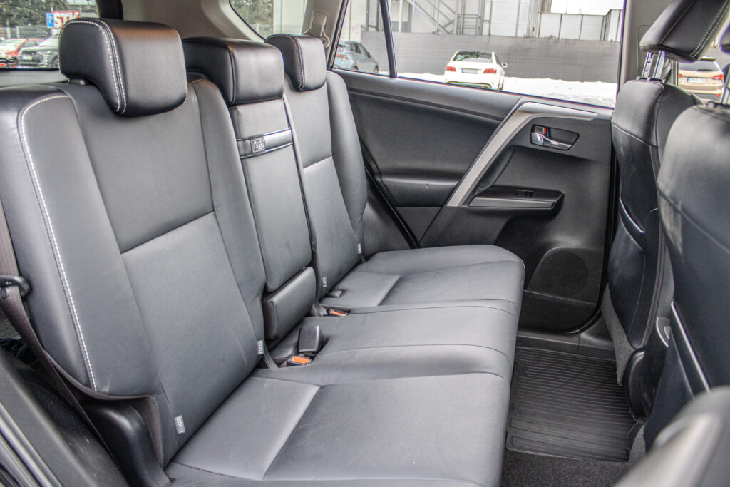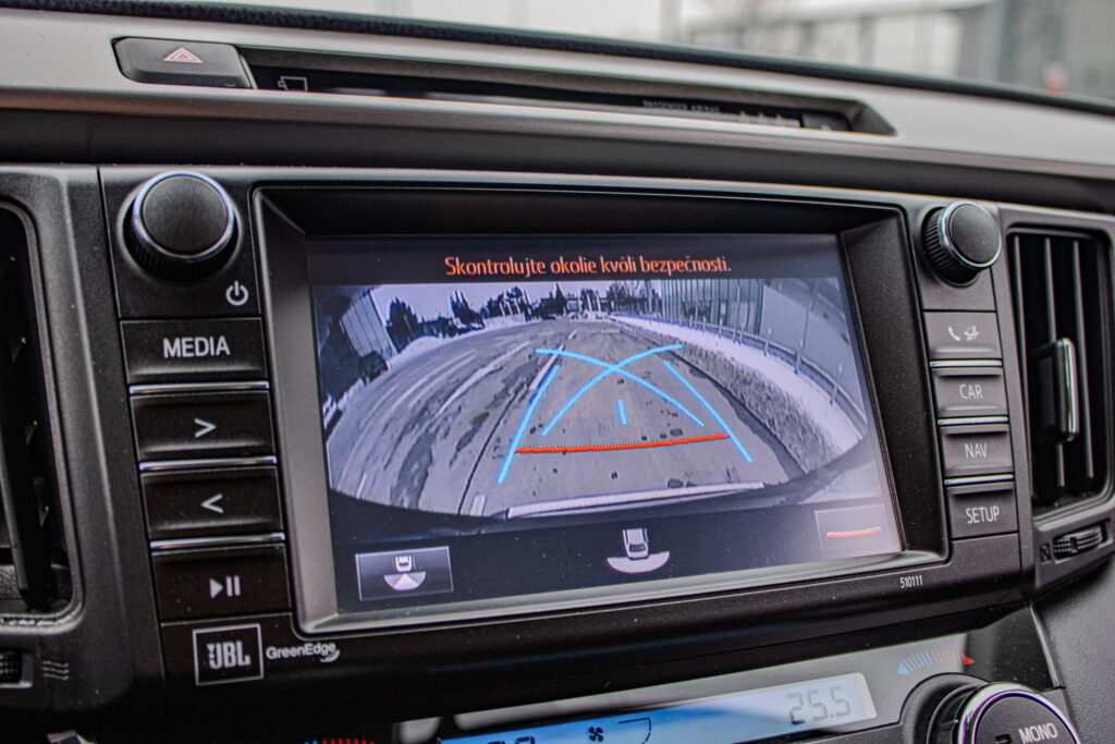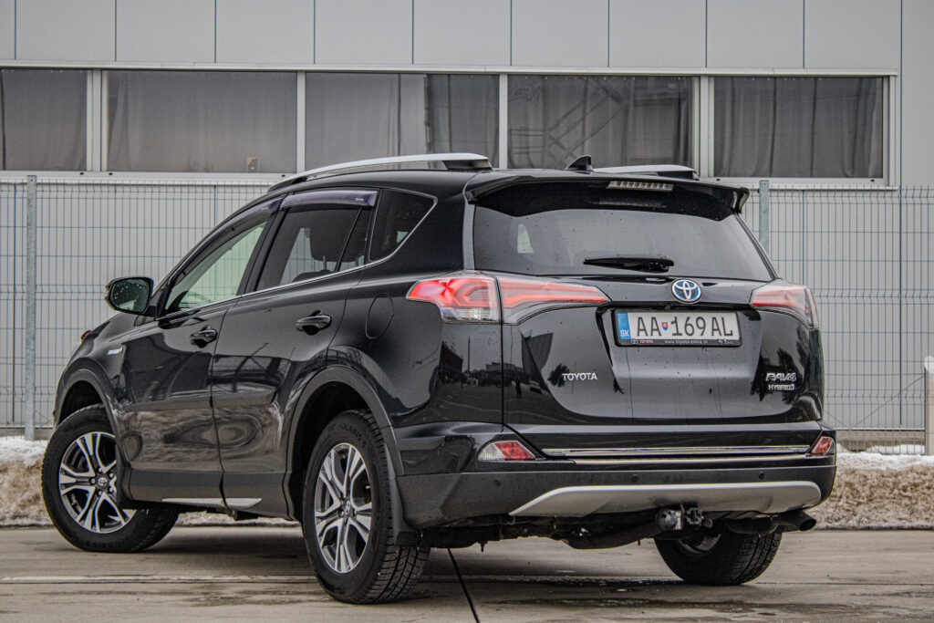 Anténa v tvare žraločej plutvy, Automatické sťahovanie okna vodiča jedným dotykom, Displej zadnej parkovacej kamery s dynamickými vodiacimi čiarami, Držiak nápojov (2 vpredu + 2 vzadu), Elektricky nastaviteľné bedrová opierka vodiča, Elektricky nastaviteľné sedadlo vodiča, Elektricky nastaviteľné sedadlo vodiča s pamäťovou funkciou, Elektricky ovládaná bedrová opierka vodiča, Elektricky ovládané otváranie dverí batožinového priestoru s pamäťovou funkciou, Elektrický posilňovač riadenia (EPS), Externý vstup AUX-IN/USB, Horizontálna sieť v batožinovom priestore, Indikácia zapnutia bezpečnostných pásov (predné + zadné), Kožená hlavica radiacej páky s kovovým dekorom, Kryt batožinového priestoru, Lampy na čítanie vpredu, Osvetlenie batožinového priestoru, Ovládanie hlasových povelov a ASL na volante, Označenie modelu na dverách batožinového priestoru (Toyota RAV4), Panoramatický monitor obraz zo 4 kamier (sledovanie okolia vozidla + pohľad z vtáčej perspektívy), Parkovacie senzory vpredu a vzadu, Peľový filter, Predná lakťová opierka, Predný a zadný nárazník s čiernym lemom a integrovanou spodnou ochranou (strieborná), Smerové svetlá integrované v spätných zrkadlách, Spätné zrkadlá elektricky ovládané a vyhrievané vo farbe vozidla so smerovými svetlami, Spätné zrkadlá elektricky sklopné, Stierač zadného okna s cyklovačom, Stierače predného okna so senzorom dažďa, Stropná konzola s držiakom na okuliare, Svetlá denného svietenia LED, TRC/VSC (HAC + DAC + TSC), Tretie brzdové svetlo LED, Trojbodové bezpečnostné pásy vpredu (2) s nastavením výšky, Trojbodové bezpečnostné pásy vzadu (3), Trojramenný volant obšitý kožou, VSC (HAC + TSC) riadenie stability vozidla, Vnútorné spätné zrkadlo s automatickou clonou, Vrecko na zadnej strane sedadla vodiča a spolujazdca, Vyhrievaný volant, Výstražný systém tlaku pneumatík (TPWS), Výškovo a pozdĺžne nastav. volant, Výškovo nastaviteľné sedadlo spolujazdca, Zadné kombinované svetlá LED + žiarovky, Zadný spojler, Zadný strešný spojler