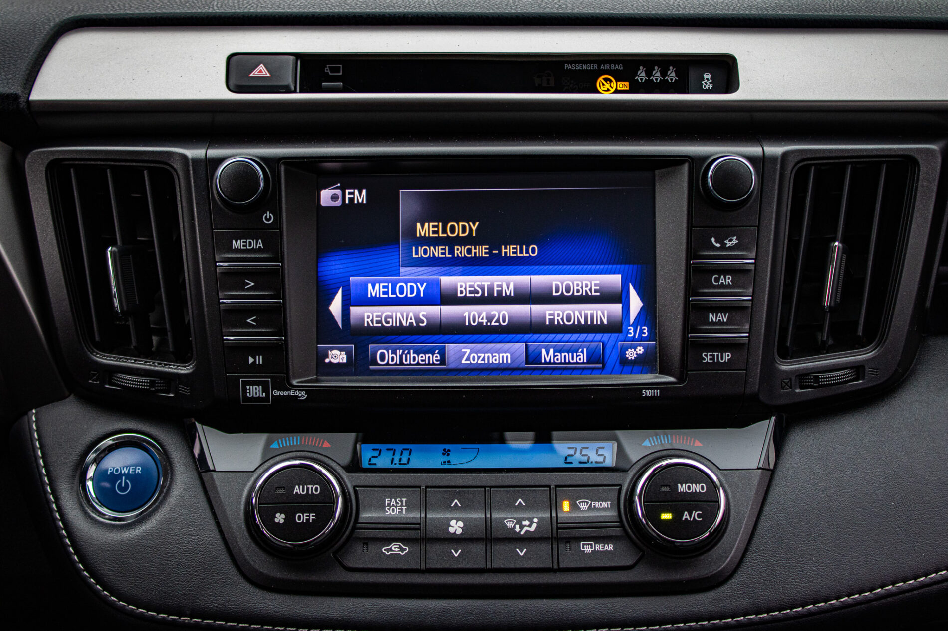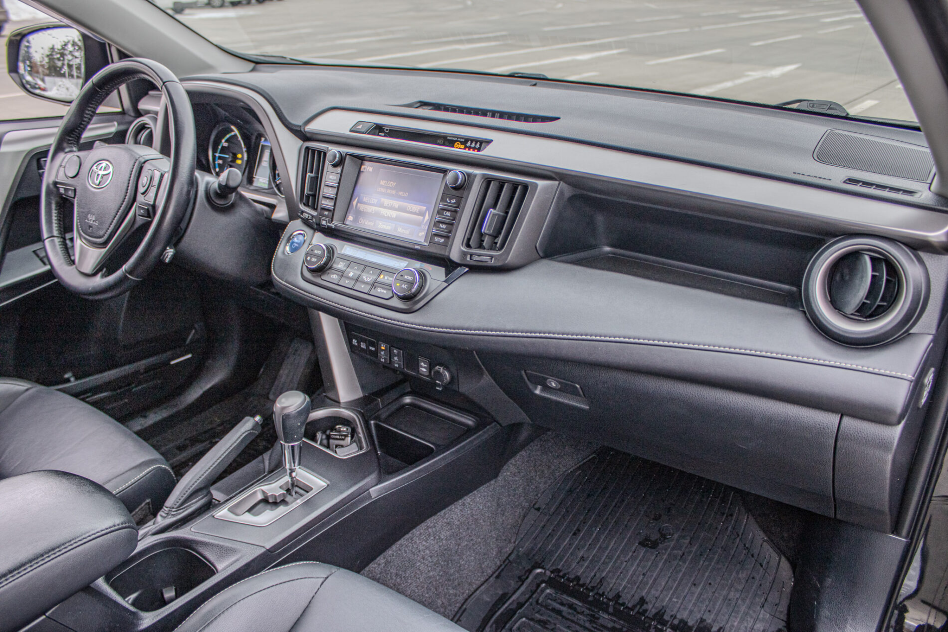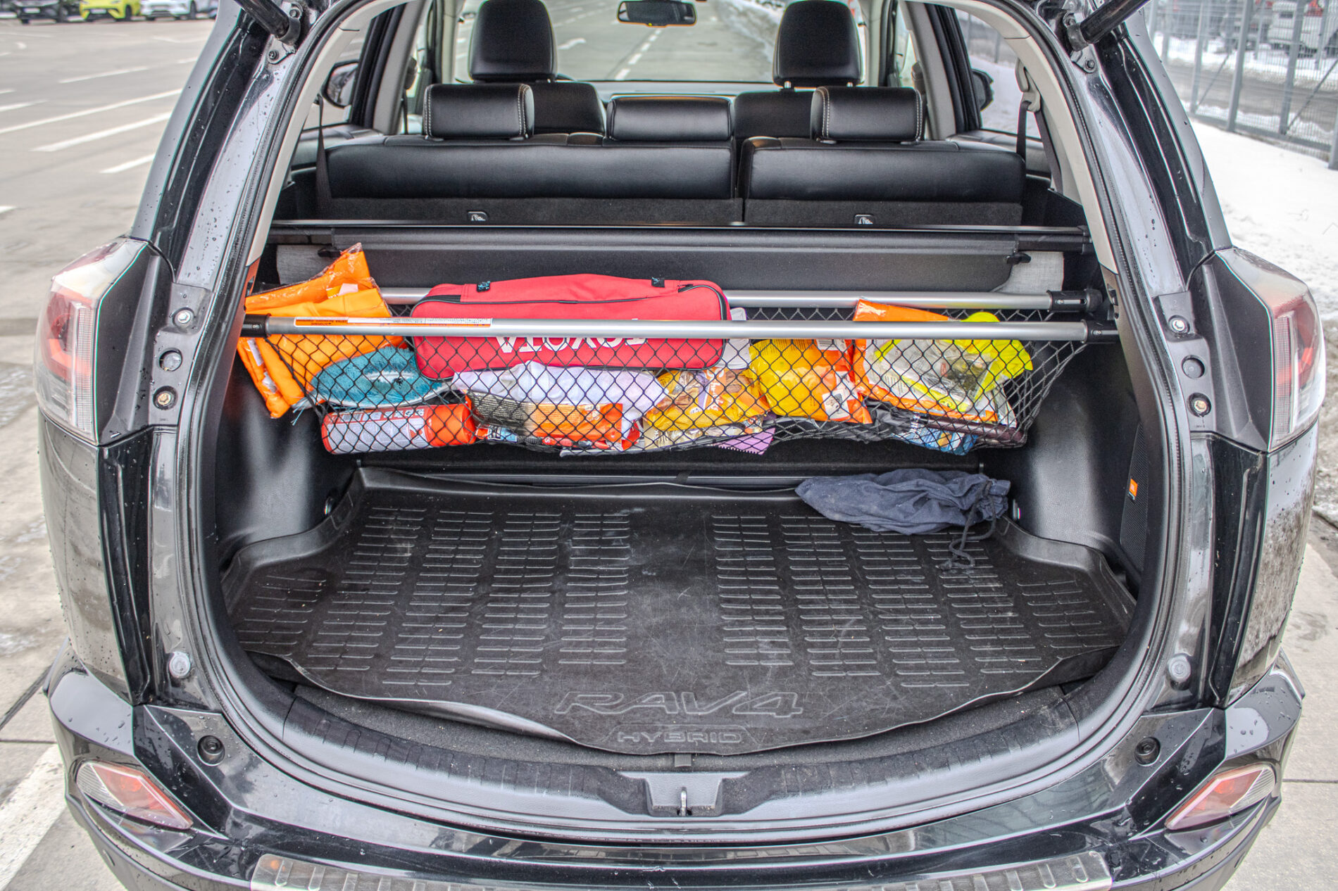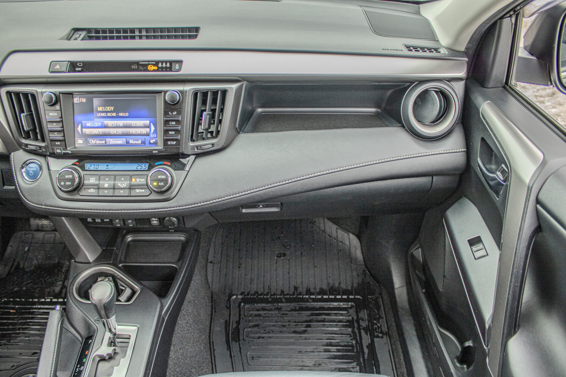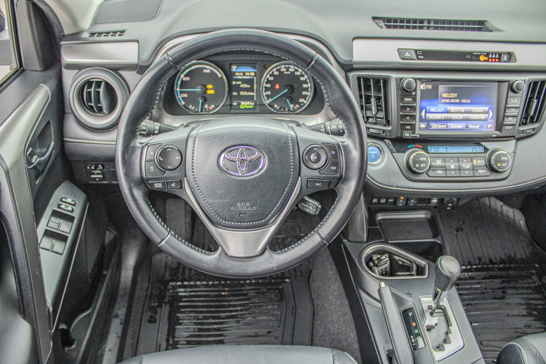Anténa v tvare žraločej plutvy, Automatické sťahovanie okna vodiča jedným dotykom, Displej zadnej parkovacej kamery s dynamickými vodiacimi čiarami, Držiak nápojov (2 vpredu + 2 vzadu), Elektricky nastaviteľné bedrová opierka vodiča, Elektricky nastaviteľné sedadlo vodiča, Elektricky nastaviteľné sedadlo vodiča s pamäťovou funkciou, Elektricky ovládaná bedrová opierka vodiča, Elektricky ovládané otváranie dverí batožinového priestoru s pamäťovou funkciou, Elektrický posilňovač riadenia (EPS), Externý vstup AUX-IN/USB, Horizontálna sieť v batožinovom priestore, Indikácia zapnutia bezpečnostných pásov (predné + zadné), Kožená hlavica radiacej páky s kovovým dekorom, Kryt batožinového priestoru, Lampy na čítanie vpredu, Osvetlenie batožinového priestoru, Ovládanie hlasových povelov a ASL na volante, Označenie modelu na dverách batožinového priestoru (Toyota RAV4), Panoramatický monitor obraz zo 4 kamier (sledovanie okolia vozidla + pohľad z vtáčej perspektívy), Parkovacie senzory vpredu a vzadu, Peľový filter, Predná lakťová opierka, Predný a zadný nárazník s čiernym lemom a integrovanou spodnou ochranou (strieborná), Smerové svetlá integrované v spätných zrkadlách, Spätné zrkadlá elektricky ovládané a vyhrievané vo farbe vozidla so smerovými svetlami, Spätné zrkadlá elektricky sklopné, Stierač zadného okna s cyklovačom, Stierače predného okna so senzorom dažďa, Stropná konzola s držiakom na okuliare, Svetlá denného svietenia LED, TRC/VSC (HAC + DAC + TSC), Tretie brzdové svetlo LED, Trojbodové bezpečnostné pásy vpredu (2) s nastavením výšky, Trojbodové bezpečnostné pásy vzadu (3), Trojramenný volant obšitý kožou, VSC (HAC + TSC) riadenie stability vozidla, Vnútorné spätné zrkadlo s automatickou clonou, Vrecko na zadnej strane sedadla vodiča a spolujazdca, Vyhrievaný volant, Výstražný systém tlaku pneumatík (TPWS), Výškovo a pozdĺžne nastav. volant, Výškovo nastaviteľné sedadlo spolujazdca, Zadné kombinované svetlá LED + žiarovky, Zadný spojler, Zadný strešný spojler