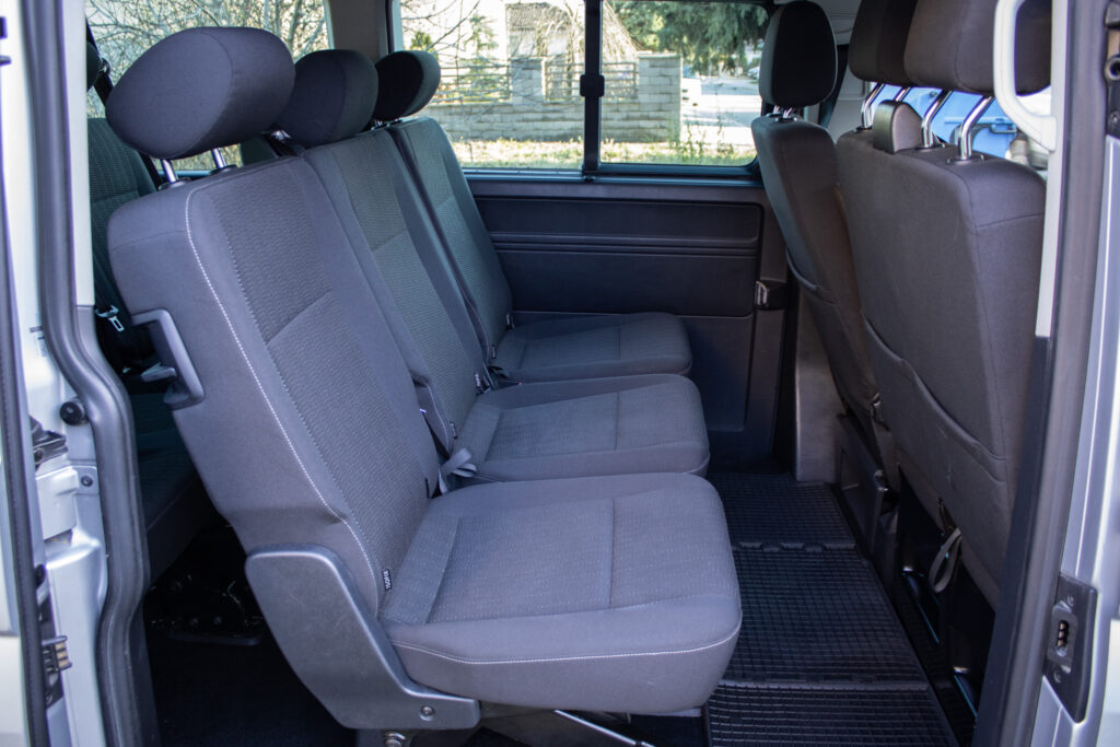 Posuvné bočné dvere na oboch stranách, Lakované nárazníky, kľučky a kryty zrkadiel v farbe karosérie, tmavo sivé poťahy so samostatnými sedadlami vpredu a lavicami vzadu – plnohodnotná 9miestna konfigurácia, možnosť sklápania a vyberania zadných lavíc pre prispôsobenie batožinového priestoru, Veľké originálne infotainment rádio s navigáciou a parkovacím senzorom v displeji, systém kontroly trakcie, elektronická uzávierka diferenciálu a viacnásobný brzdový asistent (multicollision brake),