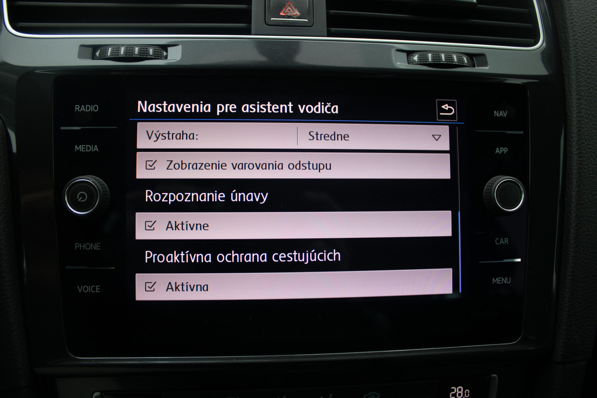 Airbag 6X, EBD/EBV, ABS, ESP(VDC), ASR(TC,EDS), DSC(DTC), Brzdový asistent(BAS), Isofix, Deaktivácia airbagov, Systém kontroly tlaku v pneumatikách (TPMS), Varovanie o vzdialenosti (BAS Plus), Systém rozpoznania únavy vodiča (DAW)