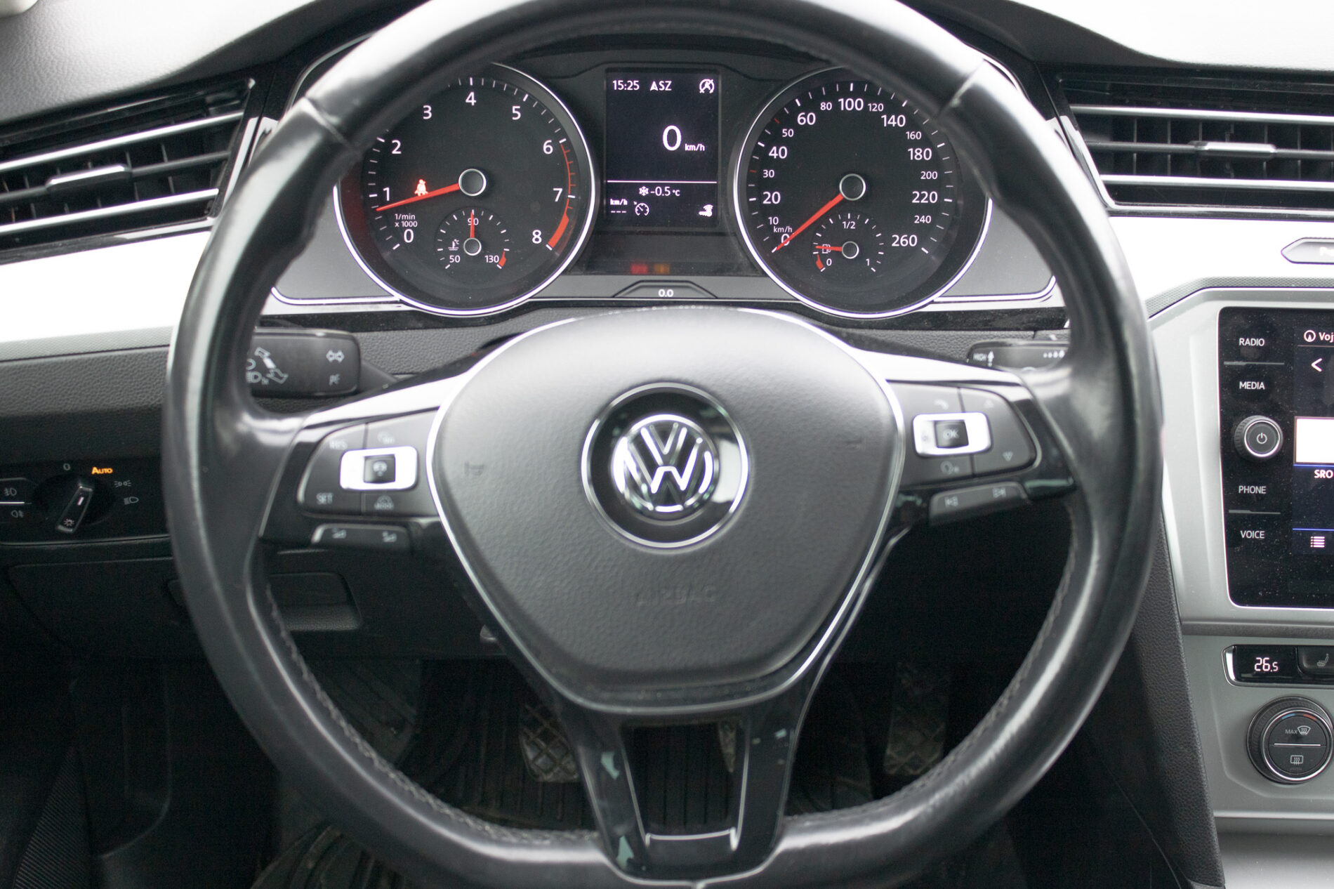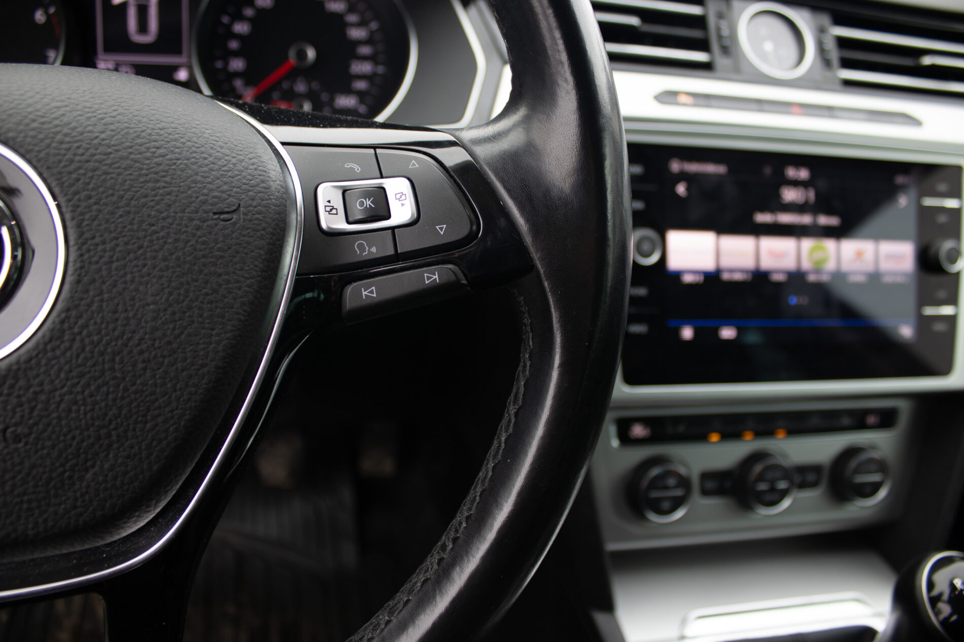 2 držiaky na poháre vpredu, Bedrové opierky - vpredu, Denné svietenie, Front Assist a 'City Brake' - systém na sledovanie diania pred vozidlom a systém núdzového brzdenia vozidla pri hroziacom čelnom náraze, Make-up zrkadielka v slnečných clonách LED osvetlenie, Multifunkčný 3-ramenný kožený volant a riadiaca páka v koži, Multikolízna brzda, Oká na uchyt. predmetov v bat. priestore, Vnútorné spätné zrkadlo s automatickým zacláňaním, Výškovo nastaviteľné sedadlo vodiča a spolujazdca
